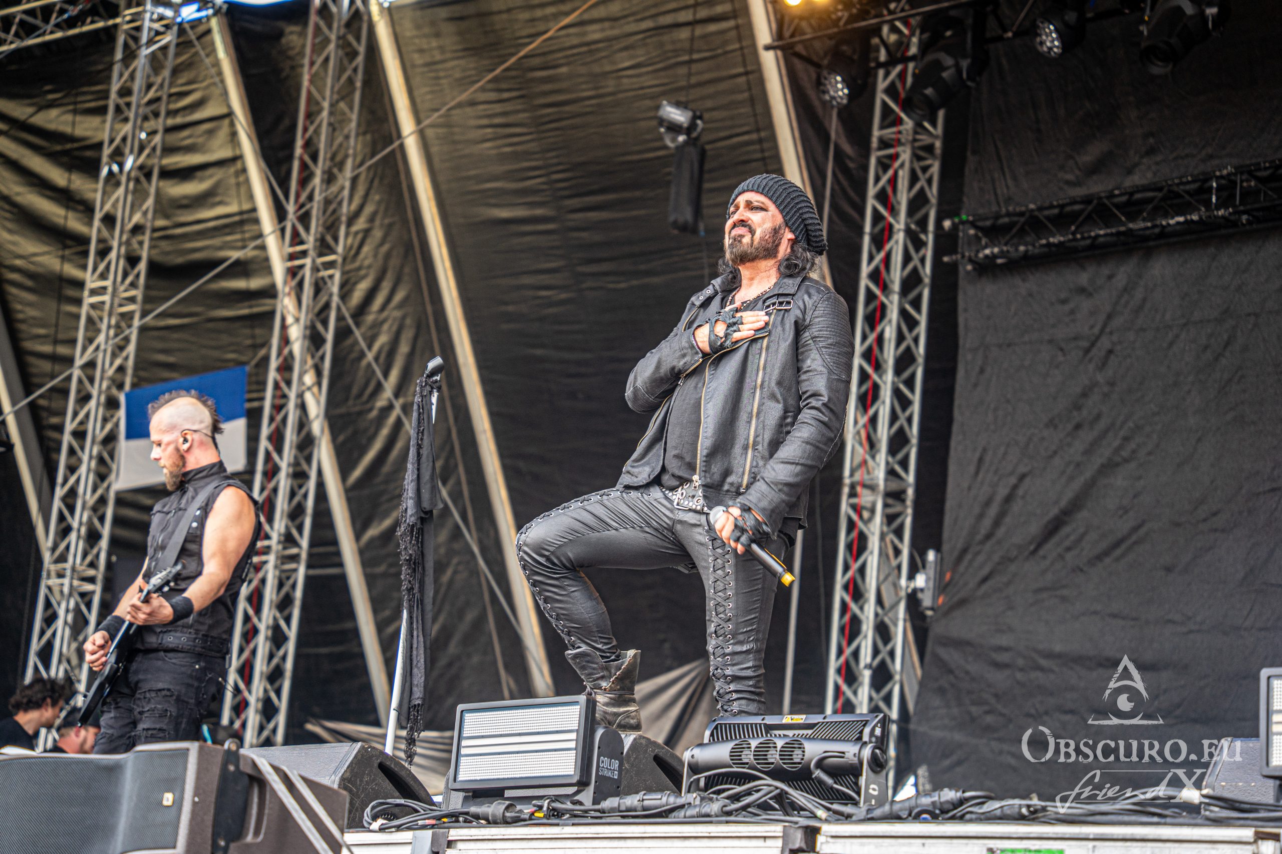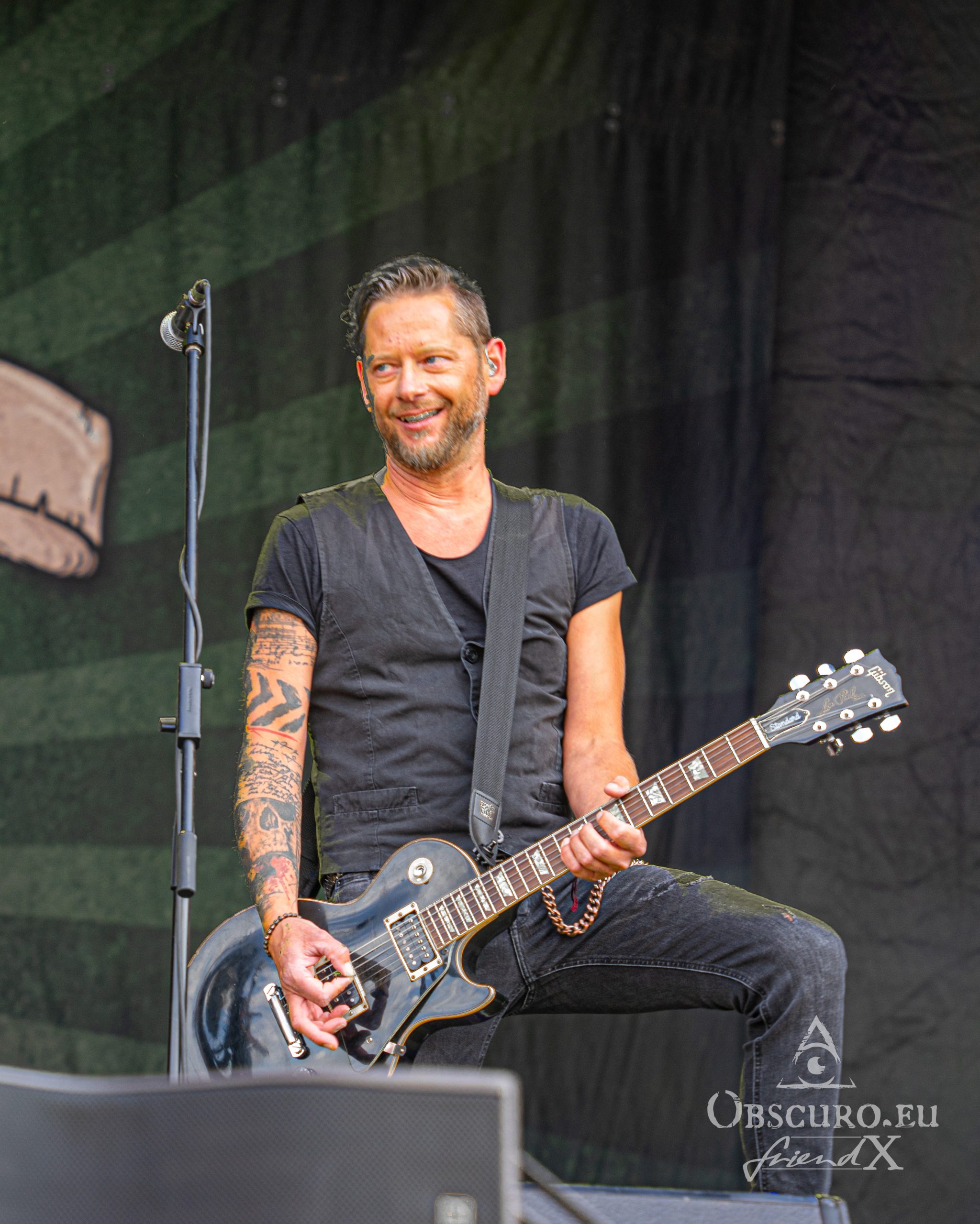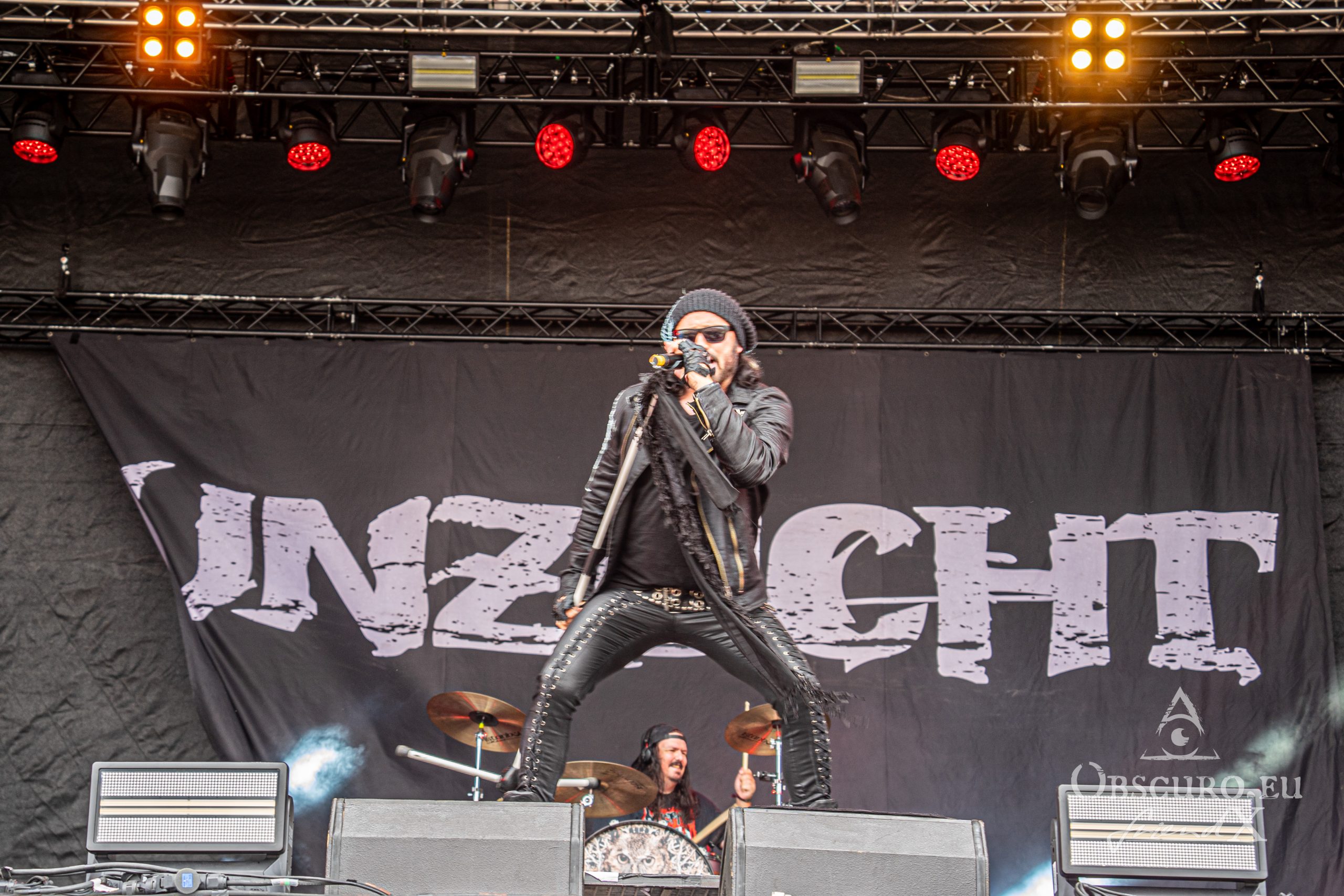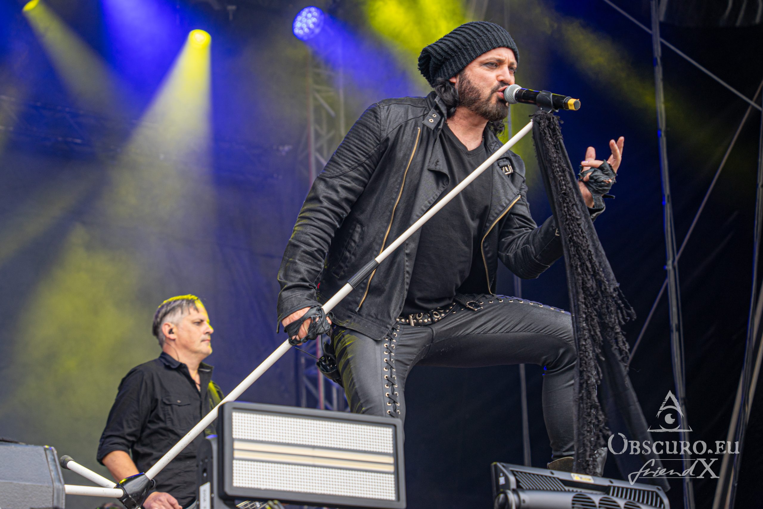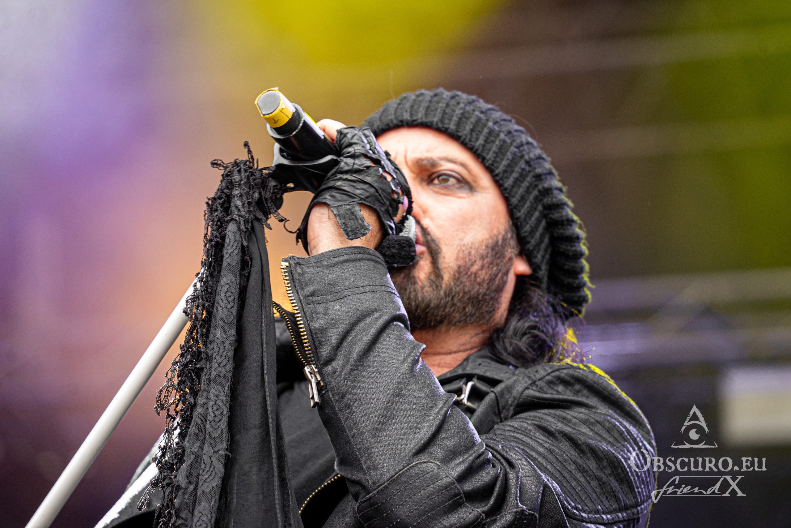 Then it was time for Unzucht, finally. Unzucht had been on the bill for 2022 but due to circumstances and a well-known virus, they had been reduced to an acoustic set of The Schulz And Friends. This time and with the complete band he performed a lovely set of their well-known songs with all the stuff it was supposed to have: drums, electric guitars and flames. We will see him again next year as the new vocalist of NDH-veterans Oomph! as his other project for the future.