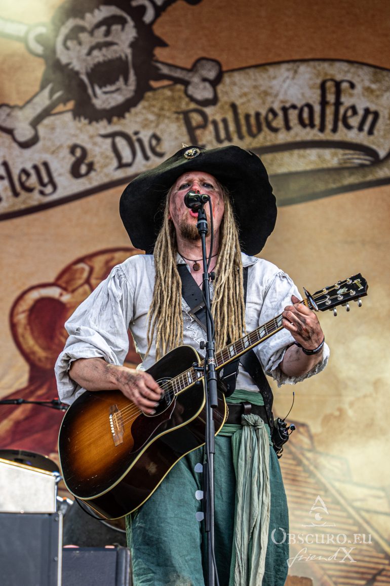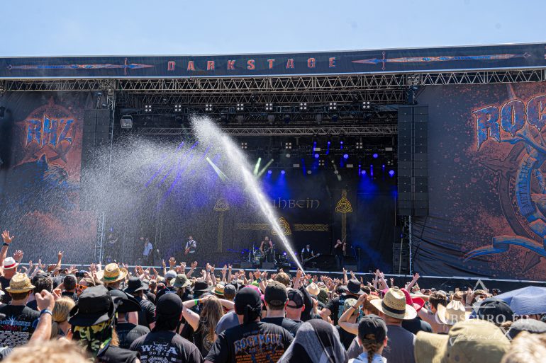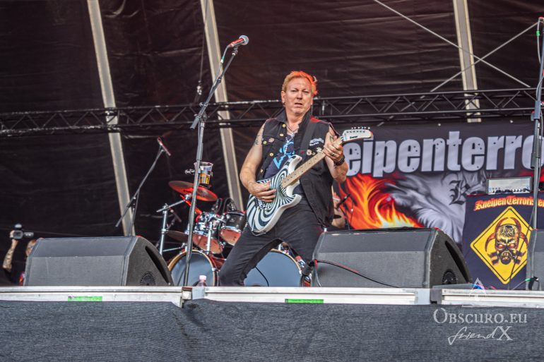 On the other hand, going to bed a bit earlier than expected allowed me to be right in time for Friday’s opener at 11:20, none less than Children Of Grotesque, even without proper breakfast. They are the band of Tim Tom, son of Knorkator’s keyboardist Alf Ator. Though their slot was just 30 minutes short, the four newcomers managed to somehow extend their play time because their sound check was a show of its own. I first thought I was late, I wasn’t and the show was great. We can certainly expect more of them in the future.