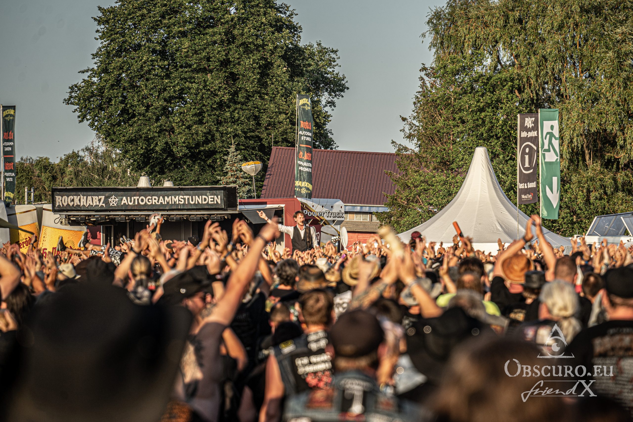 On the other hand, going to bed a bit earlier than expected allowed me to be right in time for Friday’s opener at 11:20, none less than Children Of Grotesque, even without proper breakfast. They are the band of Tim Tom, son of Knorkator’s keyboardist Alf Ator. Though their slot was just 30 minutes short, the four newcomers managed to somehow extend their play time because their sound check was a show of its own. I first thought I was late, I wasn’t and the show was great. We can certainly expect more of them in the future.