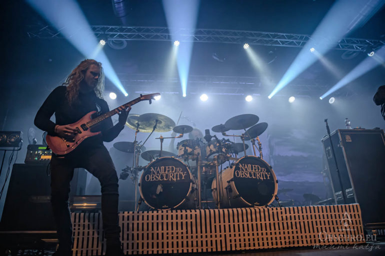 The show night began actually almost still in the late afternoon. Taking into account too, it is a Tuesday, the crowd welcoming Nailed To Obscurity on stage is quite impressive. At 18:00h sharp the guys from Ostfriesland (East Frisia) – – enter stage to present a quite doomy selection of their songs. Sound and light support the atmosphere of their gloomy soundscapes.