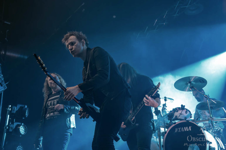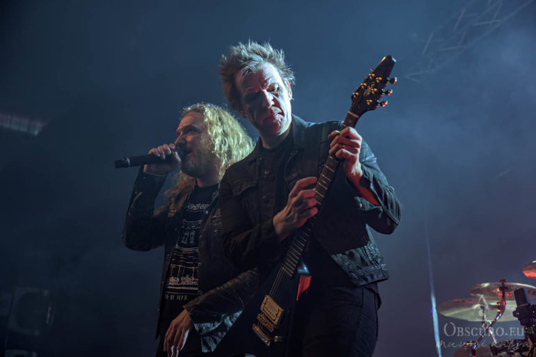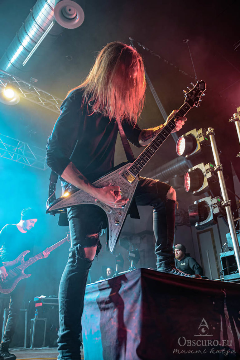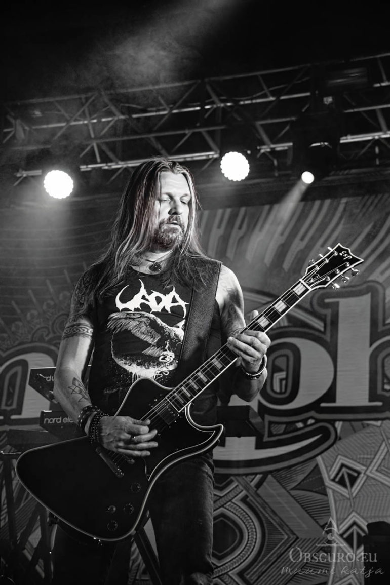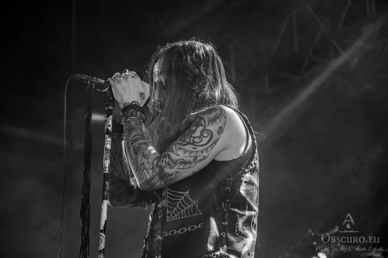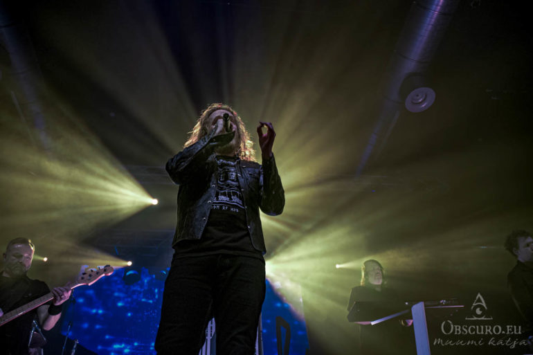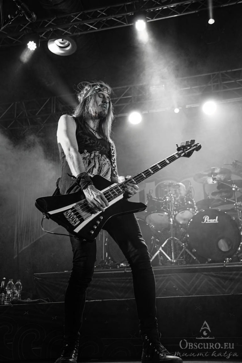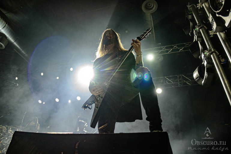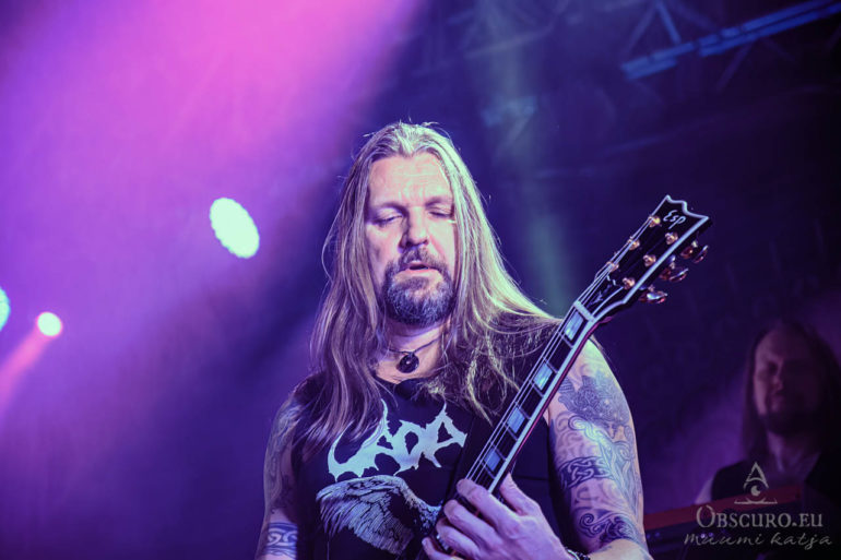 Rhythm guitarist Tomi Koivusaari chips in some of his infernal growls triggering more old-times memories. Further backing vocals are delivered by bass player Olli-Pekka Laine with whom I had the opportunity to take an interview before show (to be published soon), for example in “Silver Bride”.