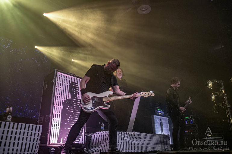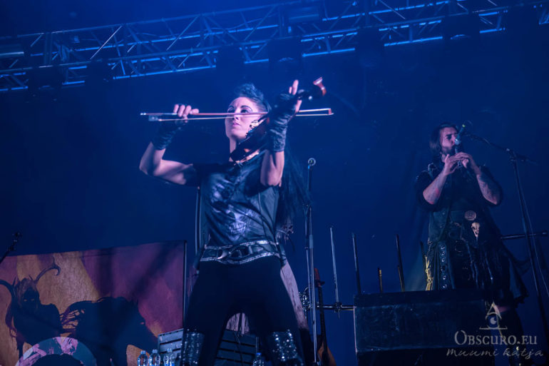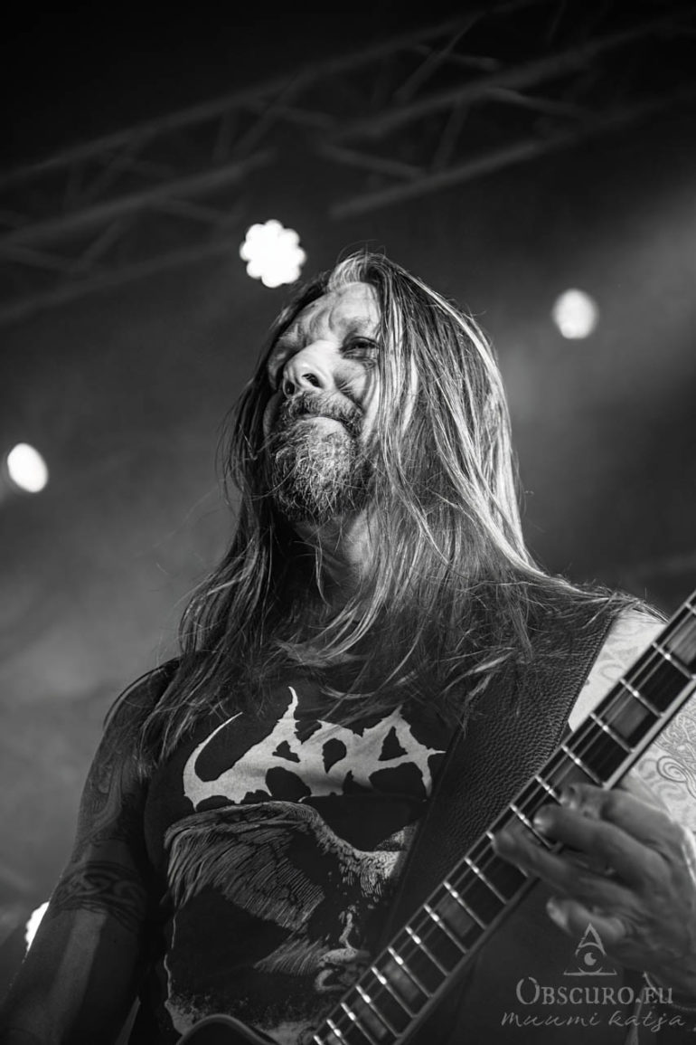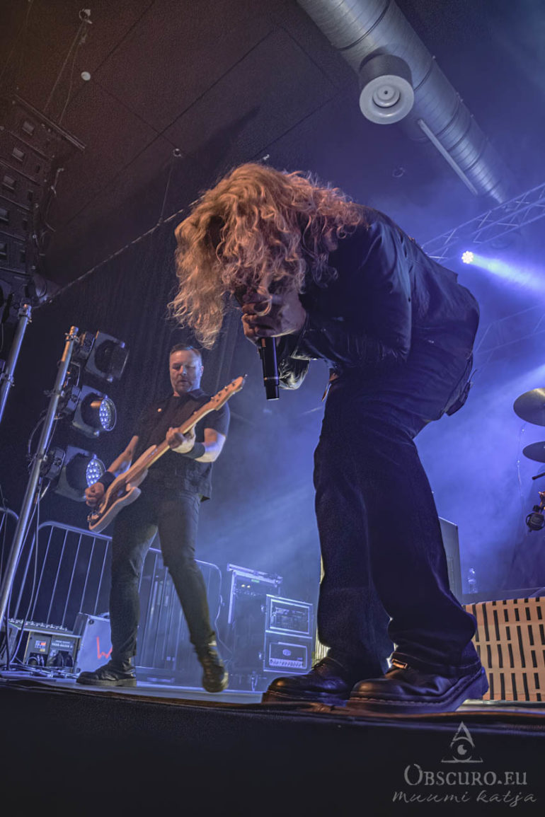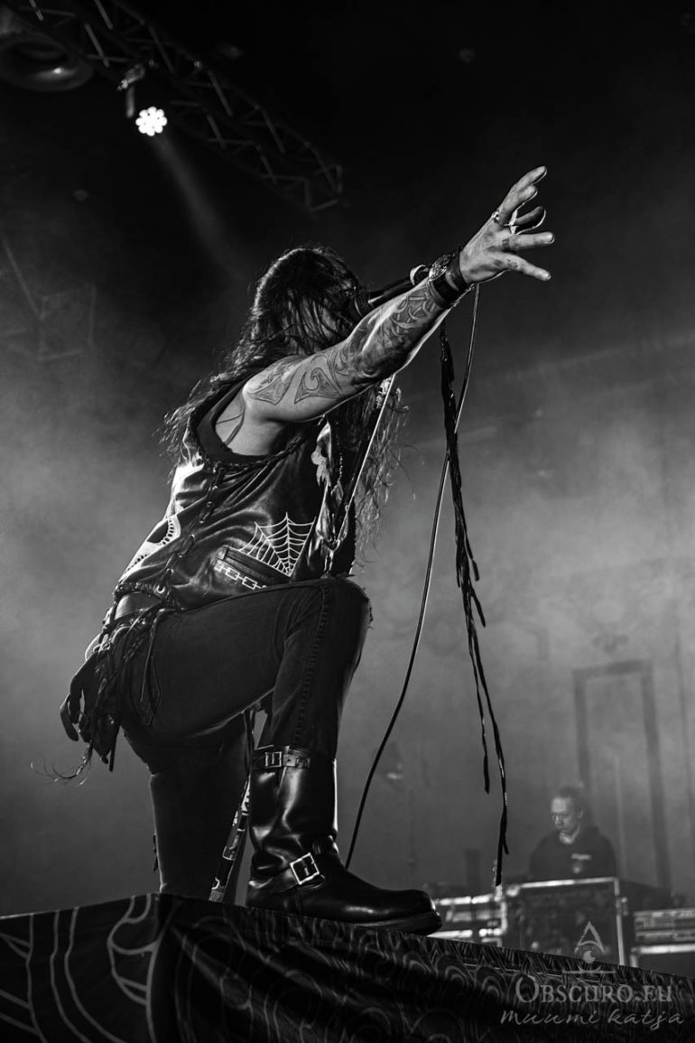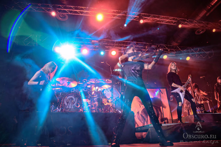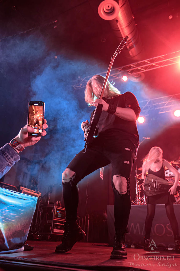 Rhythm guitarist Tomi Koivusaari chips in some of his infernal growls triggering more old-times memories. Further backing vocals are delivered by bass player Olli-Pekka Laine with whom I had the opportunity to take an interview before show (to be published soon), for example in “Silver Bride”.