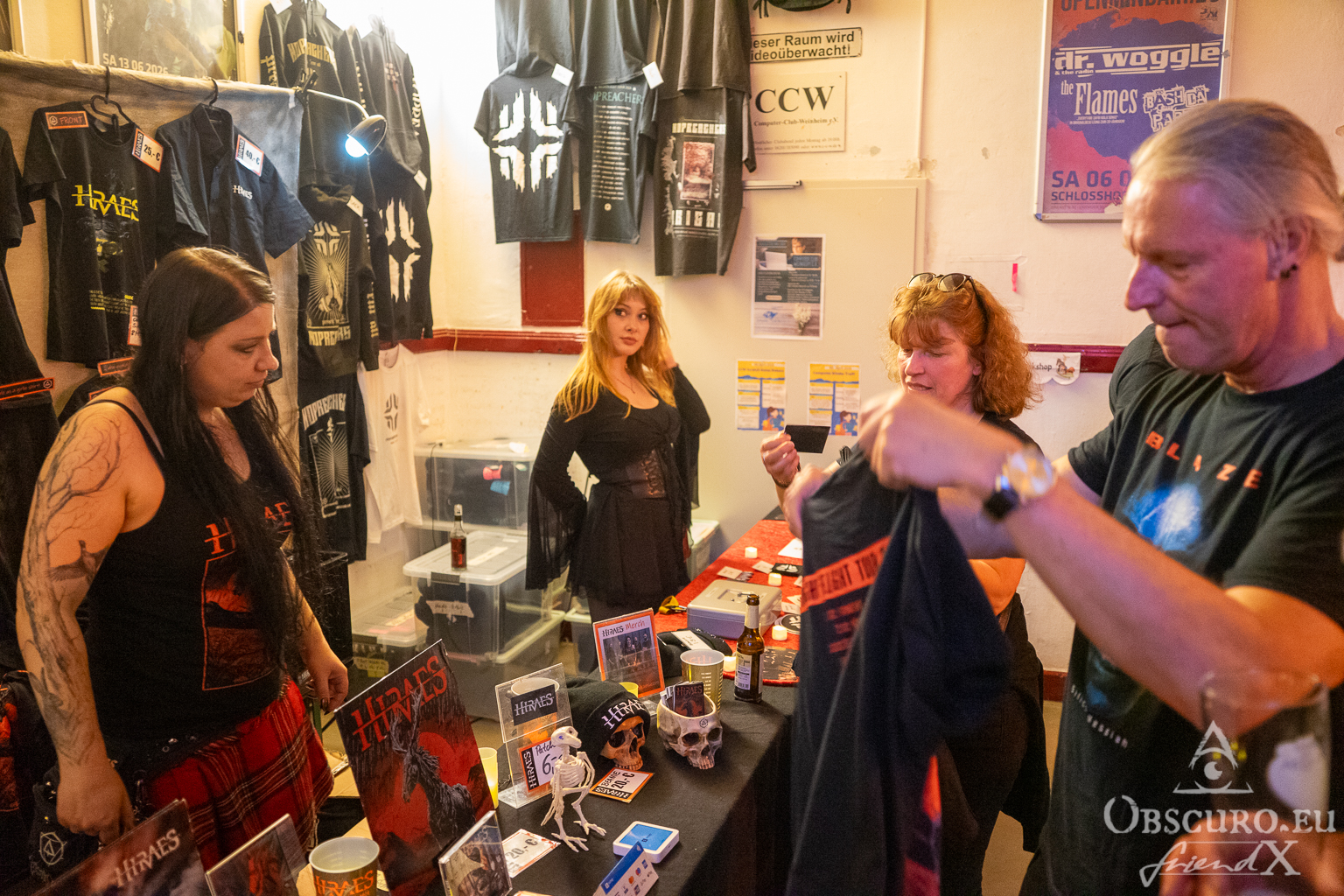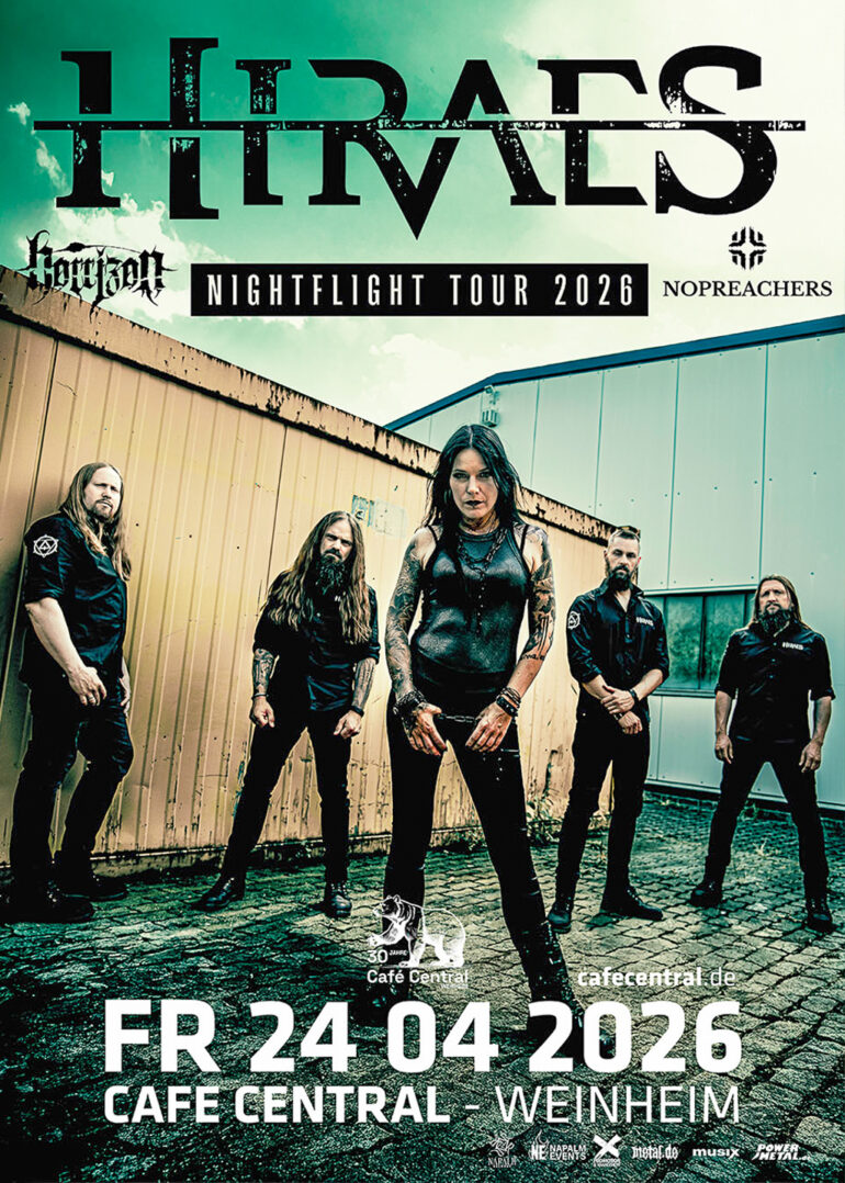 At 22:00, Lukas Kerk and Oliver Kirchner on guitars, Christian Wösten on bass, Mathias Blässe on drums and, of course, vocalist Britta Görtz will start Hiraes‘ melodic death metal Nightflight, from Osnabrück “Through the Storm”. Not everything is “About Lies”, even when you turn your “Eyes Over Black”.