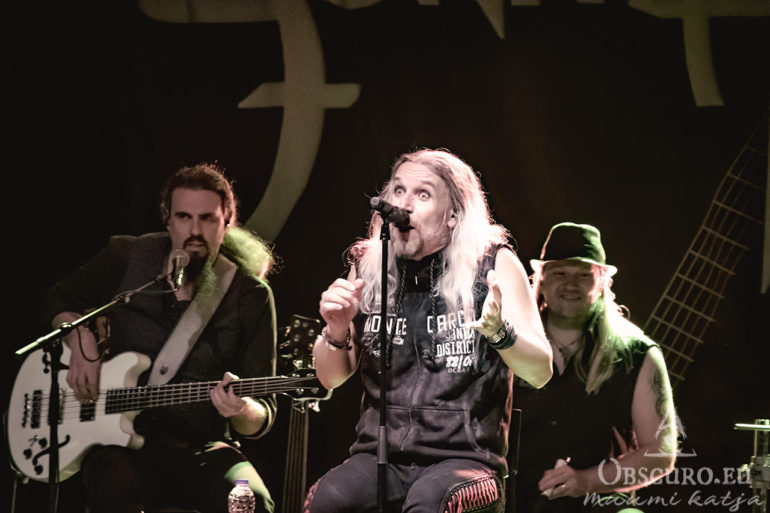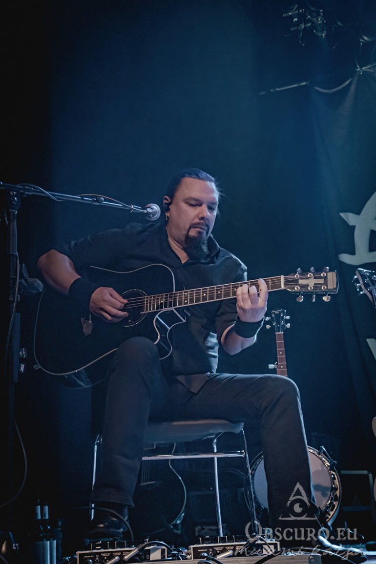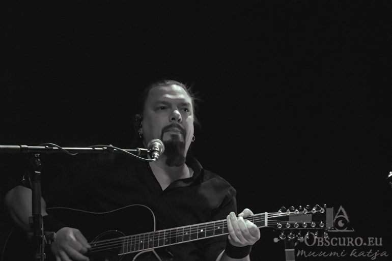 The stage setting reflects the focus the songs now have: Tony’s voice. His voice plays an even greater role in the acoustic versions of the songs. This shall not mislead. The sound tonight is well balanced, and the one whose instrument might benefit most, would be Pasi Kauppinen. His bass guitar is the relaxing hum tonight, the guiding light on this journey. Drummer Tommy Portimo changes from beat box to a basic drum set between the songs according to the needs, well mostly tempo of the songs.