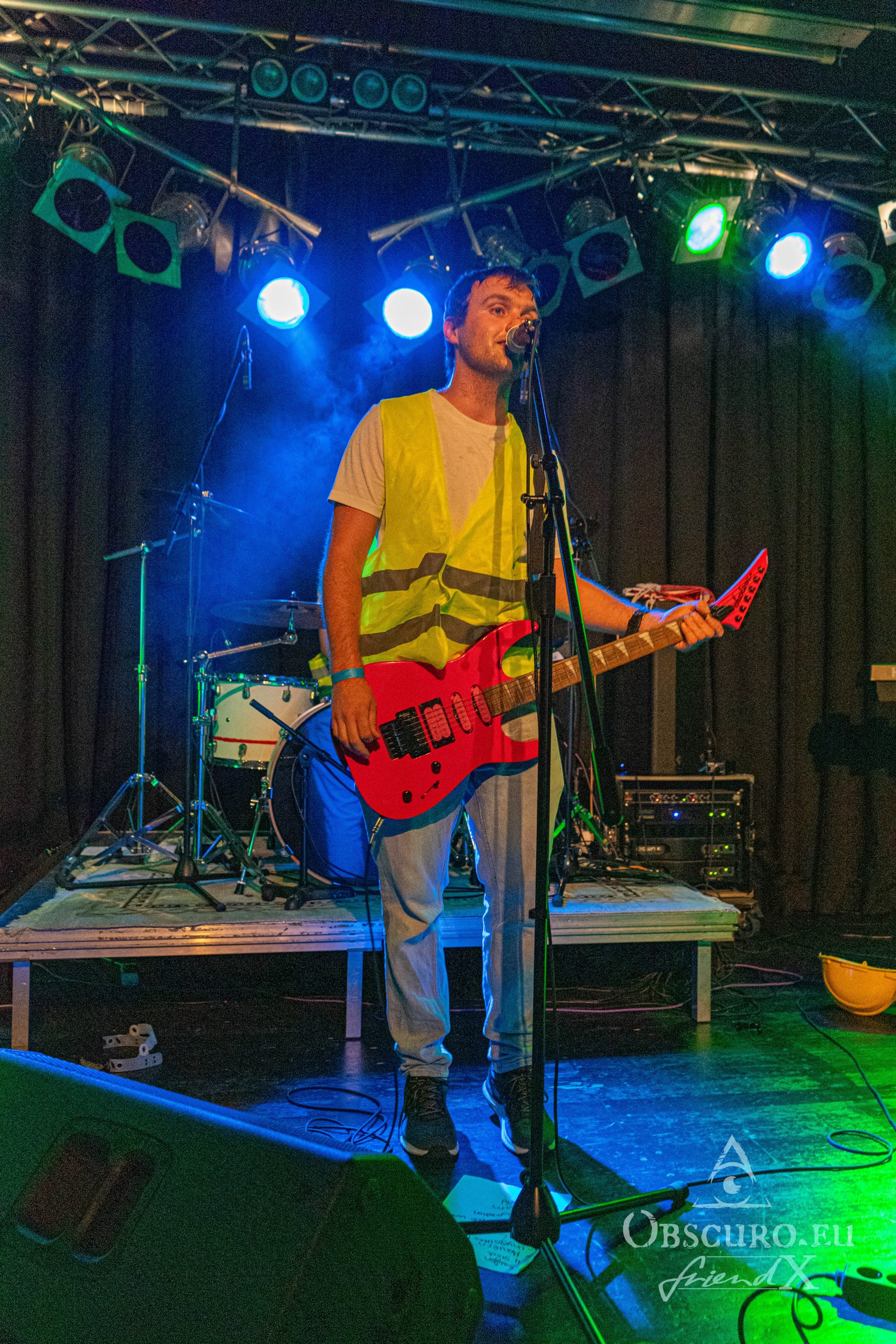 The second band of the evening needs only a few minutes to set up. Instead of Zelle 14 we welcome a Störung Im Betriebsablauf. Most customers of the Deutsche Bahn know a not so nice “Störung im Betriebsablauf”, which usually leads to long delays. Not this time. The band has a pretty punky attitude. And they wear safety helmets and vests so that they can get through their 40-minute set unharmed.