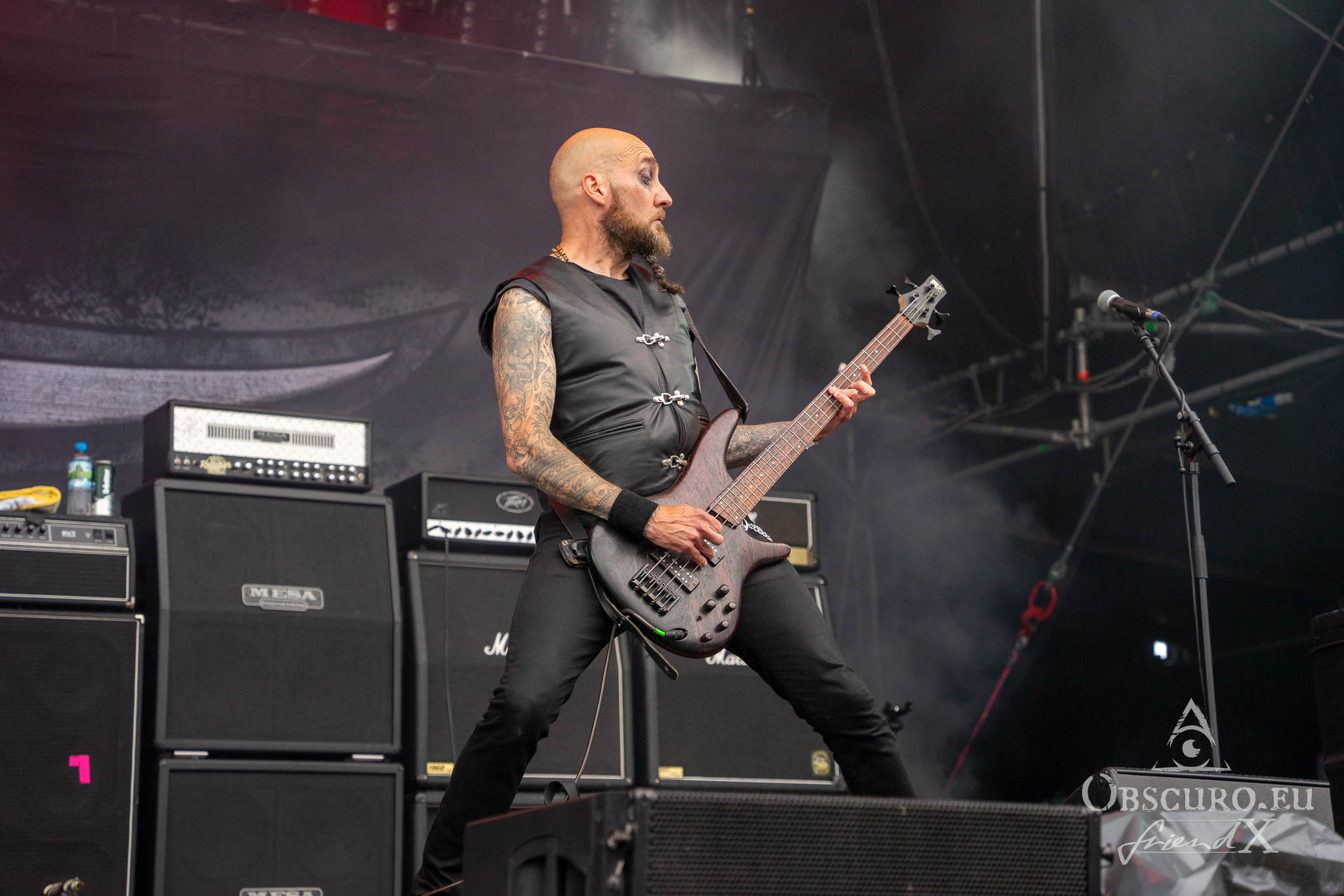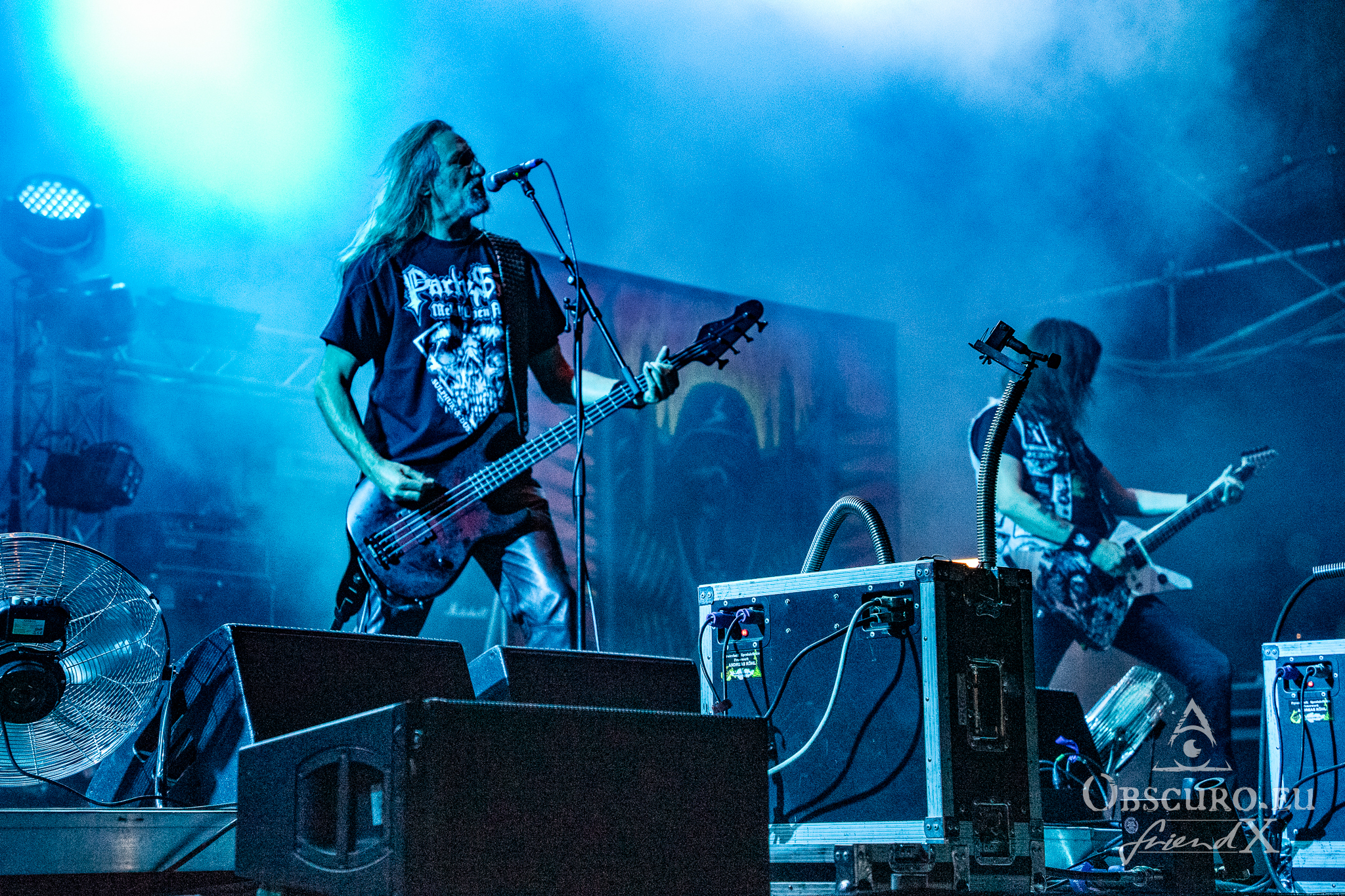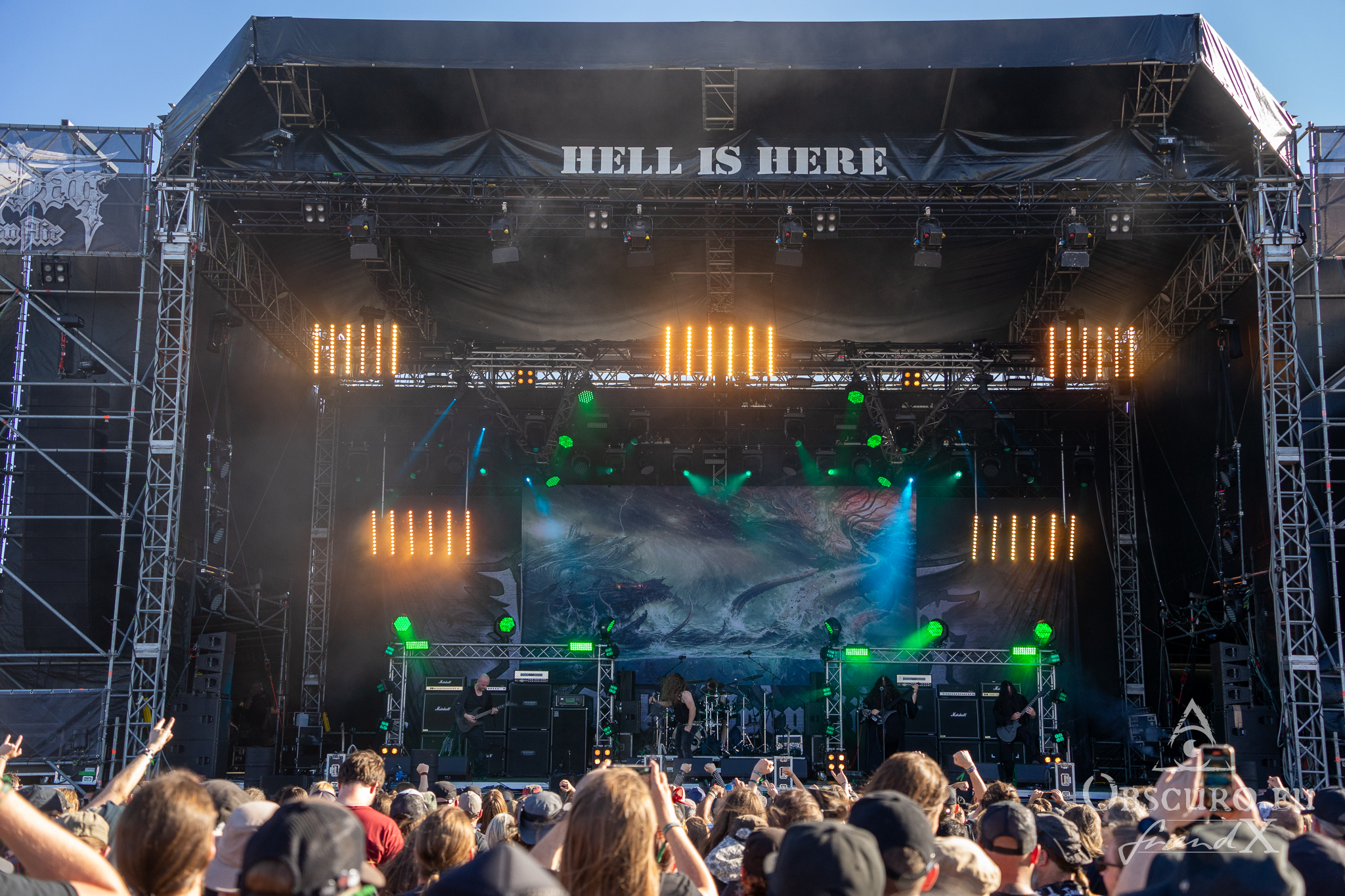 Each festival day at Party.San begins and ends with gun shots from the two guns flanking the main stage, one of them actually being called Esmiralda. The area is very spacious, surrounded by merch, drink, and food stalls. Behind the tower of the sound and light are tents where you could sit and have some shade, while being able to watch and listen to the bands on the main stage. Or you pay a visit to the smaller tent stage just round the corner of the entrance.