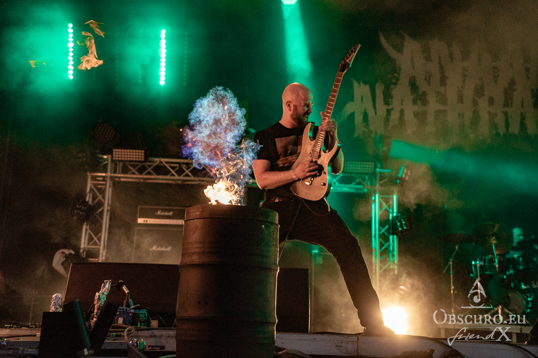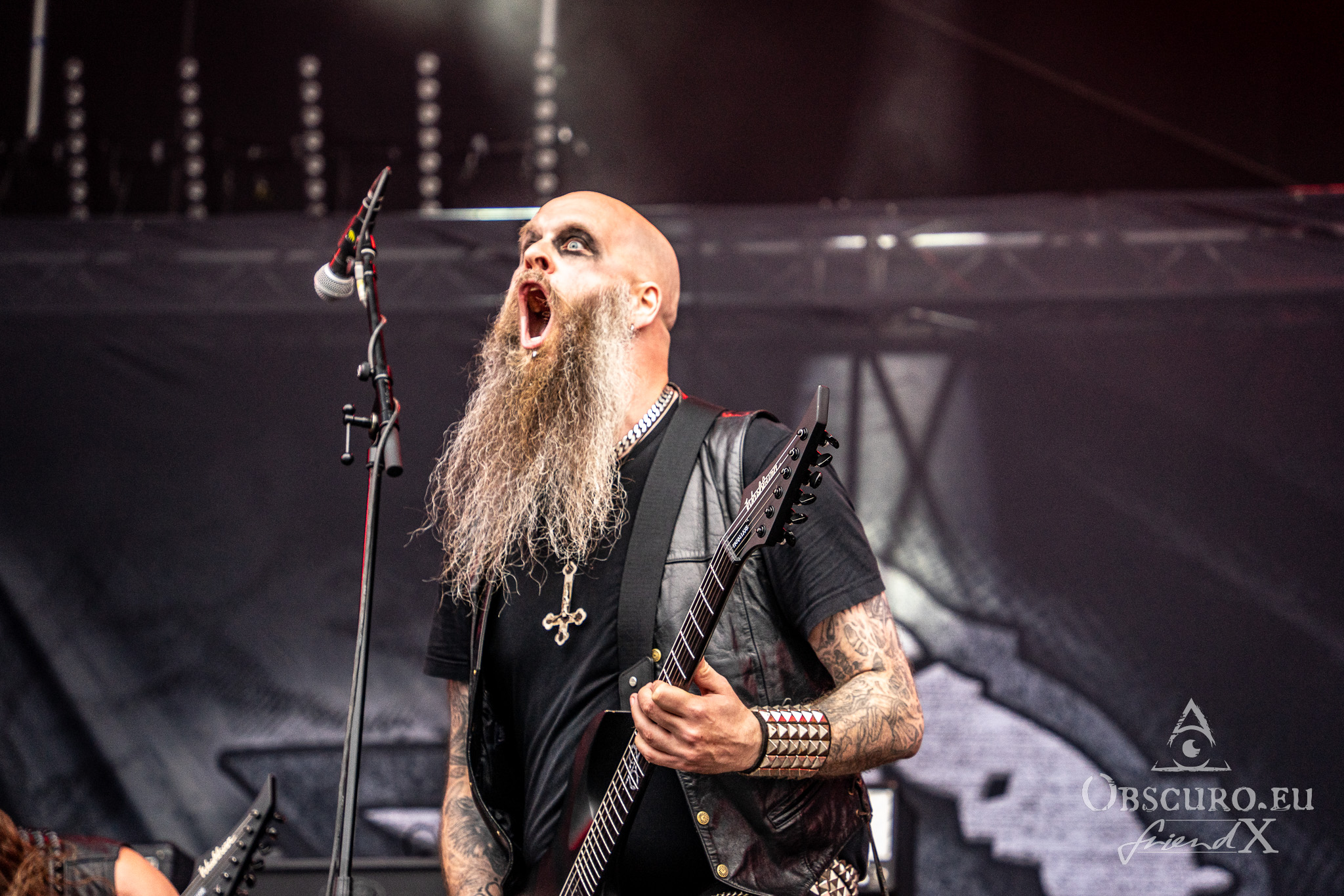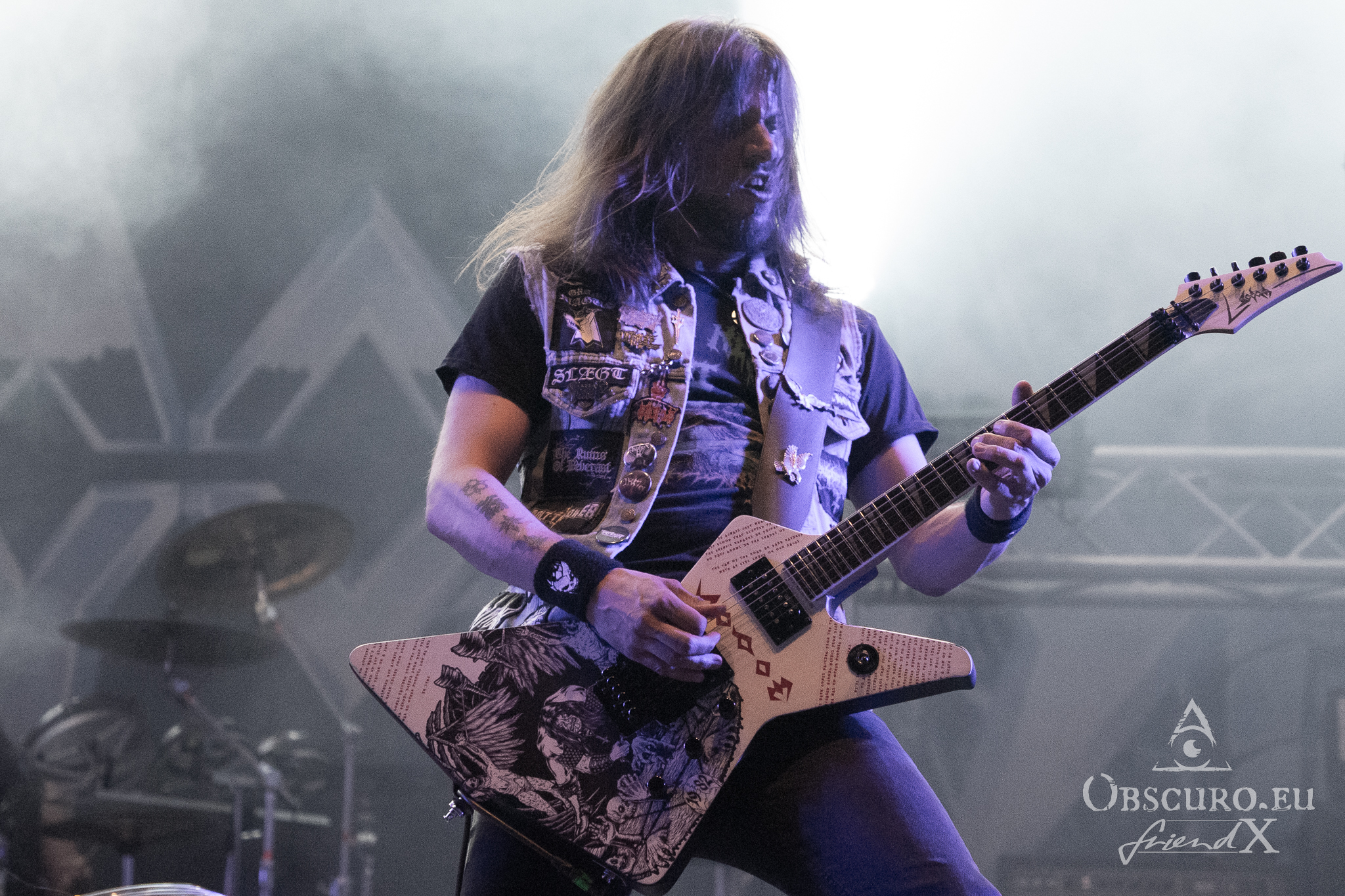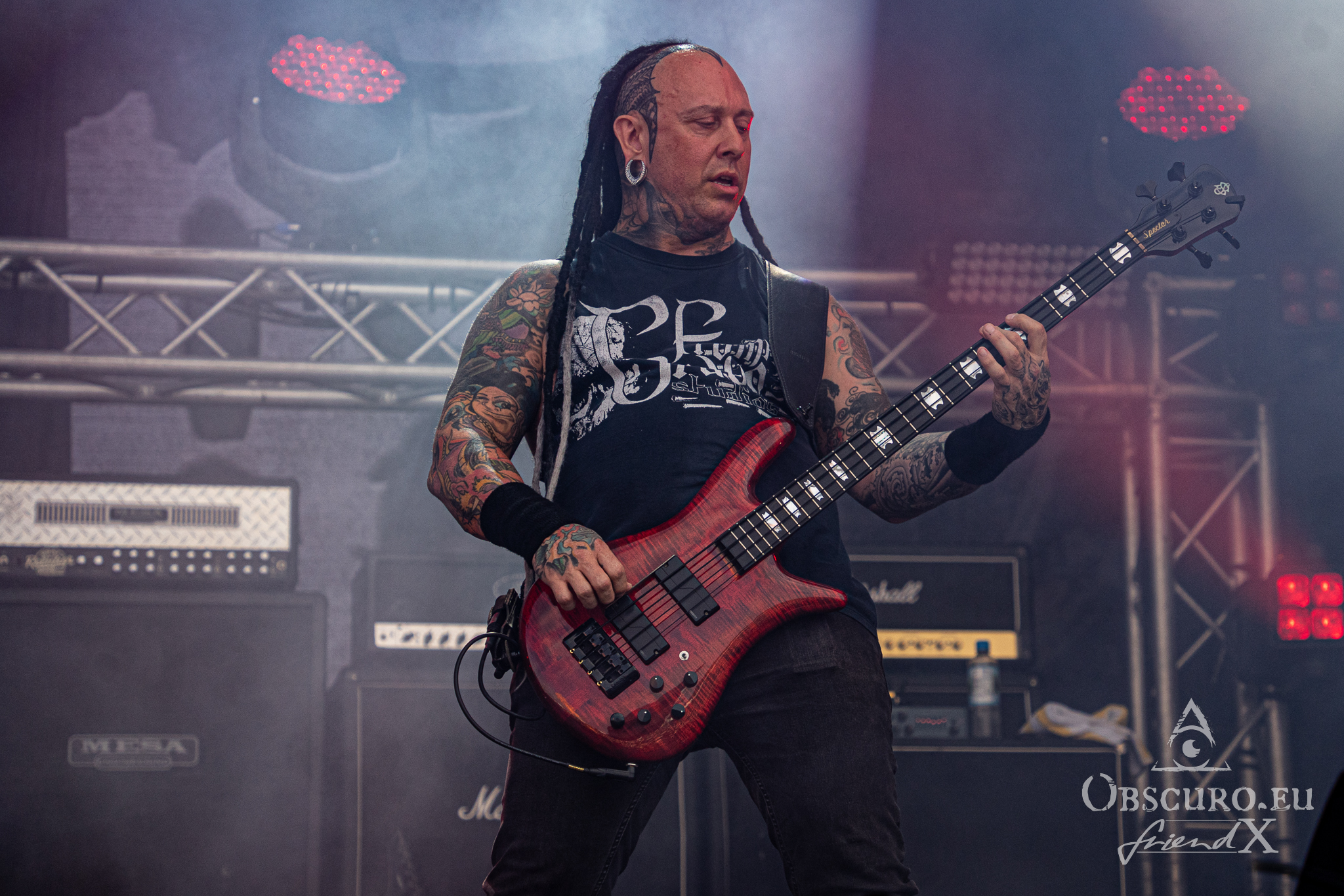 Each festival day at Party.San begins and ends with gun shots from the two guns flanking the main stage, one of them actually being called Esmiralda. The area is very spacious, surrounded by merch, drink, and food stalls. Behind the tower of the sound and light are tents where you could sit and have some shade, while being able to watch and listen to the bands on the main stage. Or you pay a visit to the smaller tent stage just round the corner of the entrance.