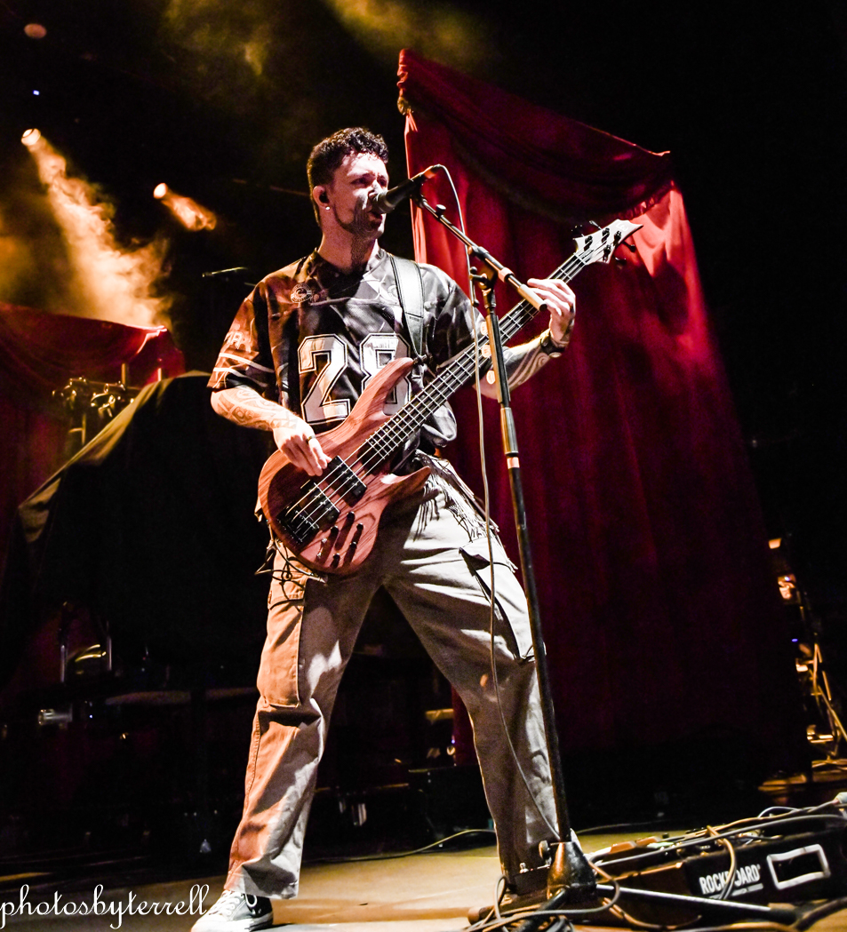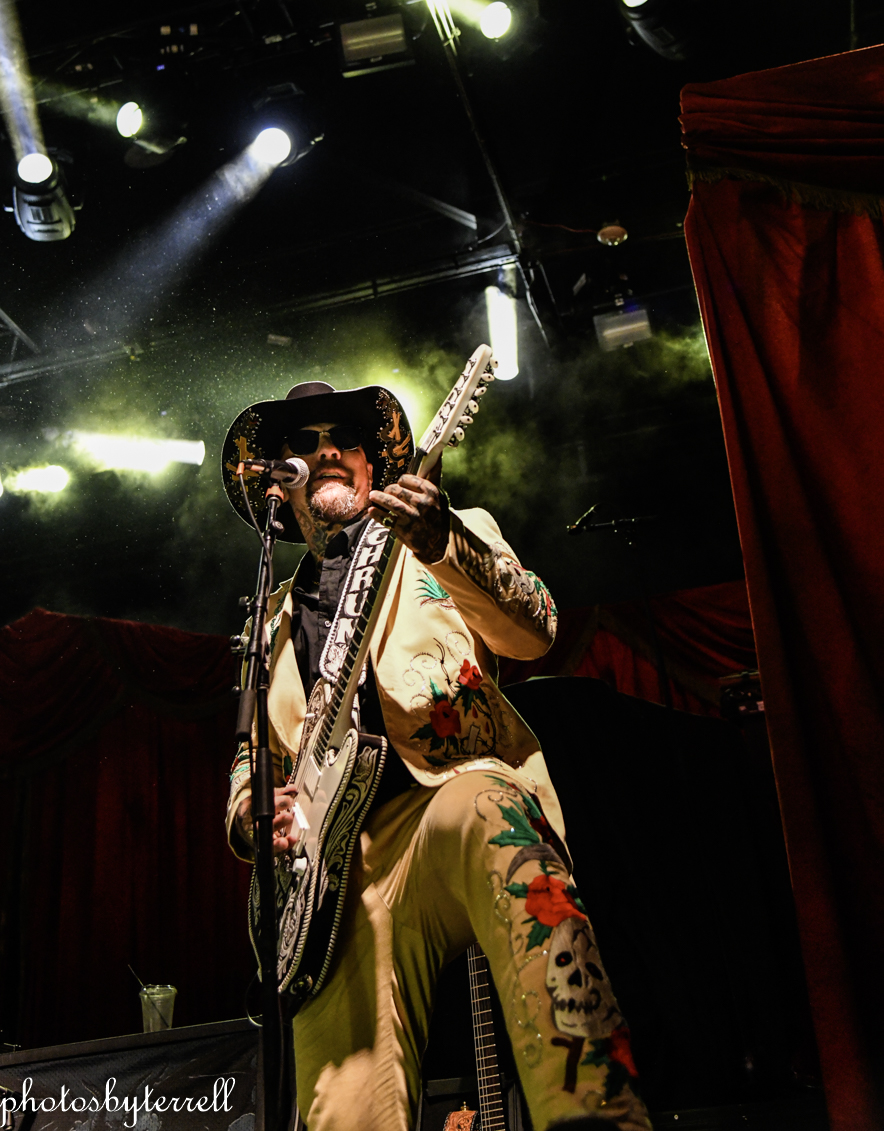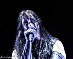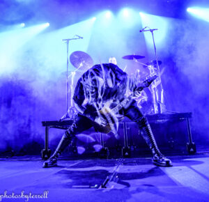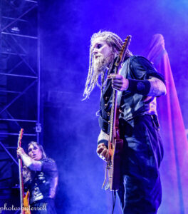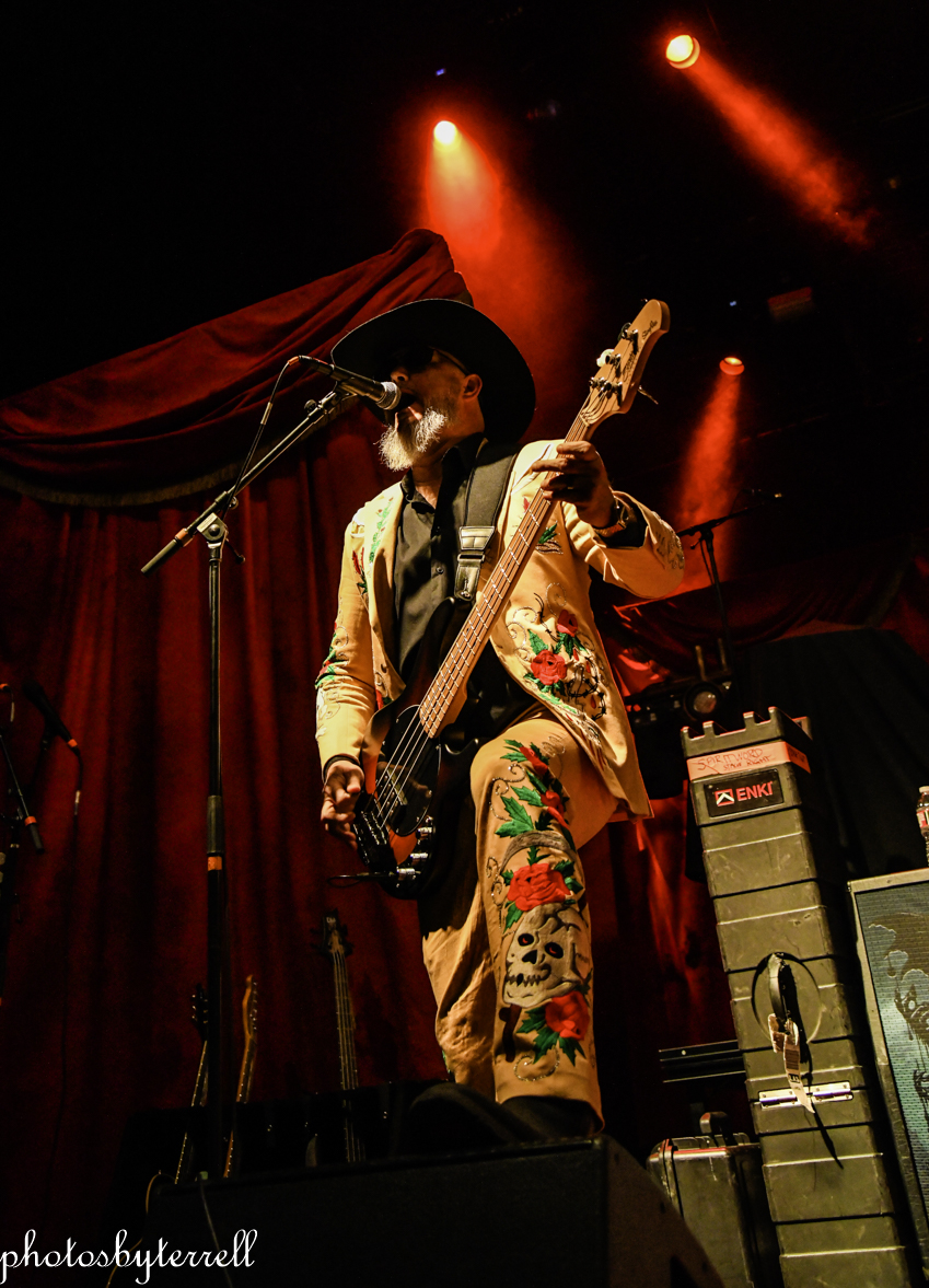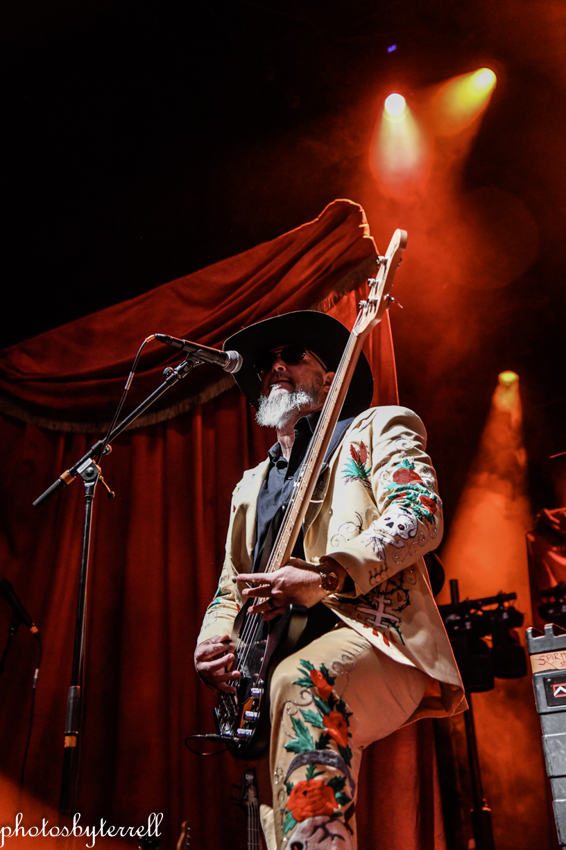 Opening this evening was SpiritWorld from Las Vegas, Nevada. Lead singer Stu Folsom describes their music as, “death – western metal” with western themes and imagery. Three of the members wear the same outfits, yellow pants and sport coats with flowers and skulls lining the arms and legs. Lead Stu’s outfit is black the same flowers and skulls. They opened their set with “Relic of Damnation“ from their 2022 album, Deathwestern and I was a bit surprised by their hardcore thrash sound.