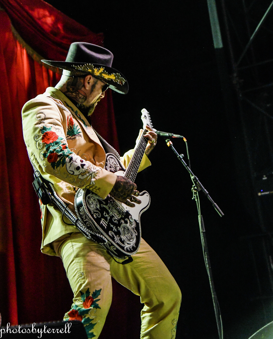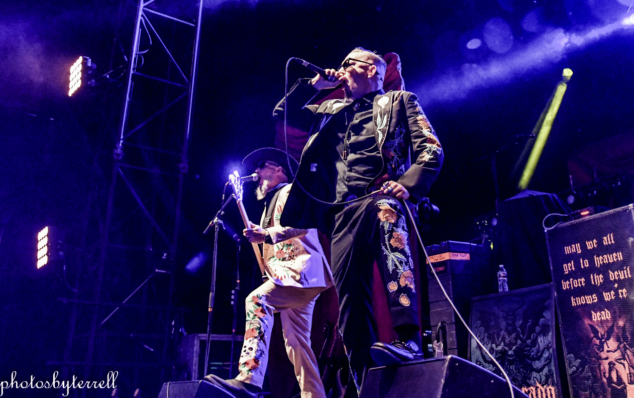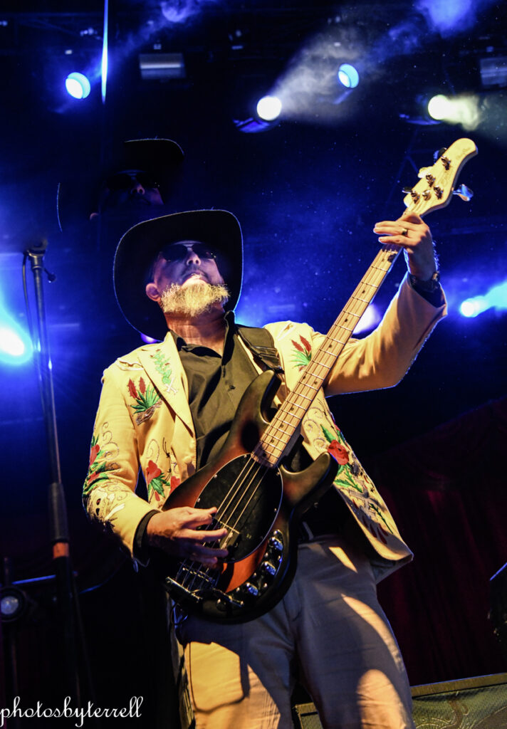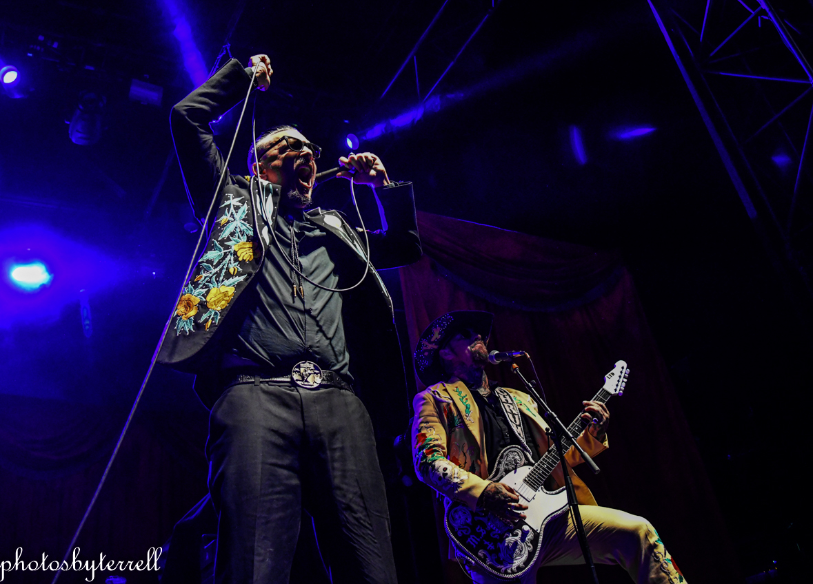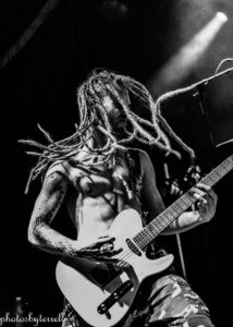 Opening this evening was SpiritWorld from Las Vegas, Nevada. Lead singer Stu Folsom describes their music as, “death – western metal” with western themes and imagery. Three of the members wear the same outfits, yellow pants and sport coats with flowers and skulls lining the arms and legs. Lead Stu’s outfit is black the same flowers and skulls. They opened their set with “Relic of Damnation“ from their 2022 album, Deathwestern and I was a bit surprised by their hardcore thrash sound.