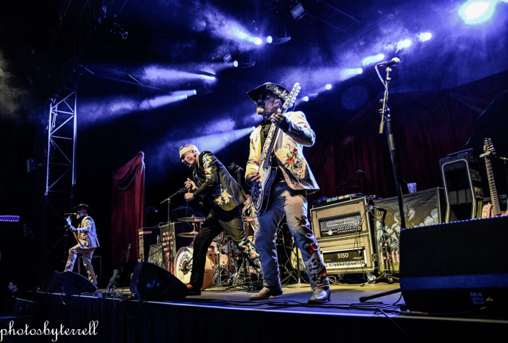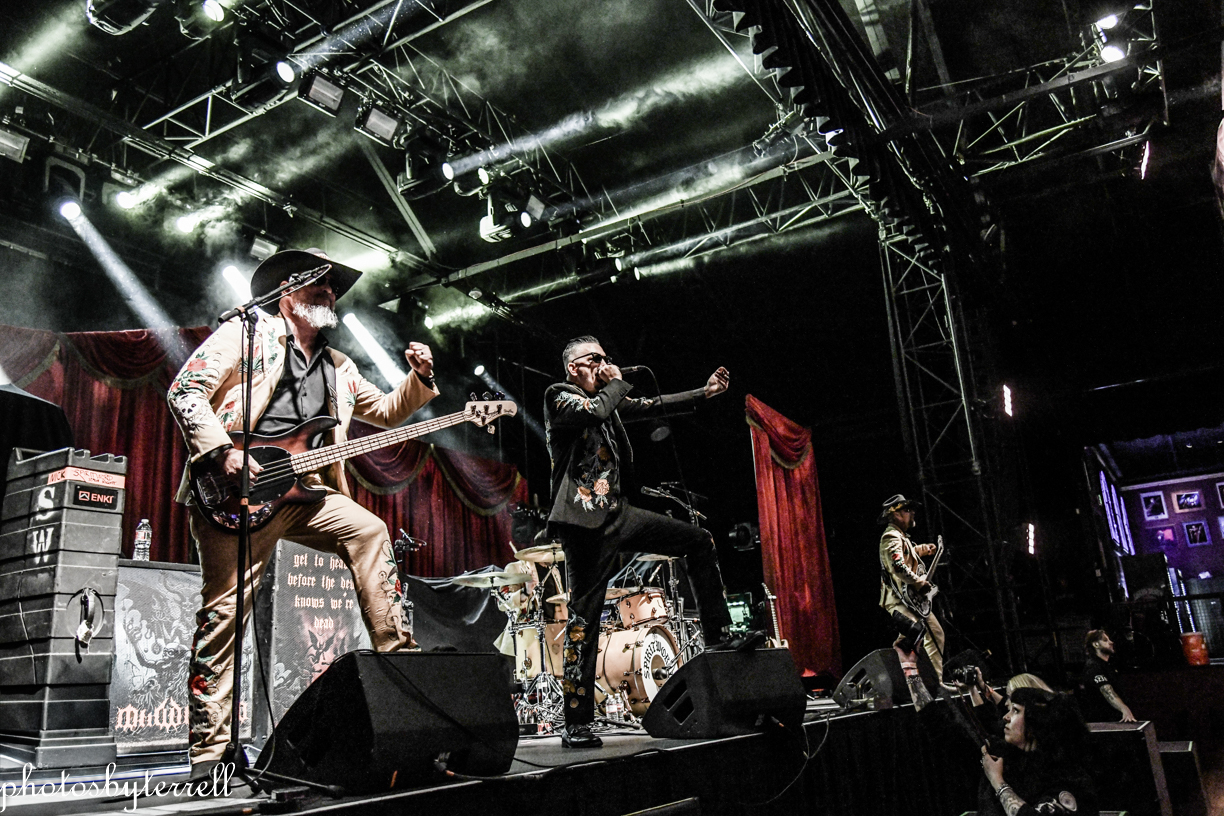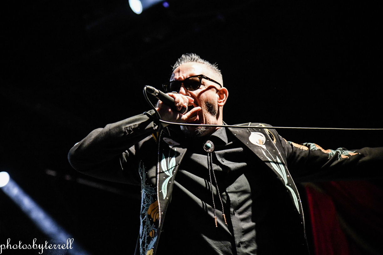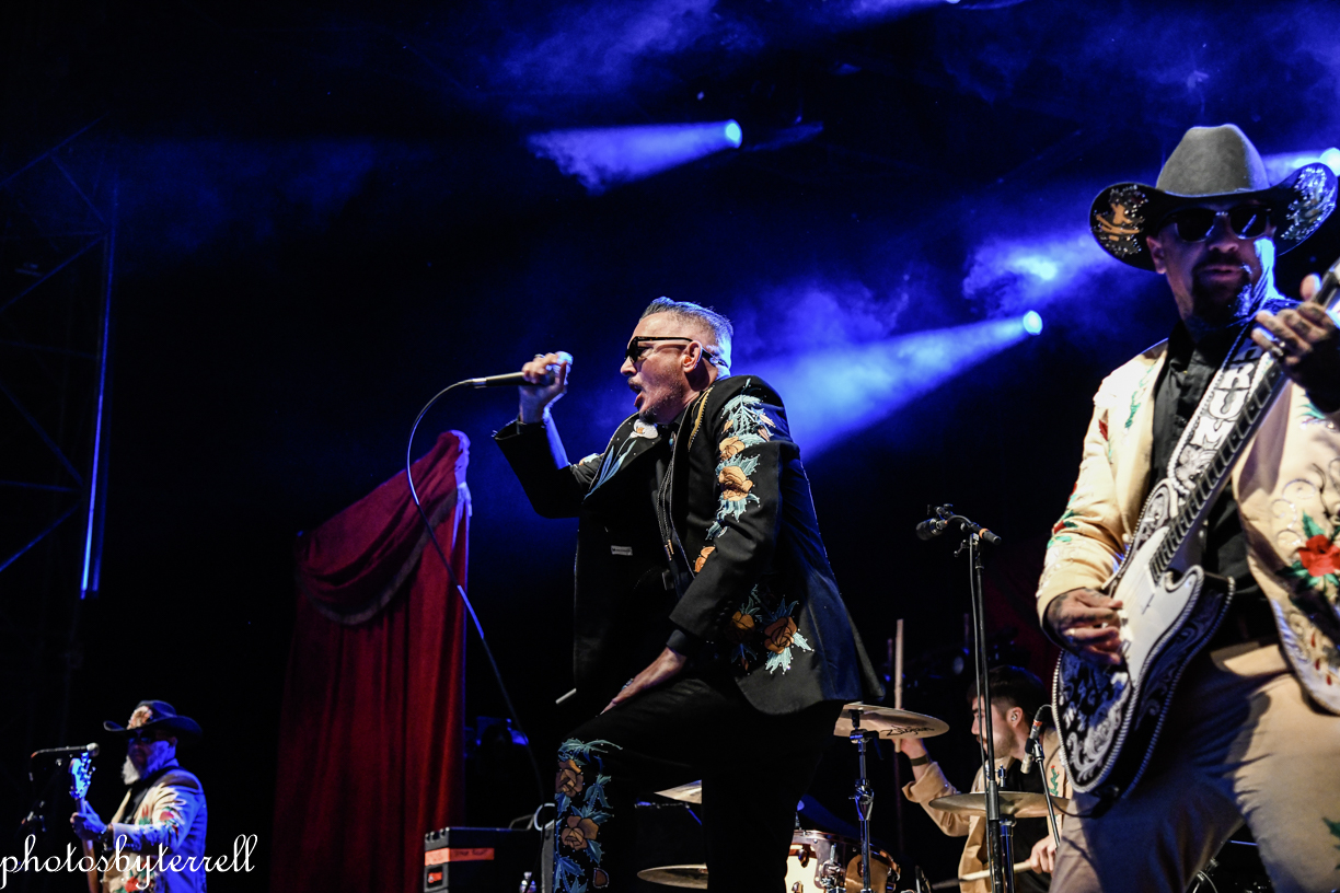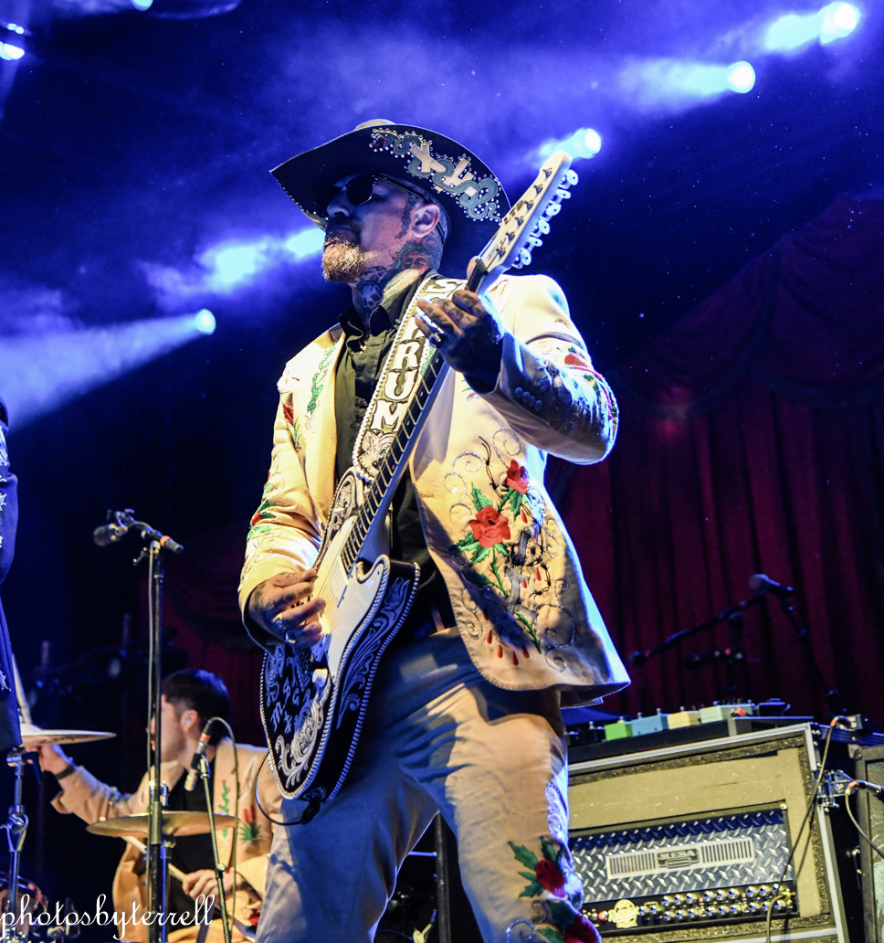 Opening this evening was SpiritWorld from Las Vegas, Nevada. Lead singer Stu Folsom describes their music as, “death – western metal” with western themes and imagery. Three of the members wear the same outfits, yellow pants and sport coats with flowers and skulls lining the arms and legs. Lead Stu’s outfit is black the same flowers and skulls. They opened their set with “Relic of Damnation“ from their 2022 album, Deathwestern and I was a bit surprised by their hardcore thrash sound.