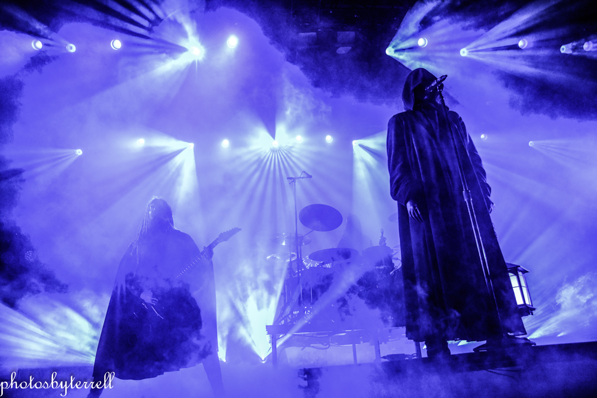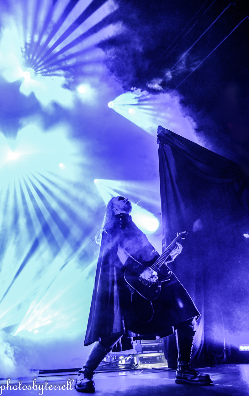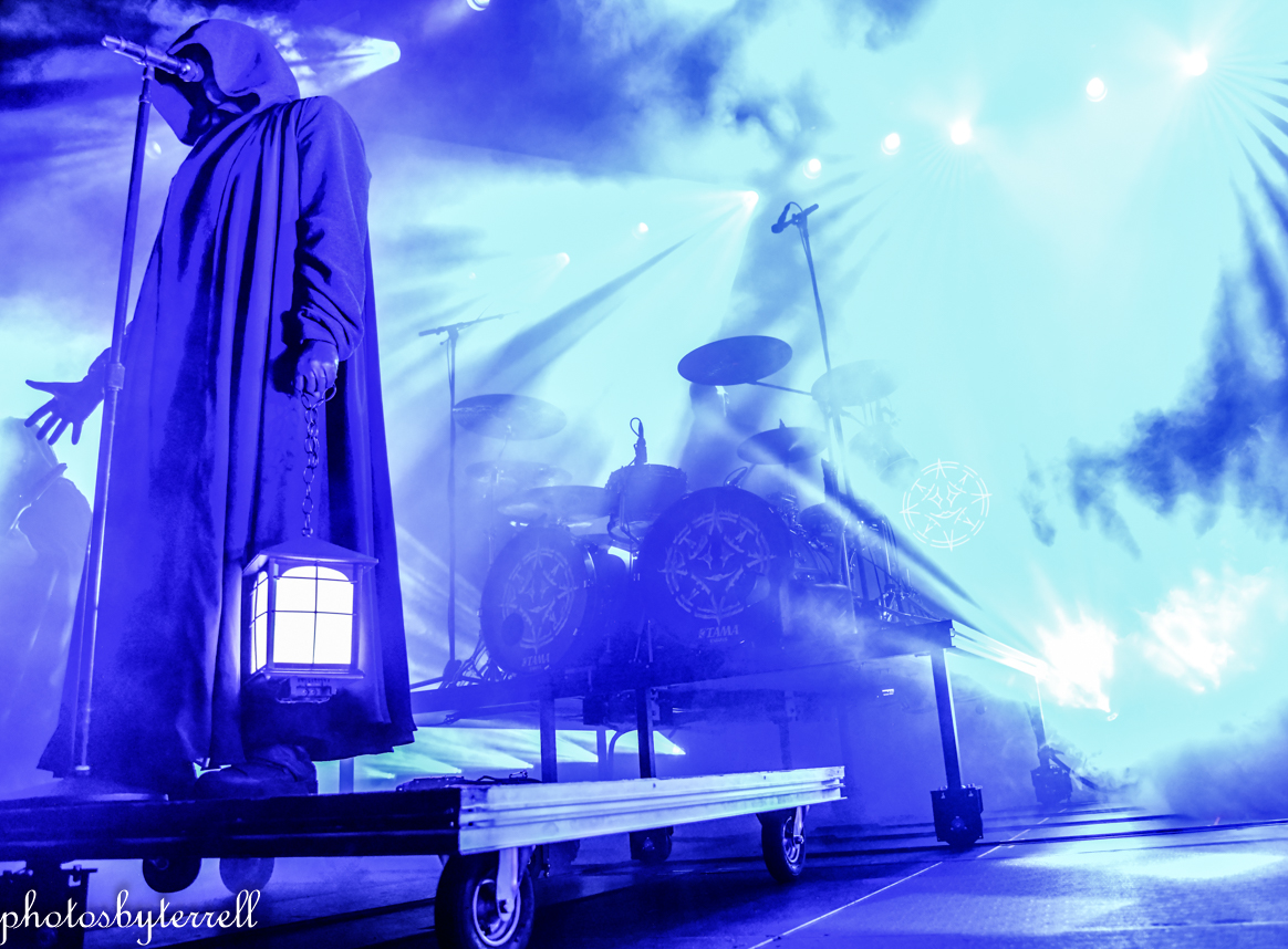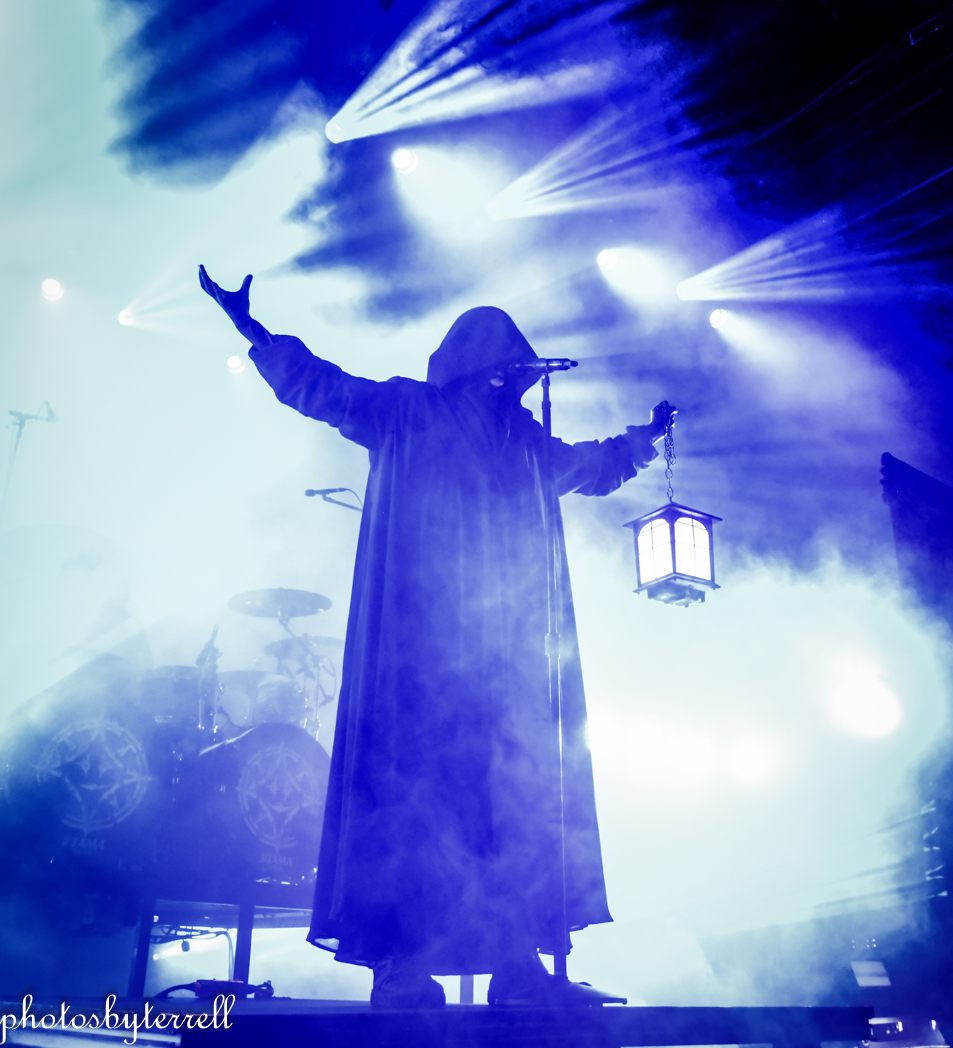 As Avatar’s popularity has grown over the years and so has their stage production and what was witnessed this night was no exception! A stage filled with heavy fog, almost no lighting, a curtain opens and a platform slowly rolls out with the five members on it, all wearing hooded capes.