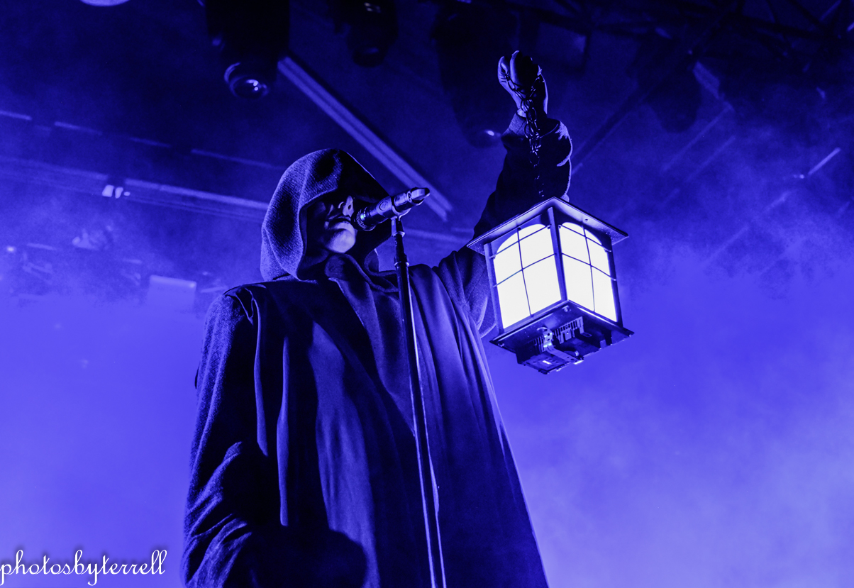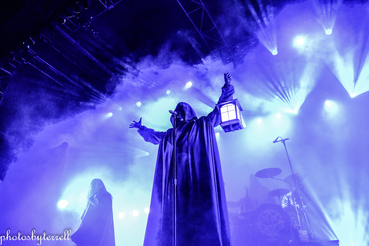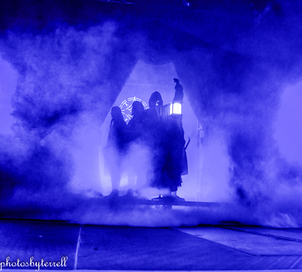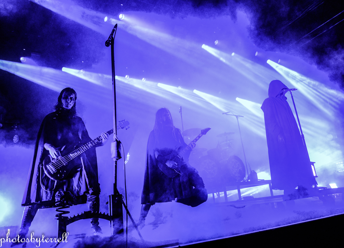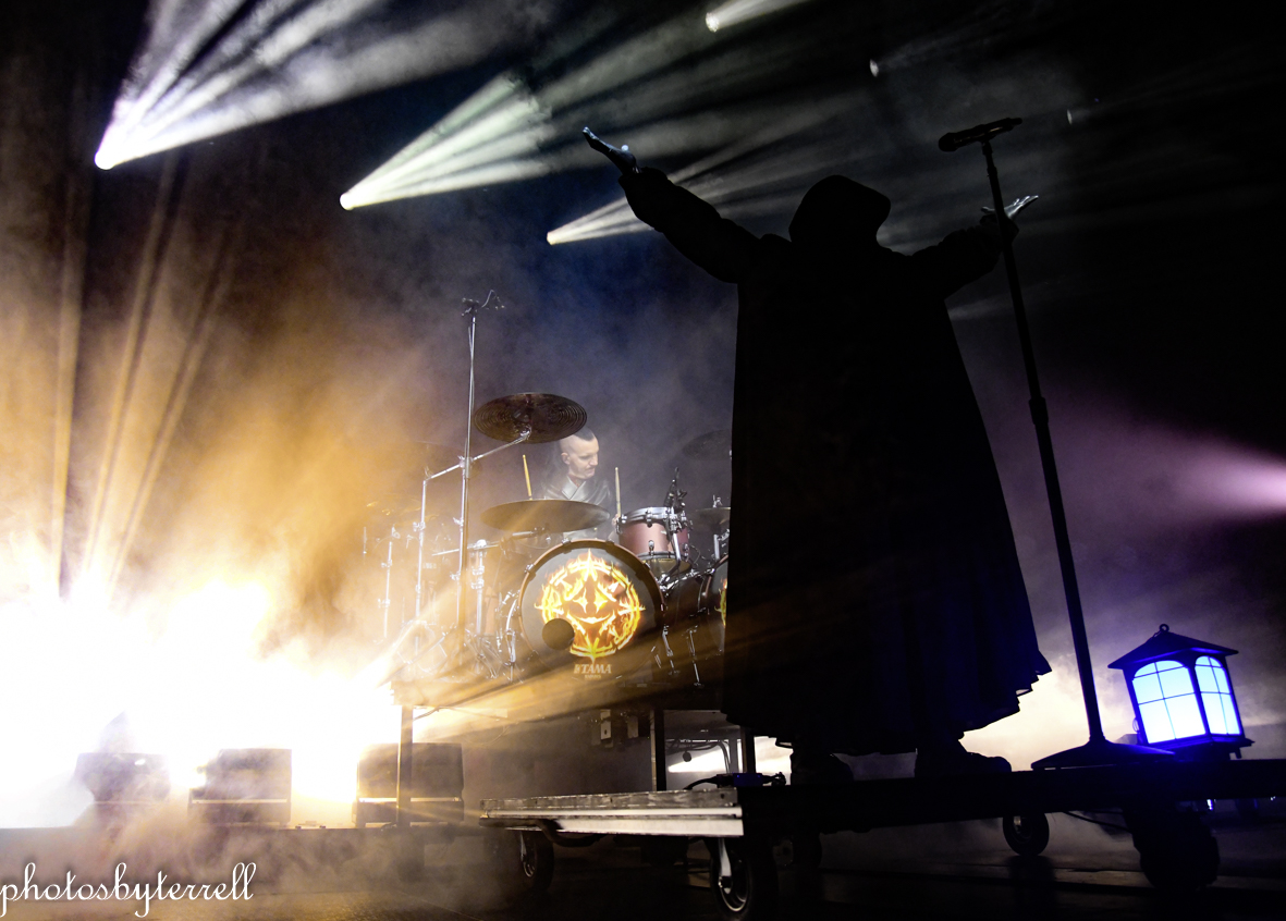 As Avatar’s popularity has grown over the years and so has their stage production and what was witnessed this night was no exception! A stage filled with heavy fog, almost no lighting, a curtain opens and a platform slowly rolls out with the five members on it, all wearing hooded capes.