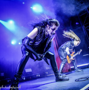 The venue was going crazy with their fans cheering, waving their arms and headbanging! The first song ended and drummer John Alfredsson on his own platform right behind Johannes was lit up with bright lights. He sat there looking around, then bright lights poured out from behind him as Johannes took his cape off and the band broke into, “The Eagle Has Landed” and the volume in the venue was unreal.