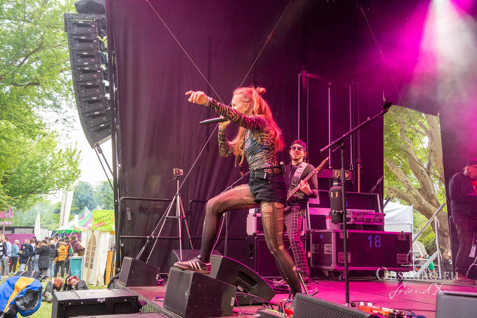 The fourth band I watched on this slightly chilly evening after sunset was called sharpened.lives. The brutality of the guitar riffs had decreased, and the music was more akin to alternative rock crossover with some electronica elements. Nevertheless, the trio raised the bar for the audience again. Wild, outrageous and powerful music ruled the festival as the sun set.