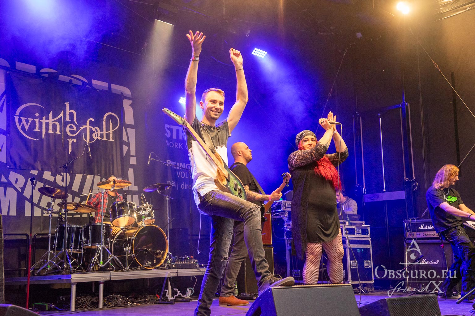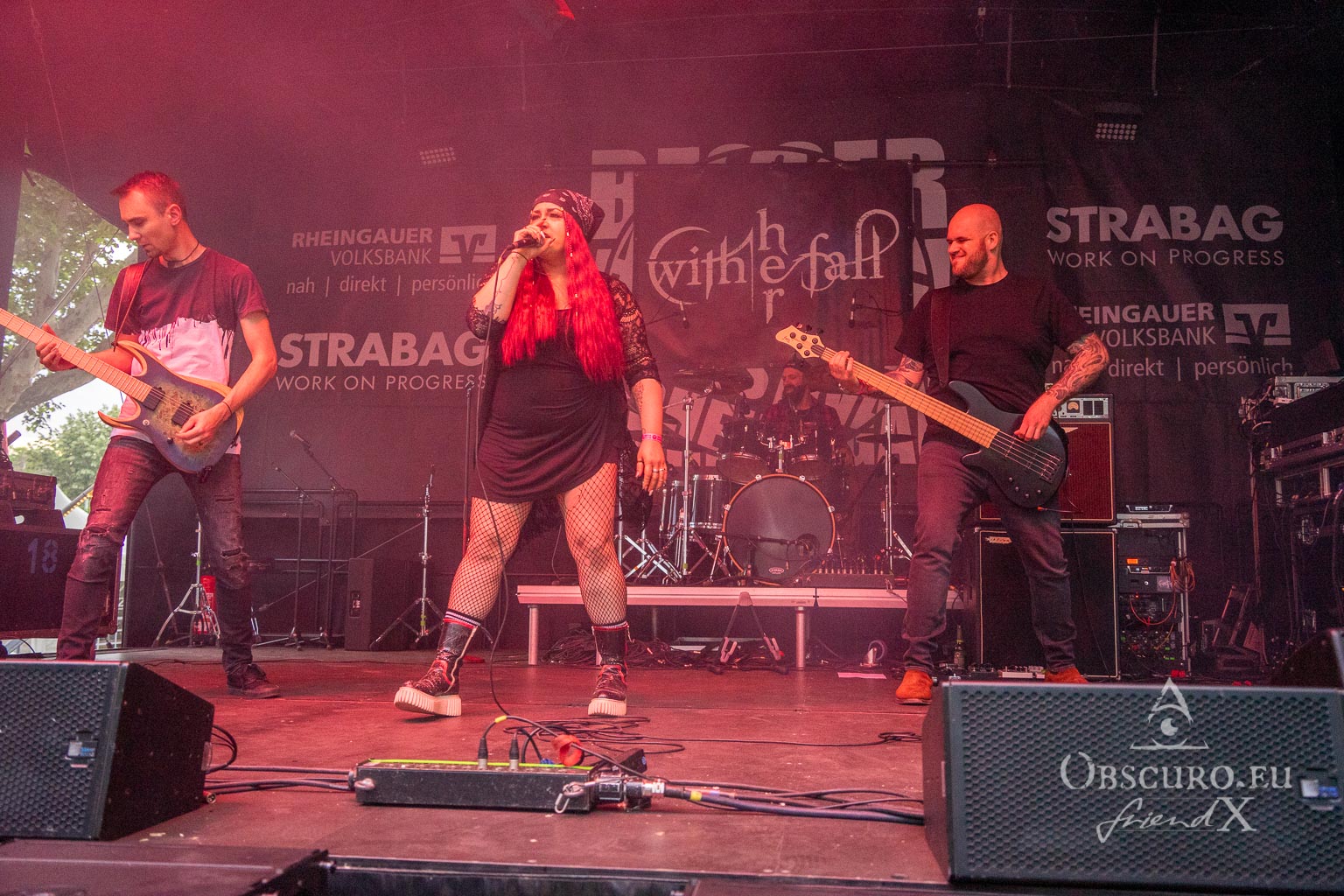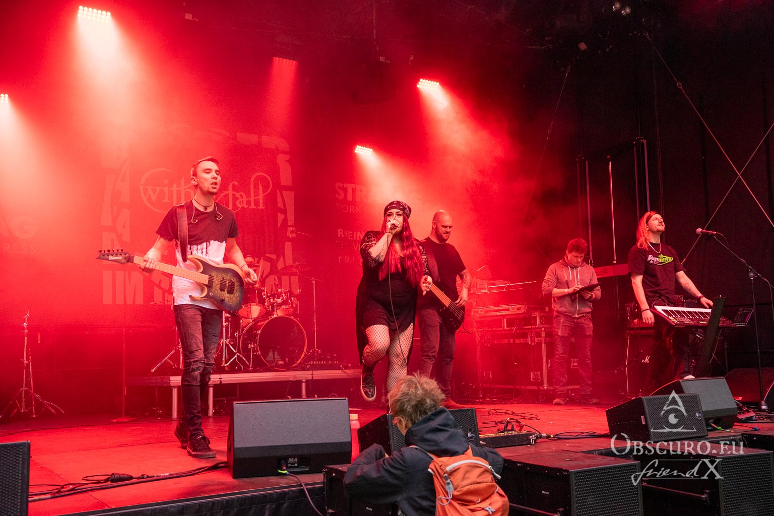 Third band to perform are With Her Fall, who play a wild mix of Nu and Alternative Metal. Like the previous act, they are a female-fronted band, but they sound completely different. So much for ‘metal is always the same three boring chords’. During their set, I saw the first circle pit of the evening, but certainly not the last! Even a diverse audience can go wild!