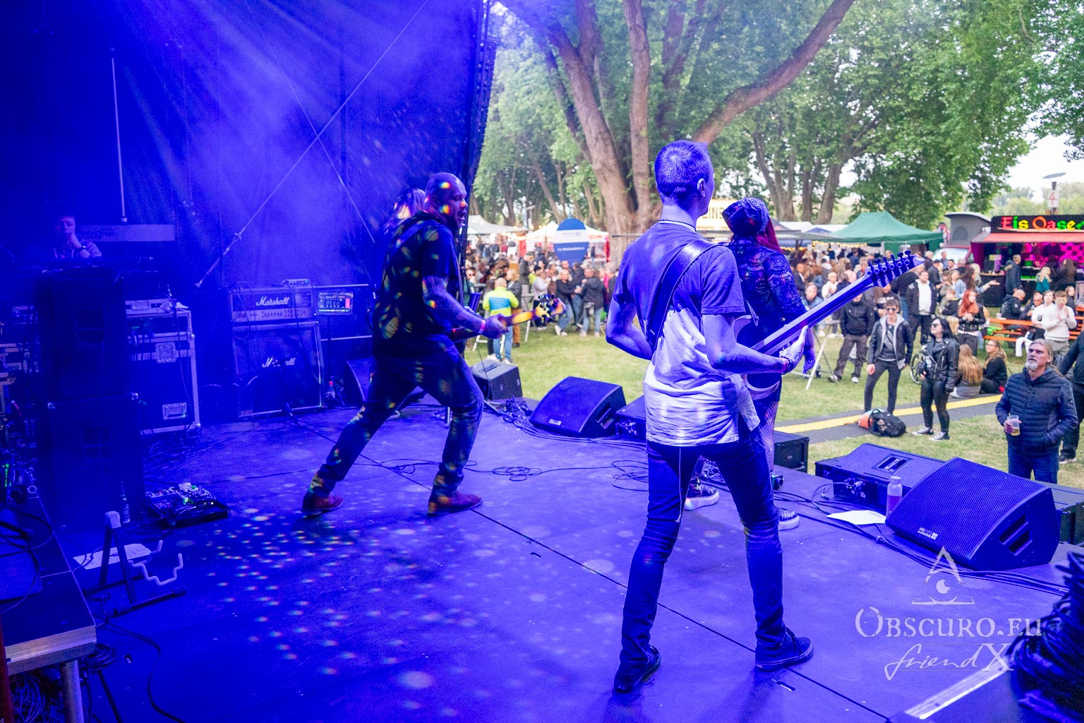 So now let’s take a look at Friday’s bands. The opening act was Unknown Voyage. They play a kind of pop punk, leaning more towards punk than pop, and certainly not the kind of AOR music that would bore the audience. They could have deserved more viewers earlier in the day at 18:00, but that’s the fate of opening acts. Most people arrive, have a look and listen for a moment, then continue exploring the whole festival before returning later.