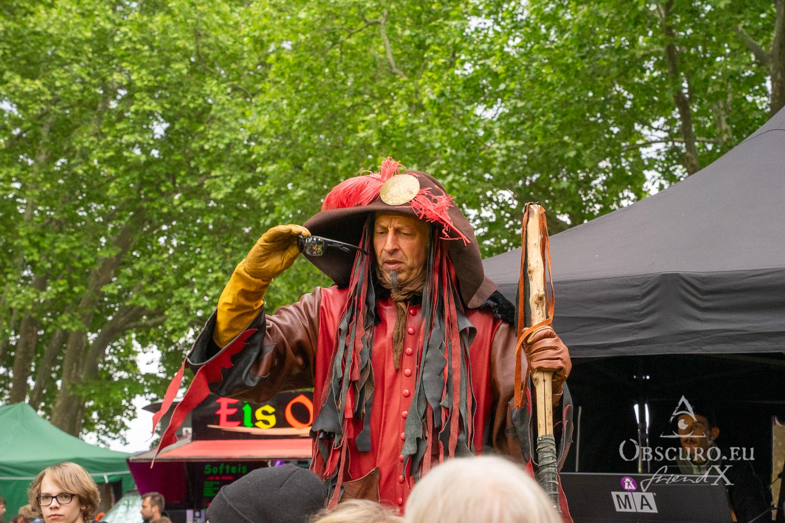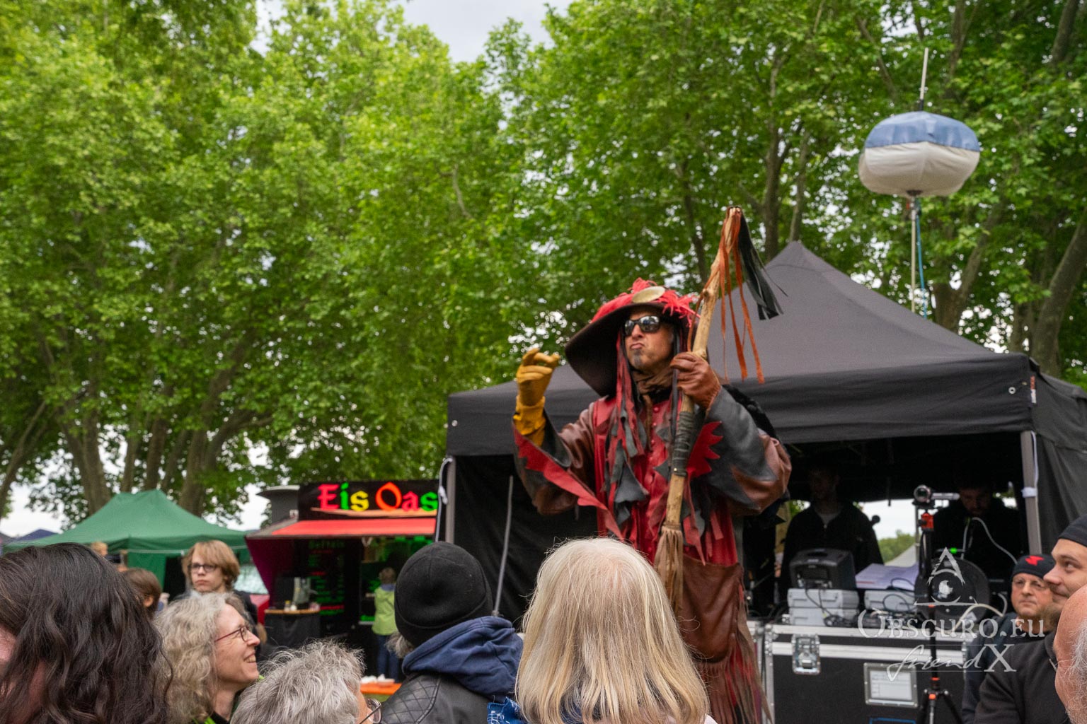Firstly, entry is free. The organisers kindly ask for donations, whatever you can afford instead. Remember that for some people, even five euros can be too high a cost. There is a nice selection of merchandise available to support the festival. As well as that, there are lots of food stalls and a wide variety of other stalls selling all kinds of things, as well as a mobile tattoo studio. There are also three stages. One is more techno-related, the middle one is a small circus tent for wizardry karaoke, and some other sweet little things. The largest one is the main stage for live bands. Just check out the pictures.