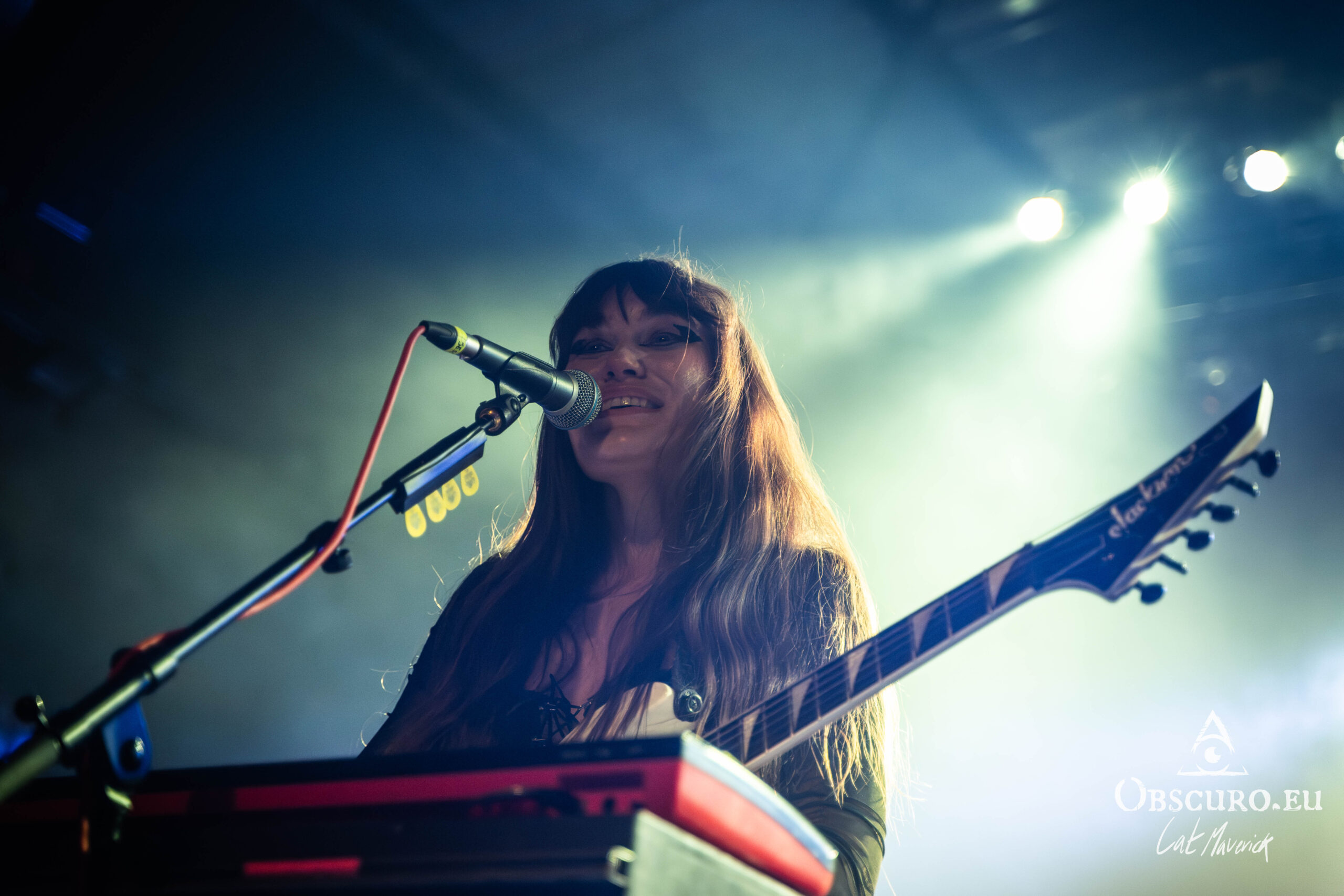With a trippy horror theme, Calva Louise seamlessly follow up the demonic opener. But that’s already where the similarities end. Musically, they turn in an entirely different direction. With a slightly progressive mixture of punk, core, and electro elements the unlikely trio from France, Venezuela, and New Zealand shake up the crowd. On top of this versatile soundscape, the wild switches between jazzy clean vocals and high-pitched screams delivered by Jess Allanic play them right into my heart. I can’t help but think of artists such as Poppy or Nostalghia, hearing this mixture of squeaky cute, and bone-chilling sounds. Not to mention their stage setup not only builds upon the usual bass, guitar, and drums combo but also encompasses a sliding keyboard for fast changes in musical focus as well as a huge synthesizer setup. An excitingly unique appearance in every conceivable way.