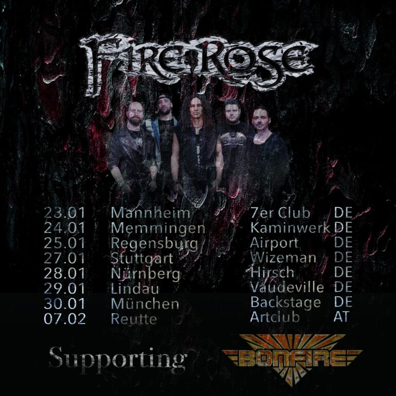 You might have read my report about Fire Rose‘s Finale Furioso in December 2024. During the long after-show party, they told us that they would soon be on tour in southern Germany and Austria as support act for a metal legend. So the last band I saw in 2024 is the first band I will see in 2025. Funnily enough, Fire Rose were also the first band I saw in 2024, supporting Ronnie Romero. This time the headliner is even bigger, none other than German metal pioneers Bonfire. at 7er Club.