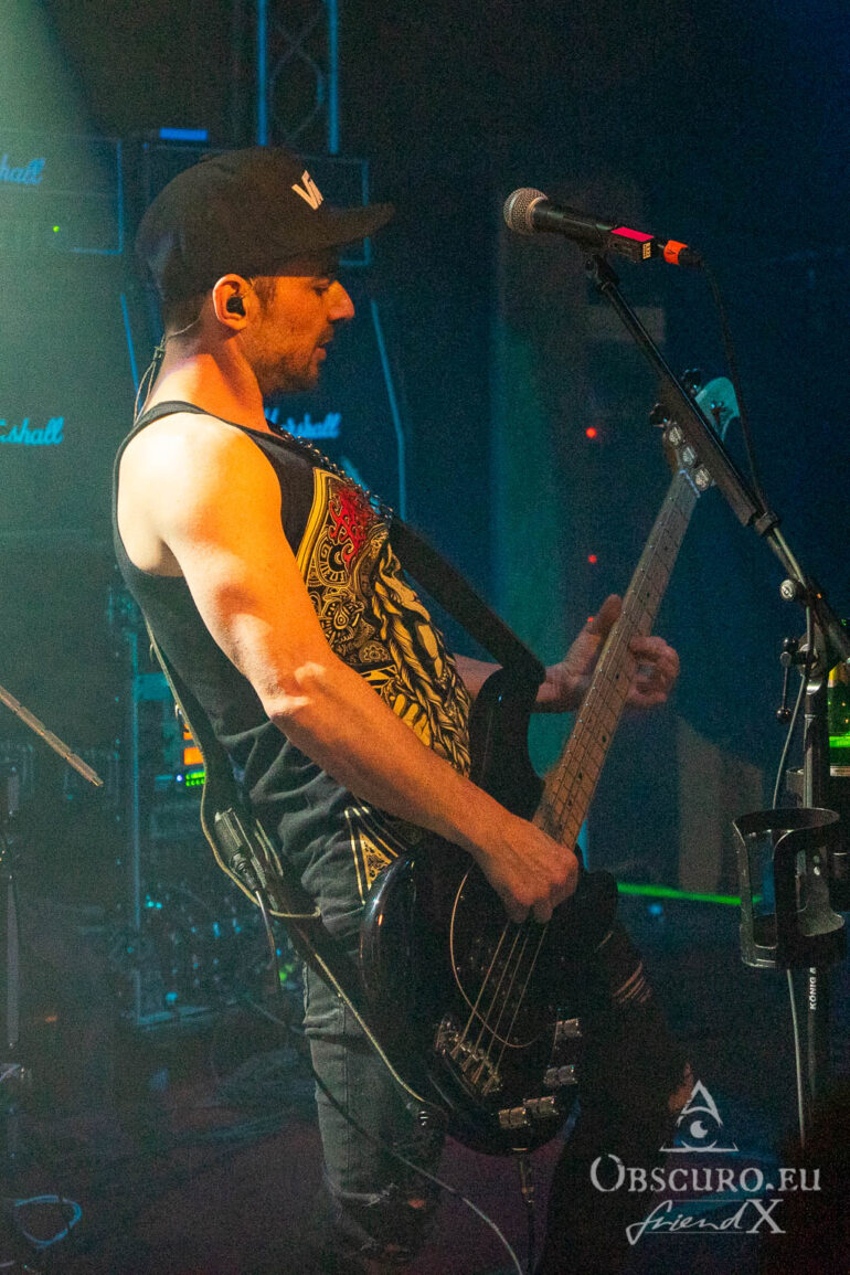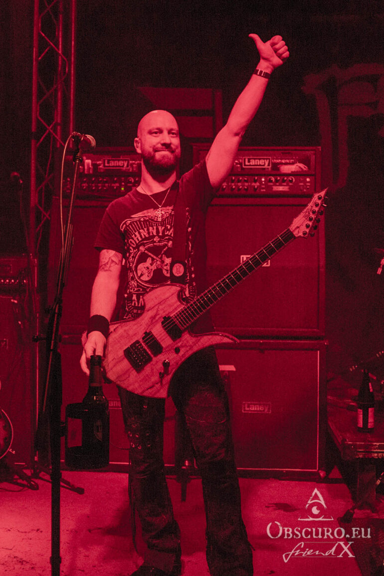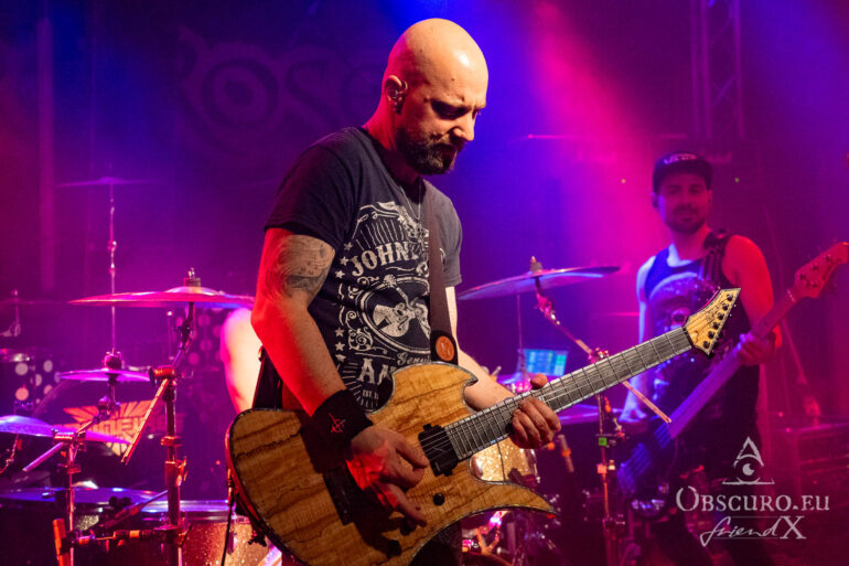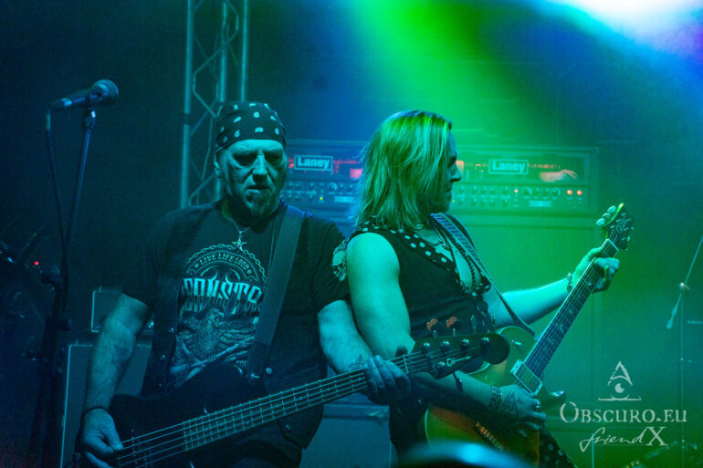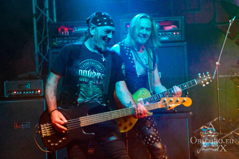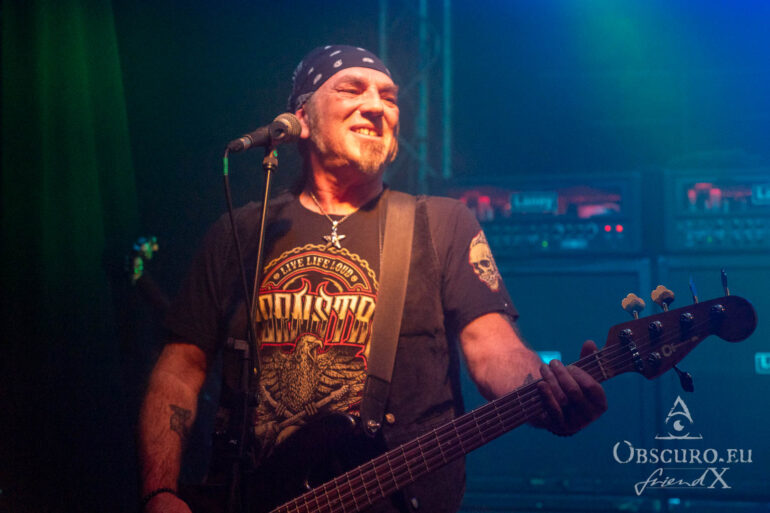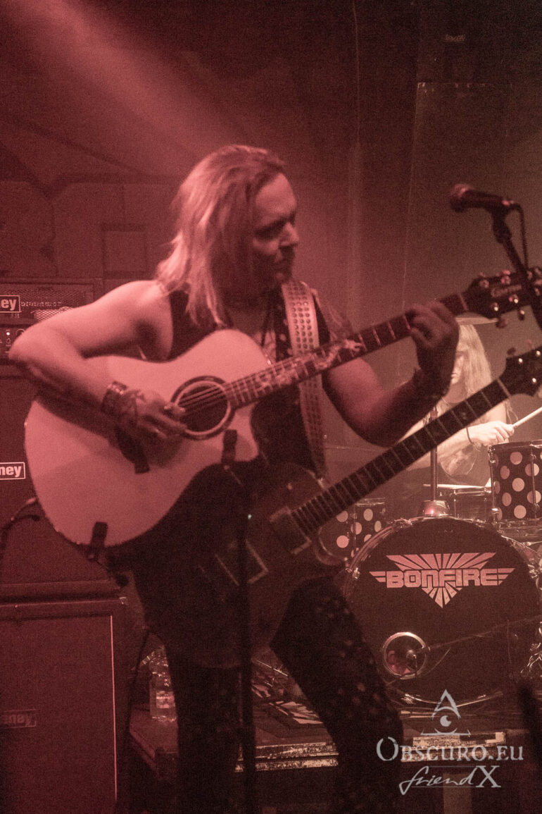 After a short break and some minor changes to the stage setup, it was time for the headliners. Bonfire’s musicians around the only remaining founding member Hans Ziller on rhythm guitar don’t waste any time and open their show.