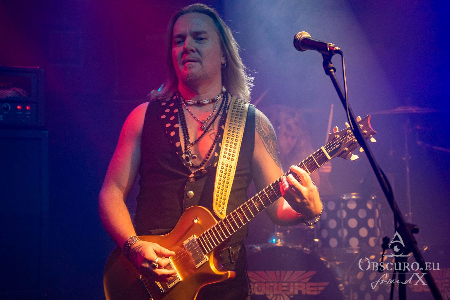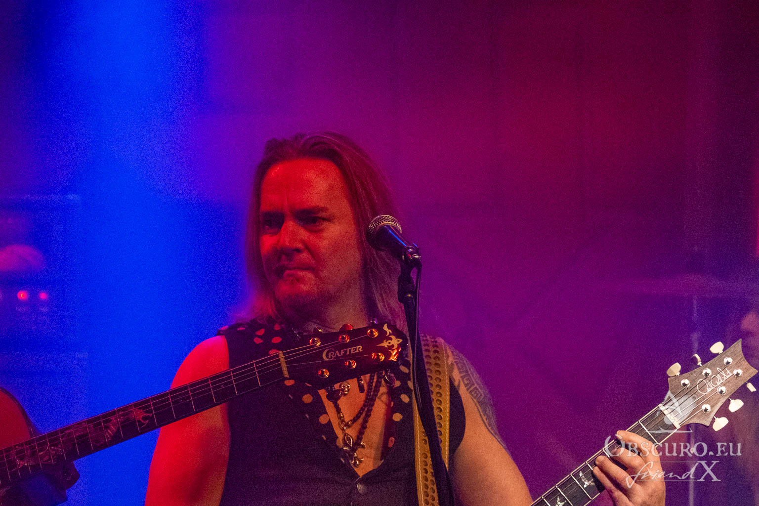 After a short break and some minor changes to the stage setup, it was time for the headliners. Bonfire’s musicians around the only remaining founding member Hans Ziller on rhythm guitar don’t waste any time and open their show.