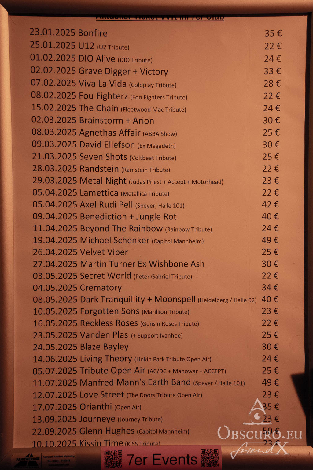 You might have read my report about Fire Rose‘s Finale Furioso in December 2024. During the long after-show party, they told us that they would soon be on tour in southern Germany and Austria as support act for a metal legend. So the last band I saw in 2024 is the first band I will see in 2025. Funnily enough, Fire Rose were also the first band I saw in 2024, supporting Ronnie Romero. This time the headliner is even bigger, none other than German metal pioneers Bonfire. at 7er Club.