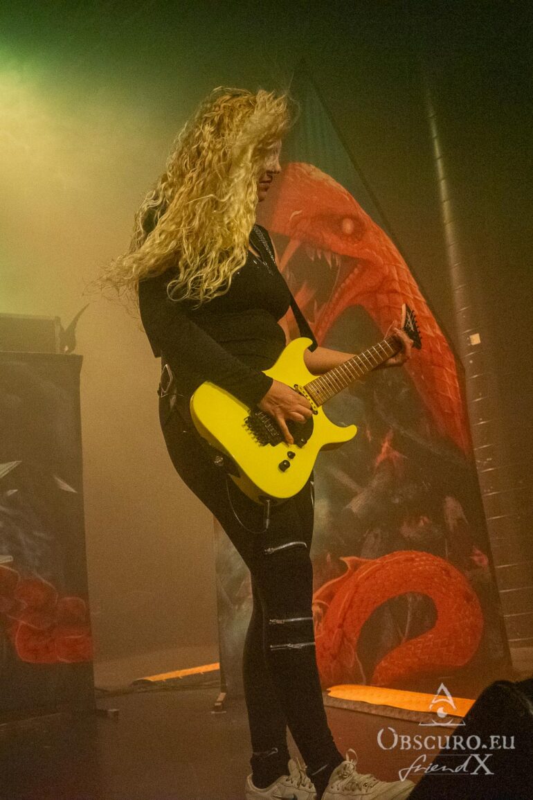 Nevertheless, these fantastic four are not afraid to give vocalist Laura the spotlight and attention she deserves. Her vocals are top-notch, even after the number of shows that Burning Witches have played since 9 January, when the tour started in Milan. If I’m right, they’ve only had one day off! day off in between! Laura must be very disciplined and do a lot of vocal exercises to maintain such a high standard for so long. She gets better and better with each album anyway. Whether she is the female Ronnie James Dio, Robert Halford or Bruce Dickinson is up to you. Whatever you decide, they are all at the top of their game.