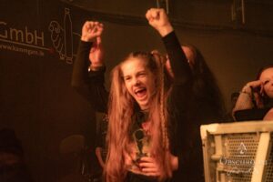 Now, let’s watch the support band Hammer King, who are playing a home game concert tonight. Before the show, I asked myself if there had been any changes since their gig at Event Airport Obertraubling a few weeks ago, when they opened for MystericA’s New Year’s Bash Vol. 3, and the answer is yes! Not in terms of the setlist, which opens with ‘King for a Day’ and closed with ‘Kingdom of the Hammer King’, if I remember correctly, but the small details and interactions make the difference. Tia’s stage presence is, of course, the most prominent, but you can see, feel and experience that this is their home gig! After the show, they spend hours with their fans and friends without taking a break.