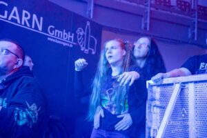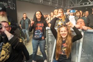 The gig at Kammgarn was special. It was sold out, which shows how important a well-chosen support band can be. There was no disharmony, vanity or jealousy between the two bands, only respect. That’s how a tour should be: for the bands’ enjoyment and the audience’s entertainment. A mother and her daughter in a wheelchair catch my attention and I ask if I can take some pictures of them to demonstrate how well metal inclusion works — it’s pure joy and fun! So with your permission, these pictures are especially for you both!