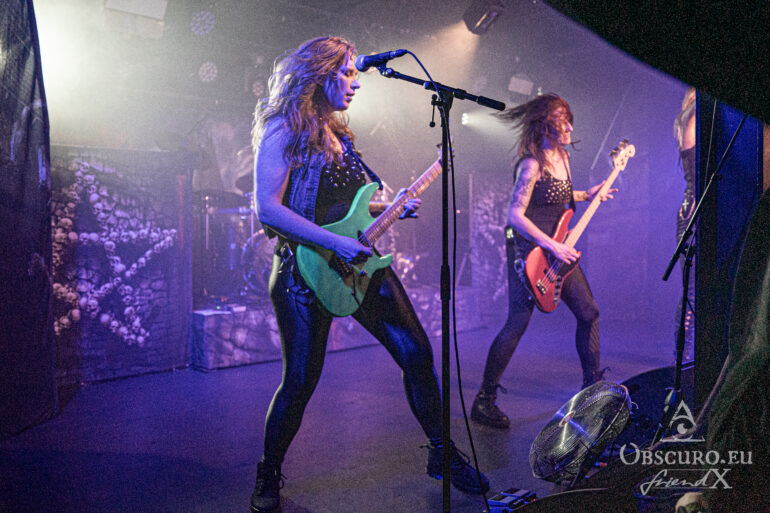 Good news at arrival, Burning Witches are not affected by it, but will start playing half an hour earlier. Guitarist Courtney Cox still has time to stand in the middle of the audience, have a chat here and there before she needs to warm up for the show. Courtney tells, that she now resides in Germany for a while, Bochum in particular. Tonight is the last show of the tour and she feels very sorry for Judge Minos, but every possibility they tried did not work out. The very next day, Burning Witches are going to travel to Nuremburg to take a video before they finally go home.