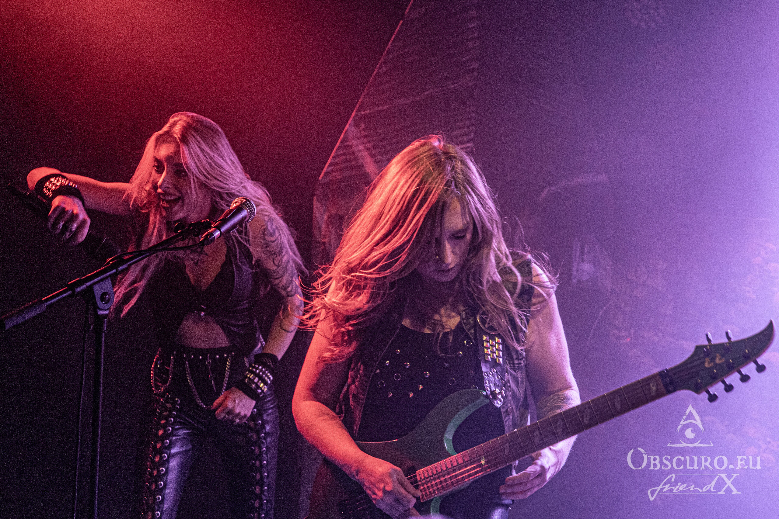 Good news at arrival, Burning Witches are not affected by it, but will start playing half an hour earlier. Guitarist Courtney Cox still has time to stand in the middle of the audience, have a chat here and there before she needs to warm up for the show. Courtney tells, that she now resides in Germany for a while, Bochum in particular. Tonight is the last show of the tour and she feels very sorry for Judge Minos, but every possibility they tried did not work out. The very next day, Burning Witches are going to travel to Nuremburg to take a video before they finally go home.