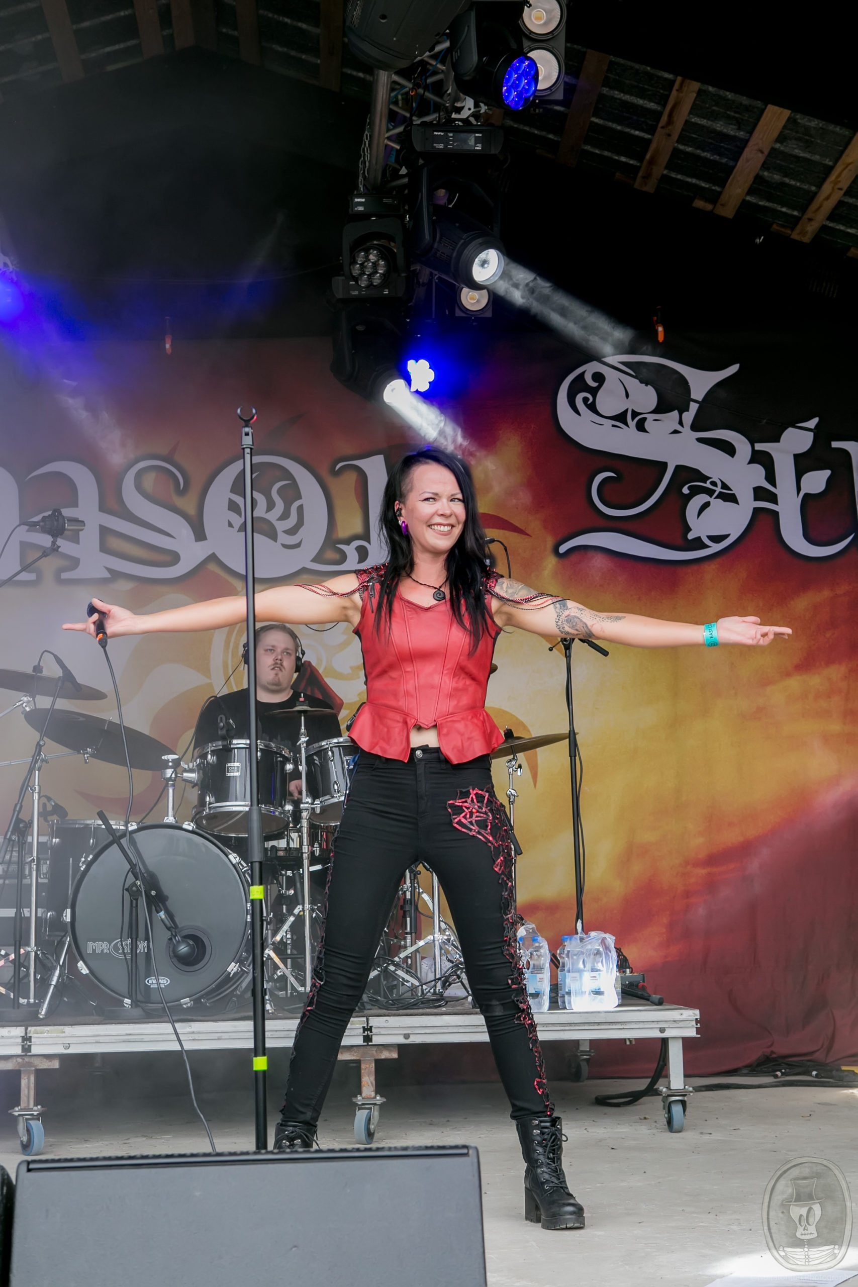 “Hi there from Dark River festival in Kotka! I have the pleasure to interview Crimson Sun. Sini and Miikka: a warm welcome to you both! How are you feeling right about now?”