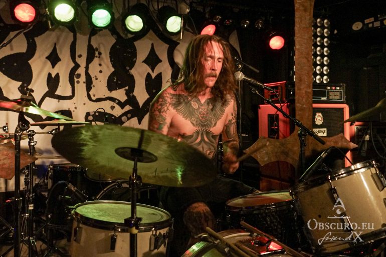 As mentioned above, opener tonight is some Danish dynamite, Katla from Copenhagen. They are three musicians, bass, guitar and drums, the latter being the vocalist. Katla’s very progressive Doom Metal already blows the mind away.