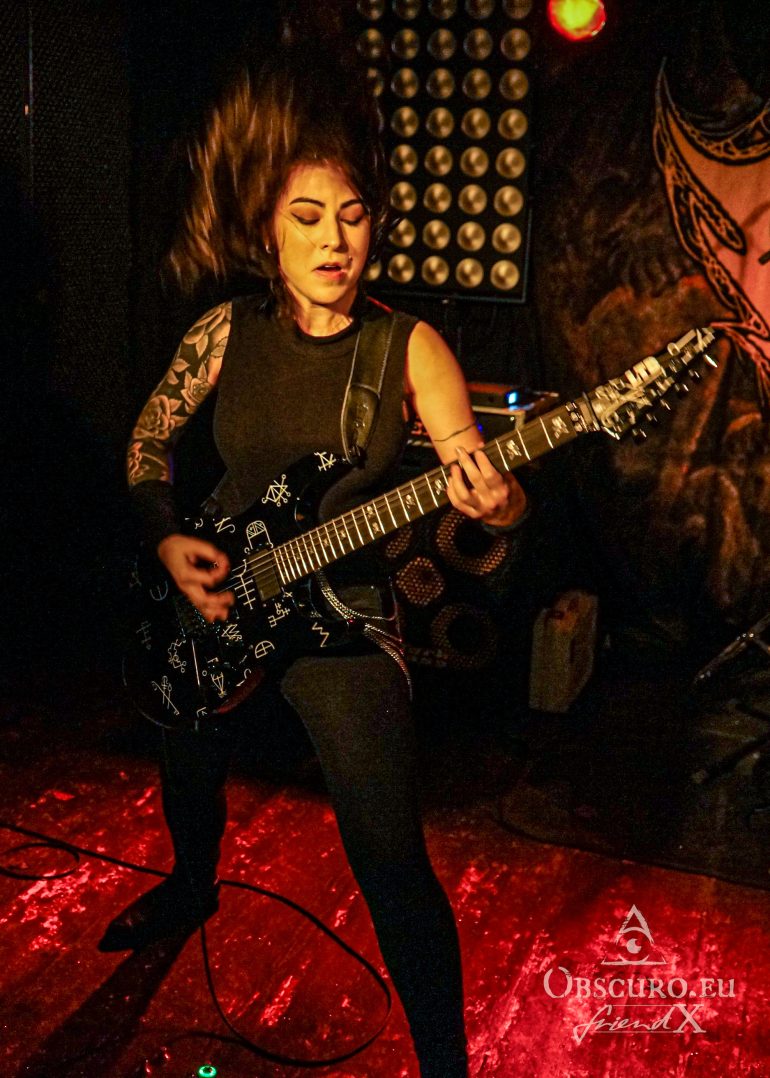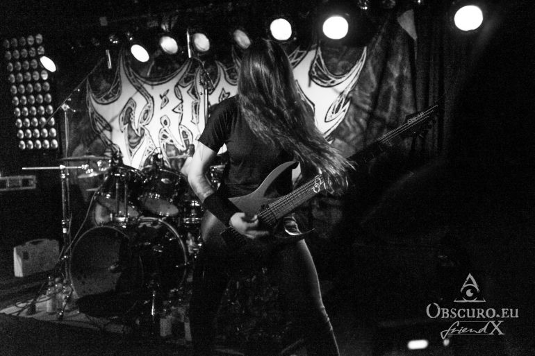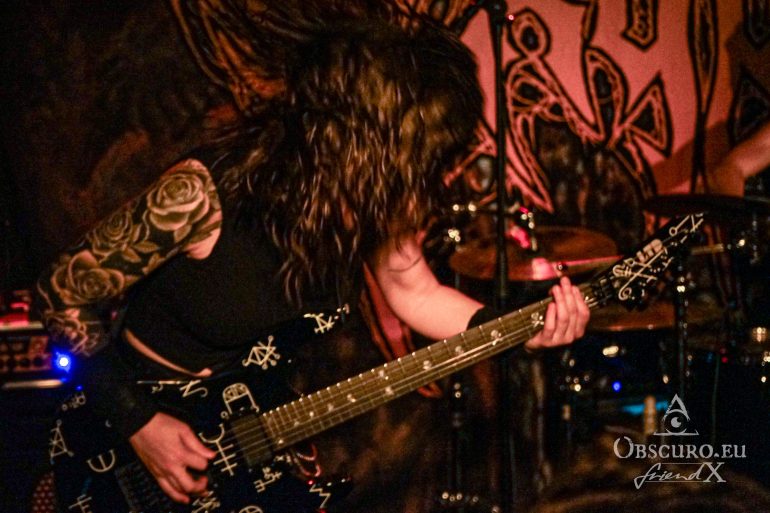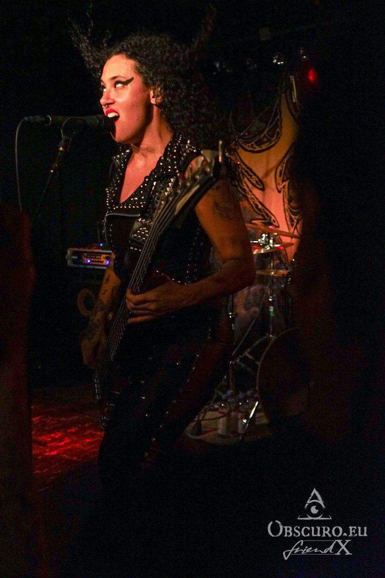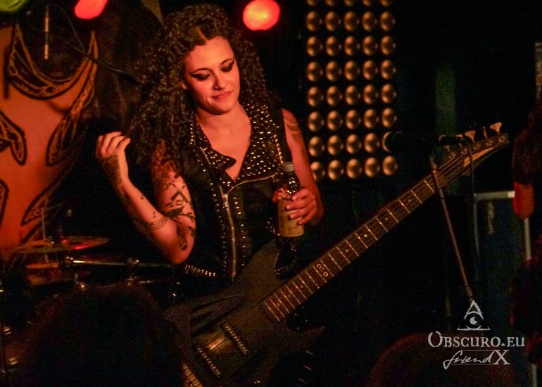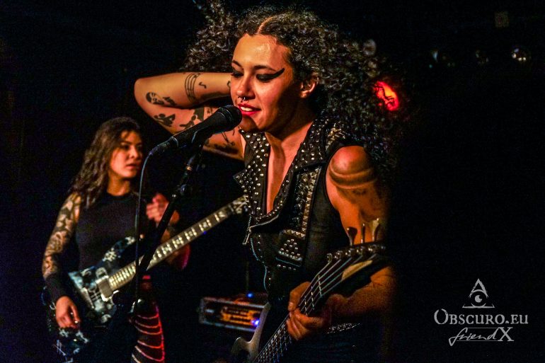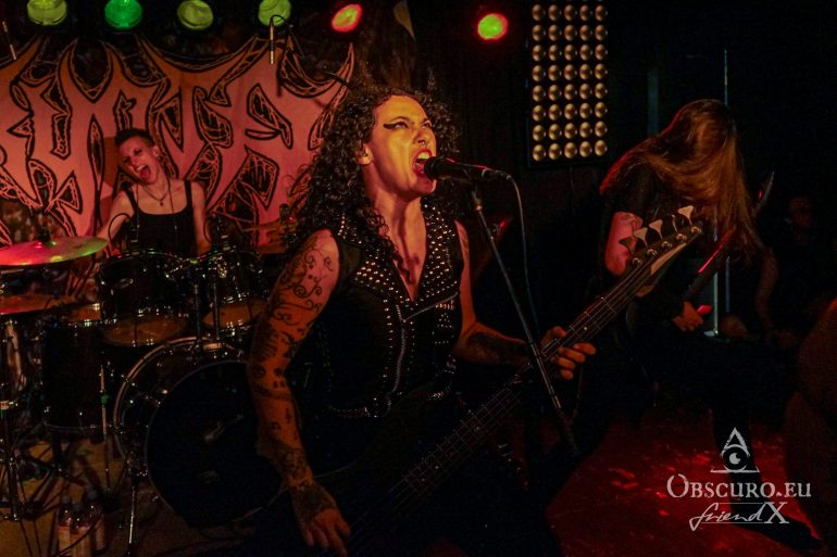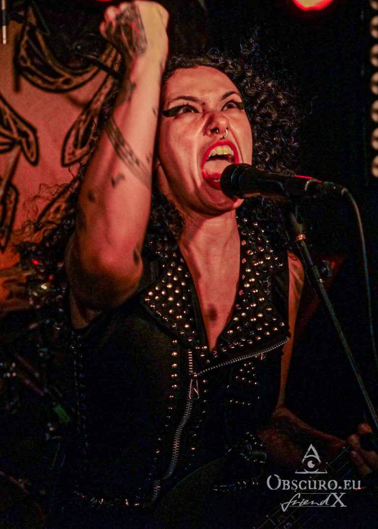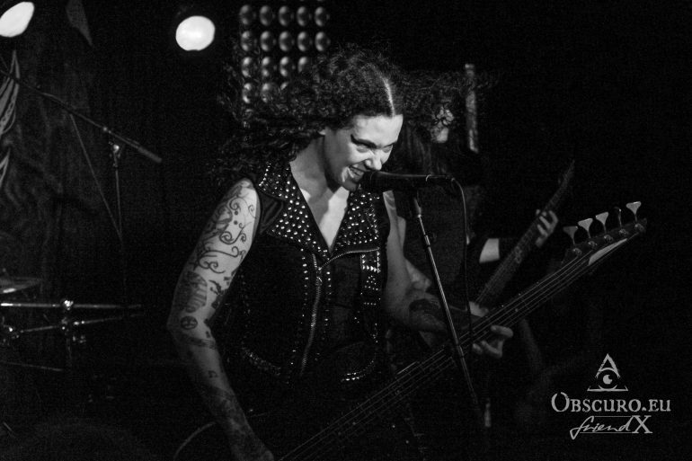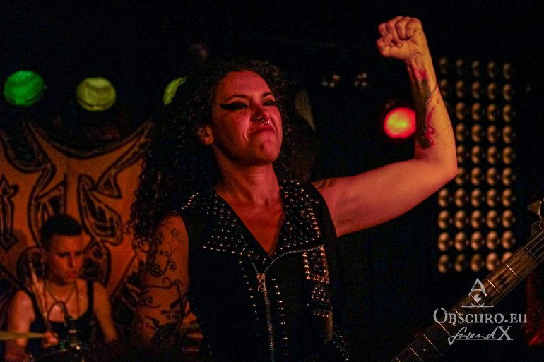 No time for thinking too much about it, we get “Possessed” as soon as Fernanda on vocals and bass follows her bandmates. Her infernal, nearly bickering singing is legendary! She honours “Kali” without forgetting to pose as a true Thrash metalist. Malicious grimaces and a sweet smile at once, that is how we know her and adore her.
