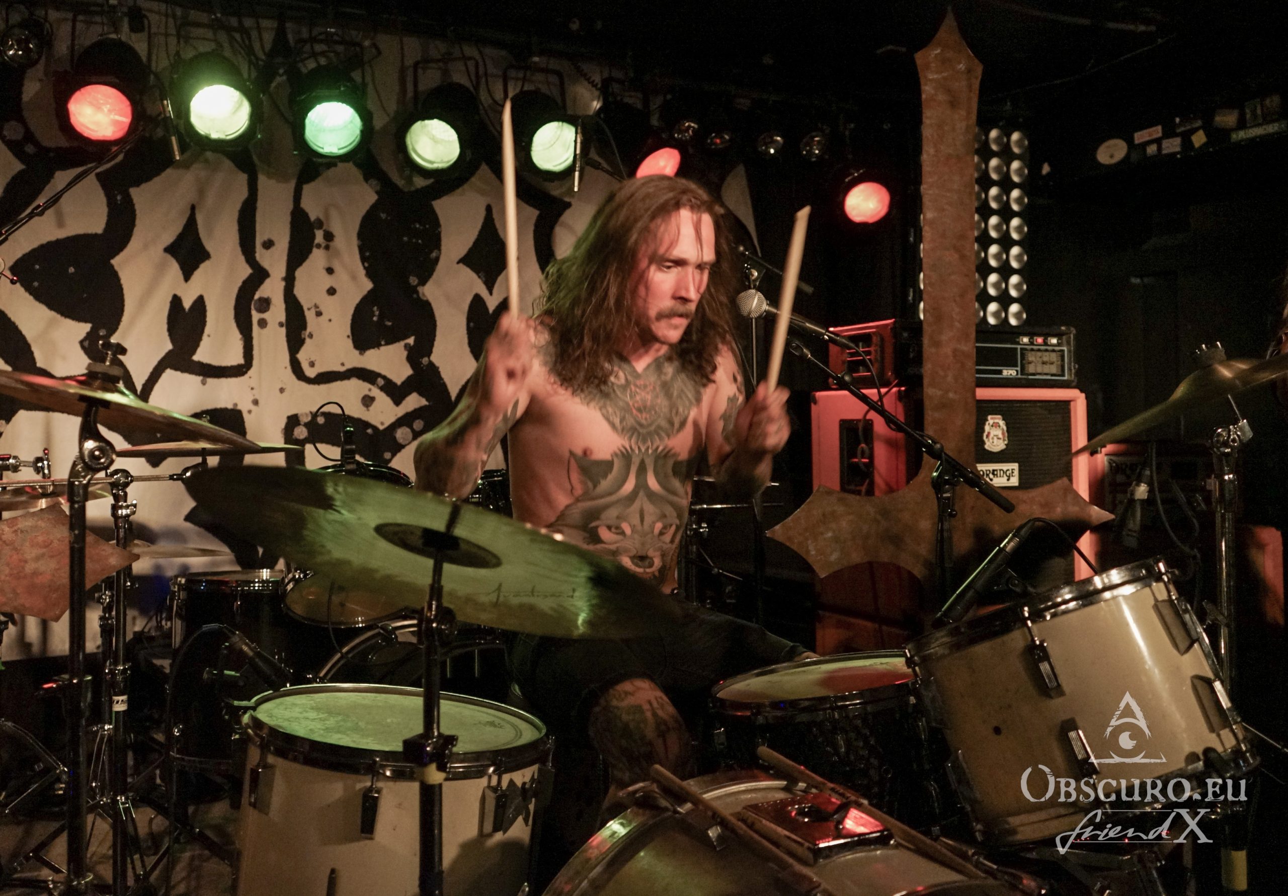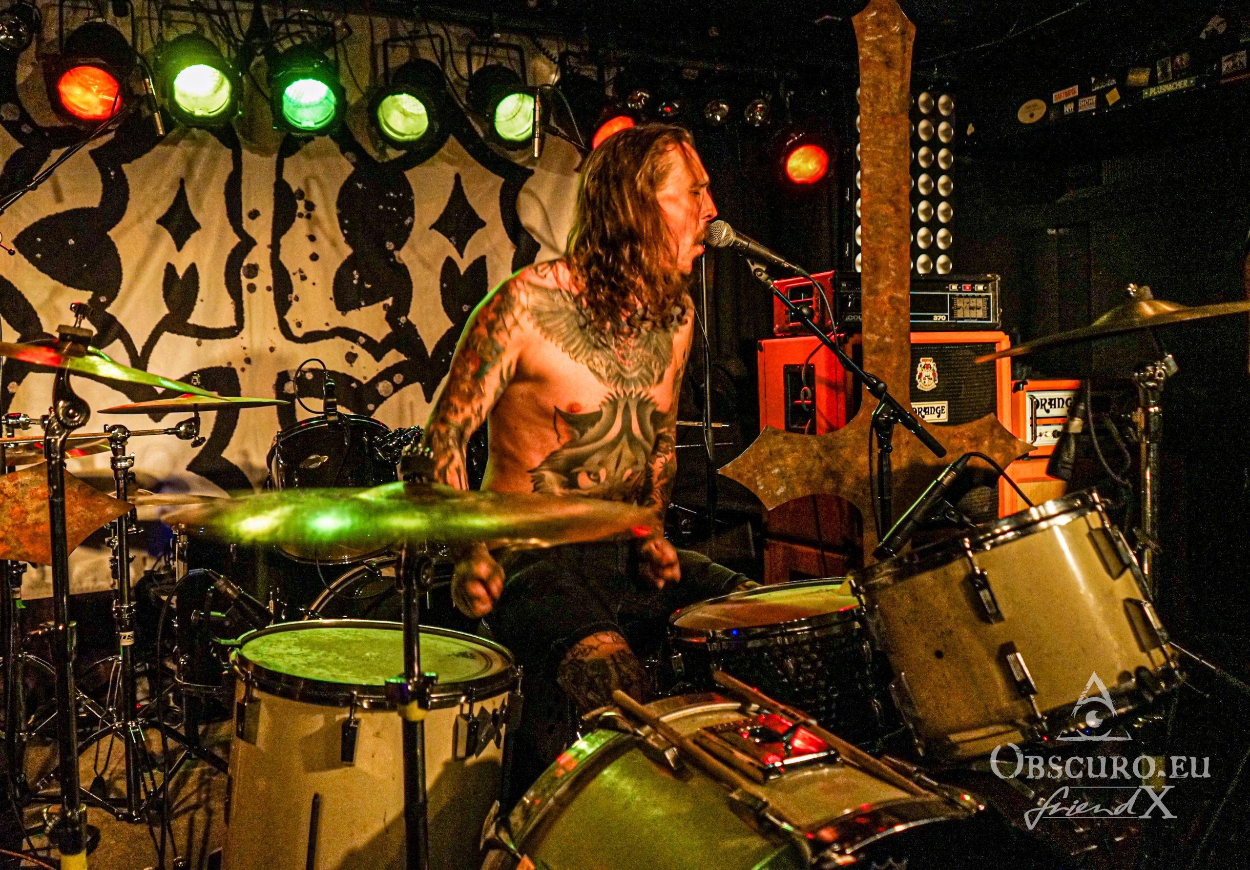 As mentioned above, opener tonight is some Danish dynamite, Katla from Copenhagen. They are three musicians, bass, guitar and drums, the latter being the vocalist. Katla’s very progressive Doom Metal already blows the mind away.