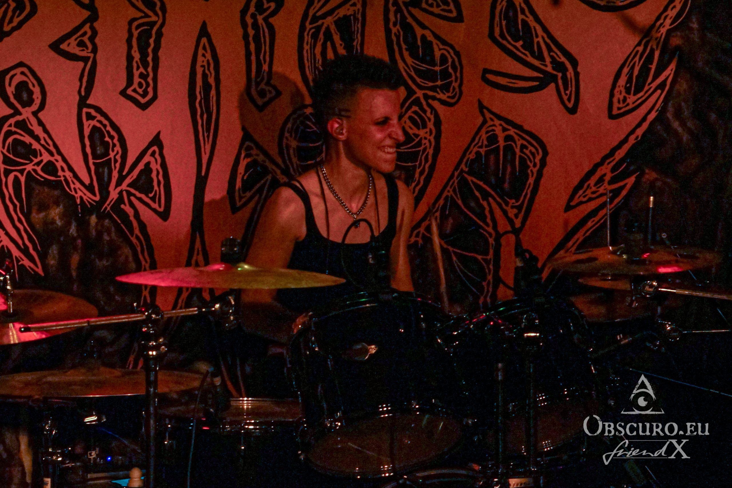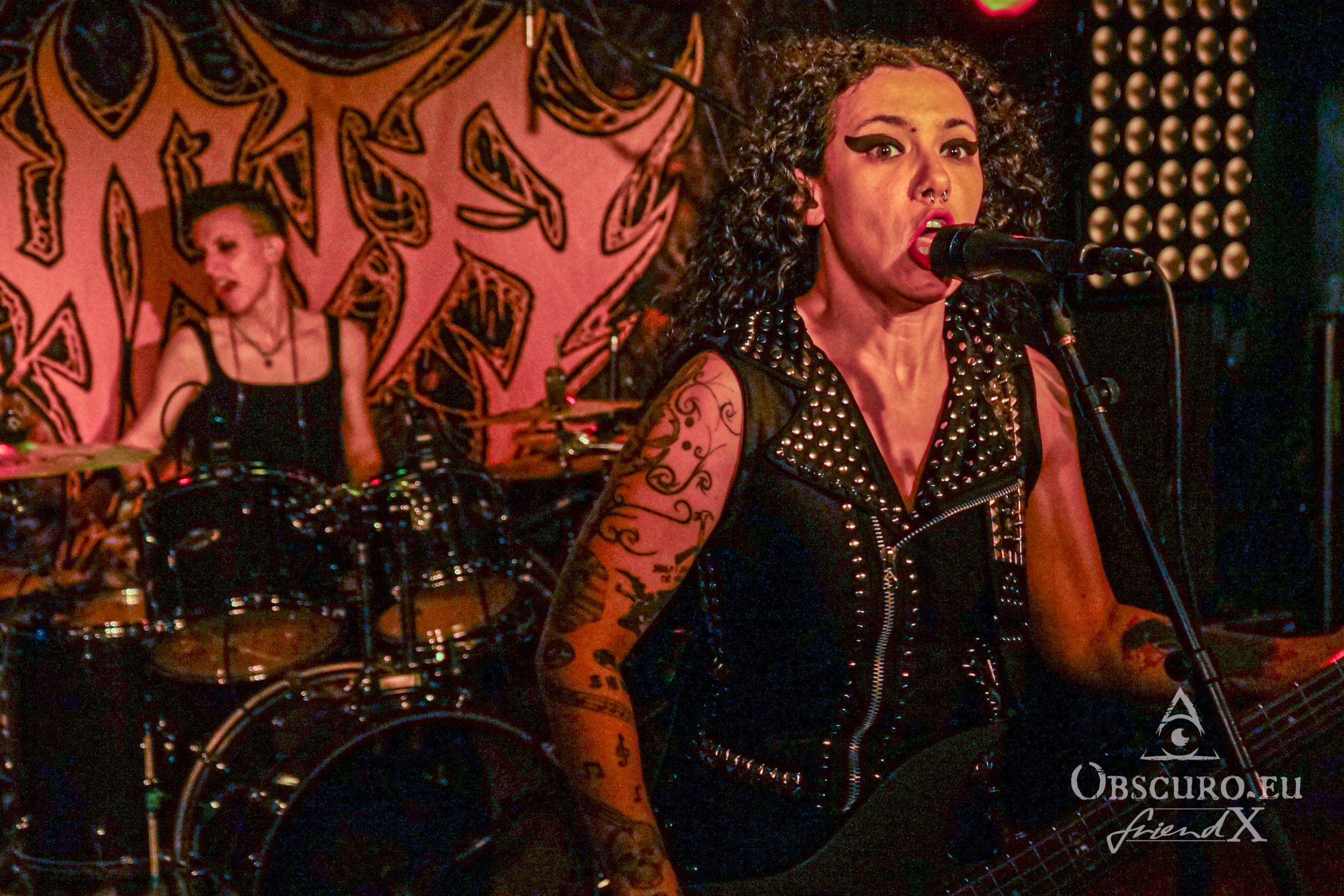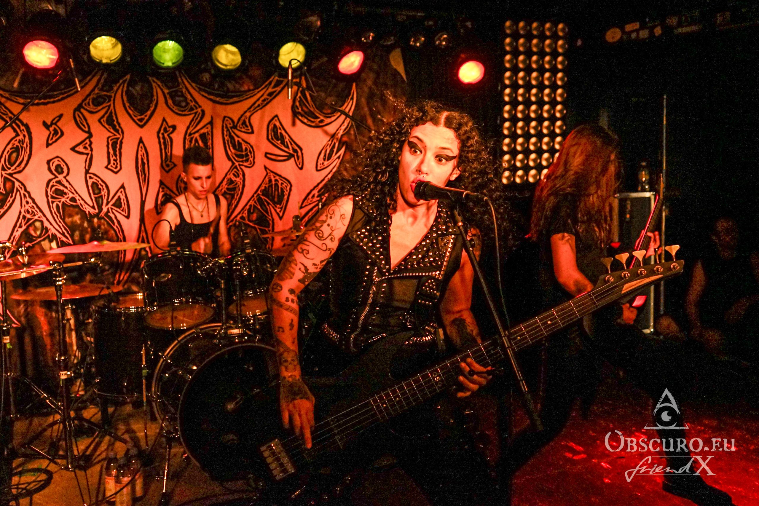 No time for thinking too much about it, we get “Possessed” as soon as Fernanda on vocals and bass follows her bandmates. Her infernal, nearly bickering singing is legendary! She honours “Kali” without forgetting to pose as a true Thrash metalist. Malicious grimaces and a sweet smile at once, that is how we know her and adore her.
