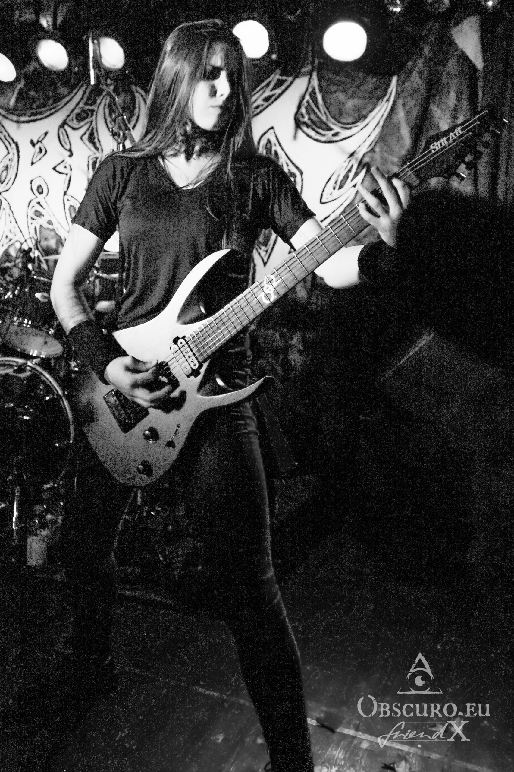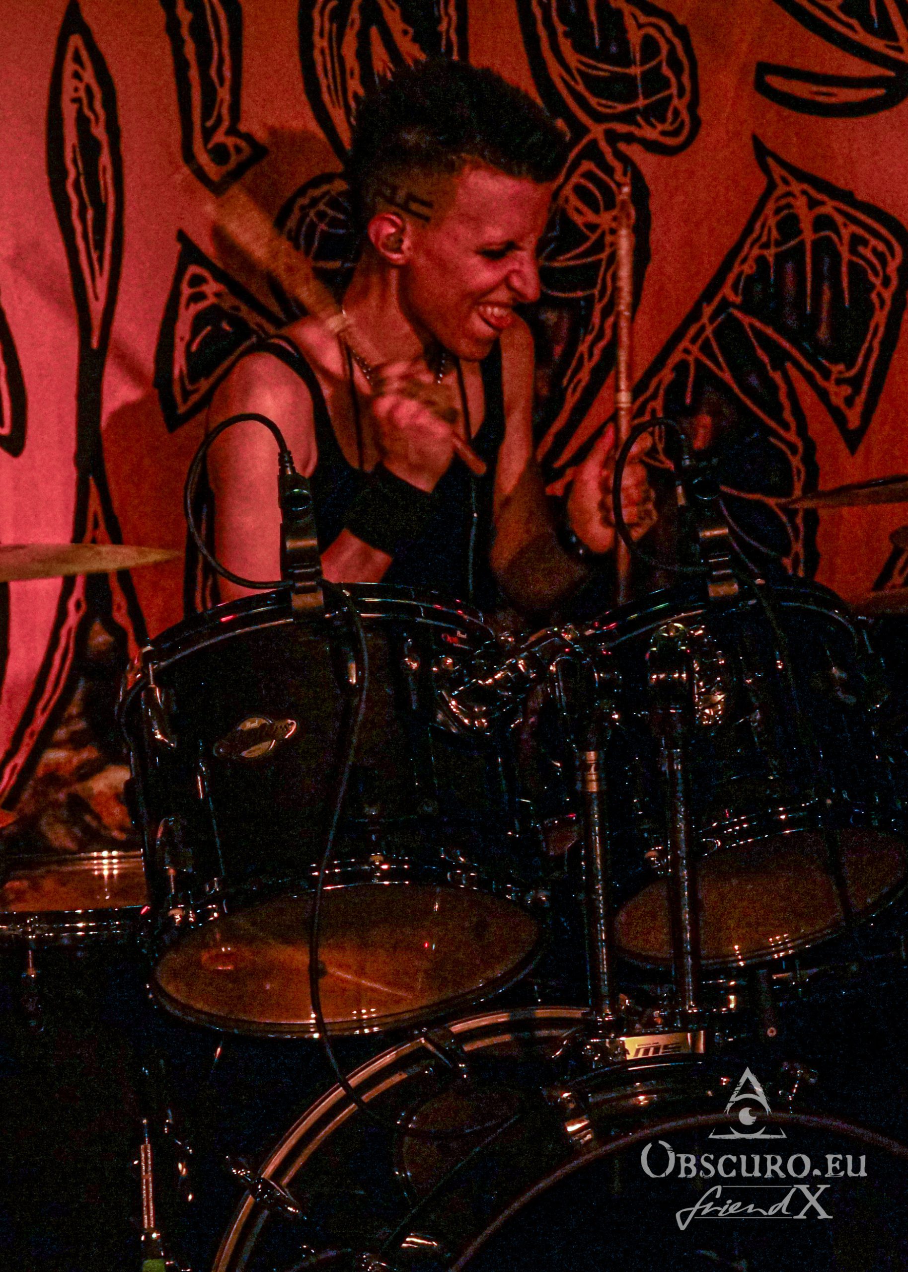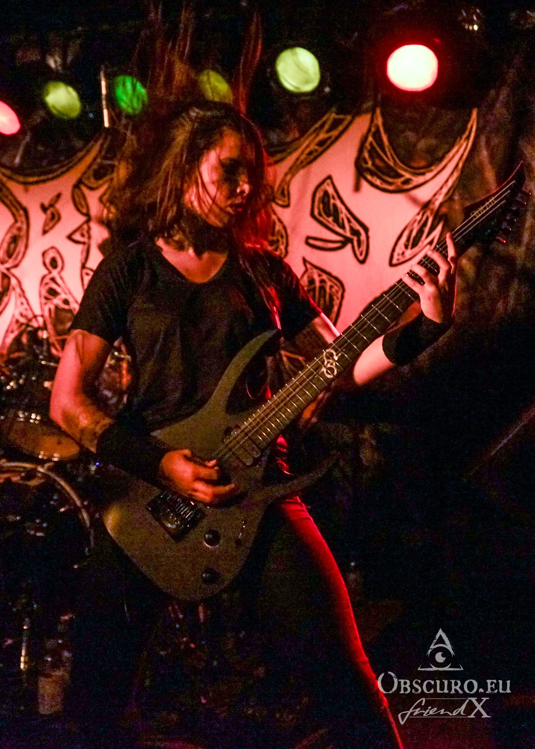 No time for thinking too much about it, we get “Possessed” as soon as Fernanda on vocals and bass follows her bandmates. Her infernal, nearly bickering singing is legendary! She honours “Kali” without forgetting to pose as a true Thrash metalist. Malicious grimaces and a sweet smile at once, that is how we know her and adore her.