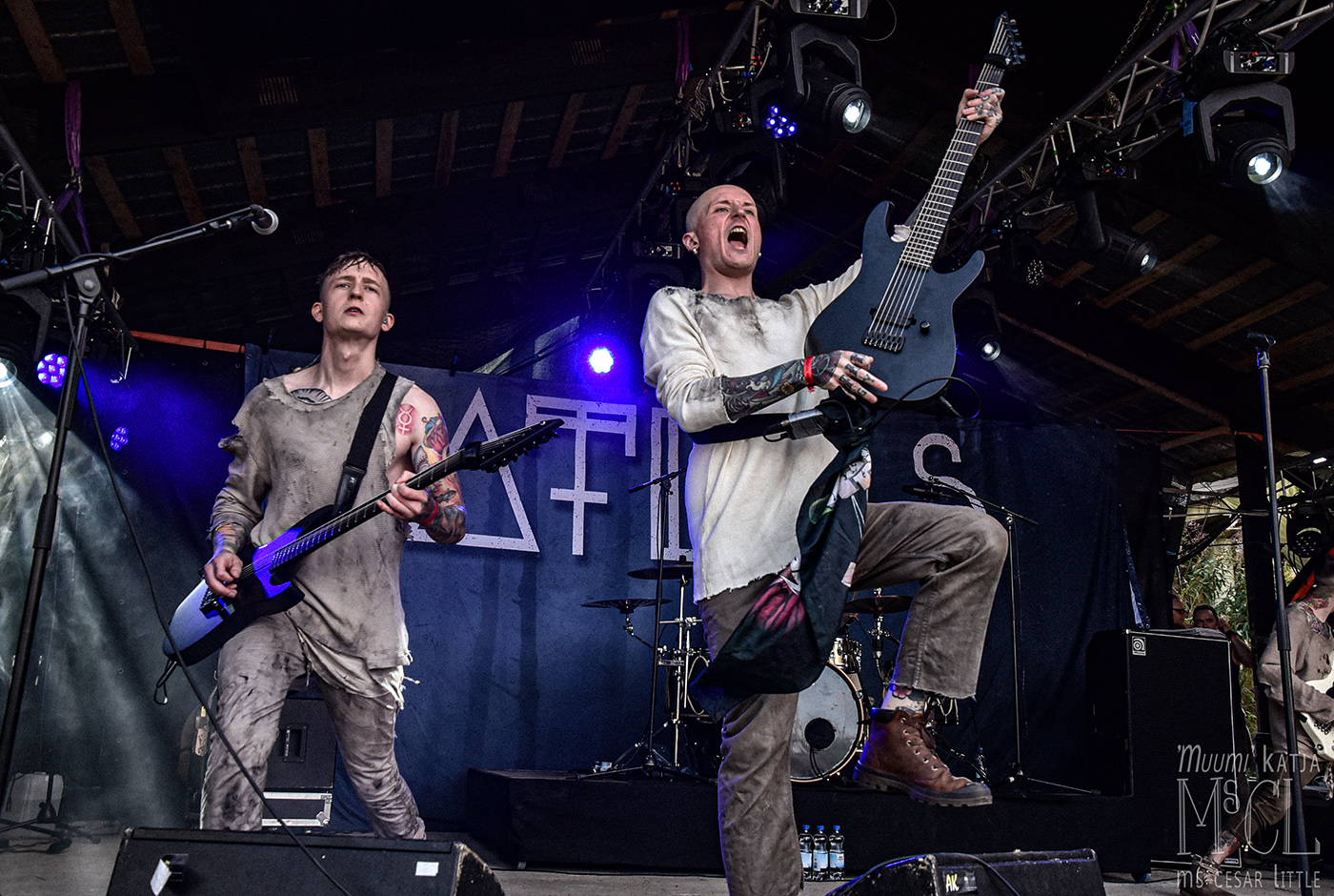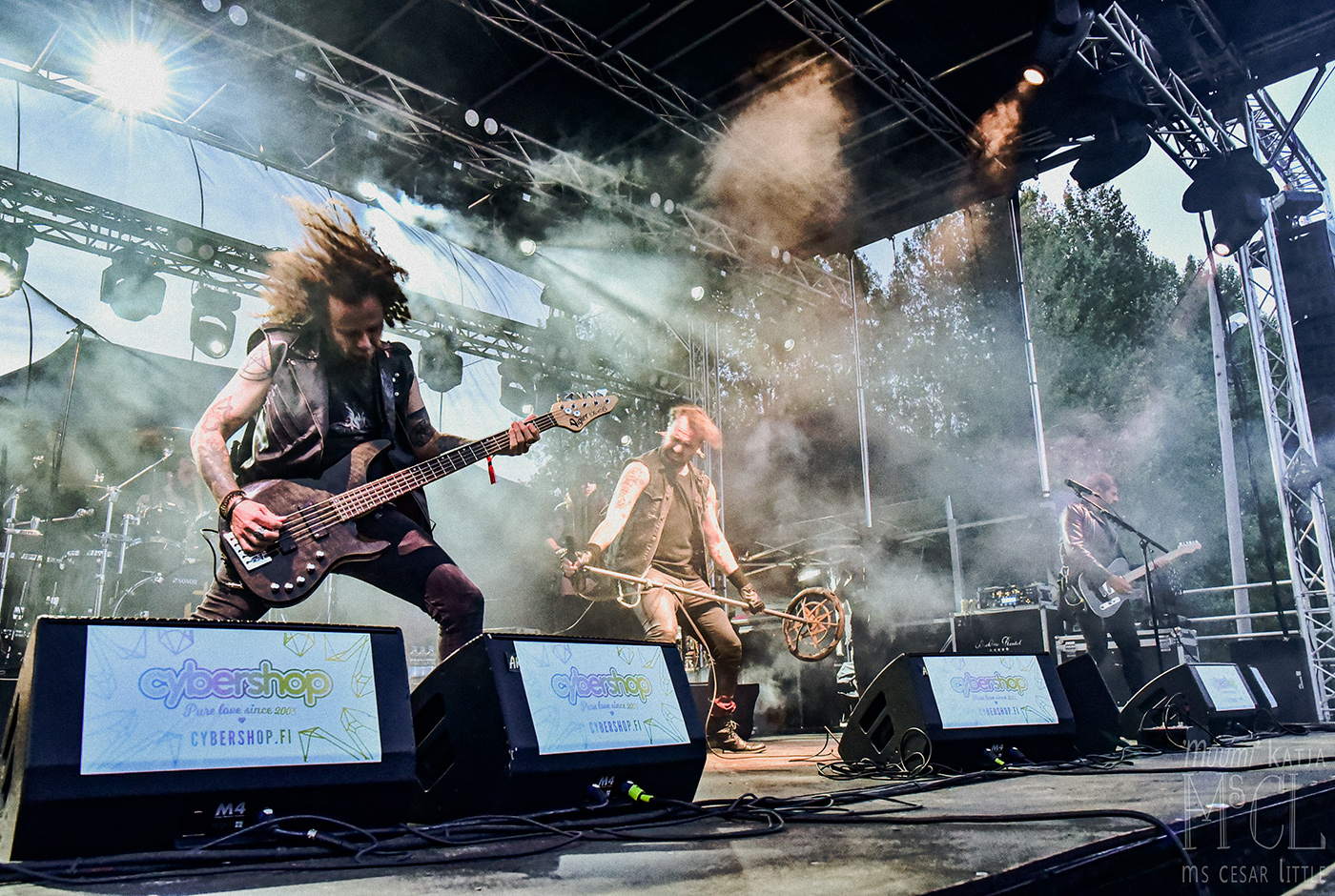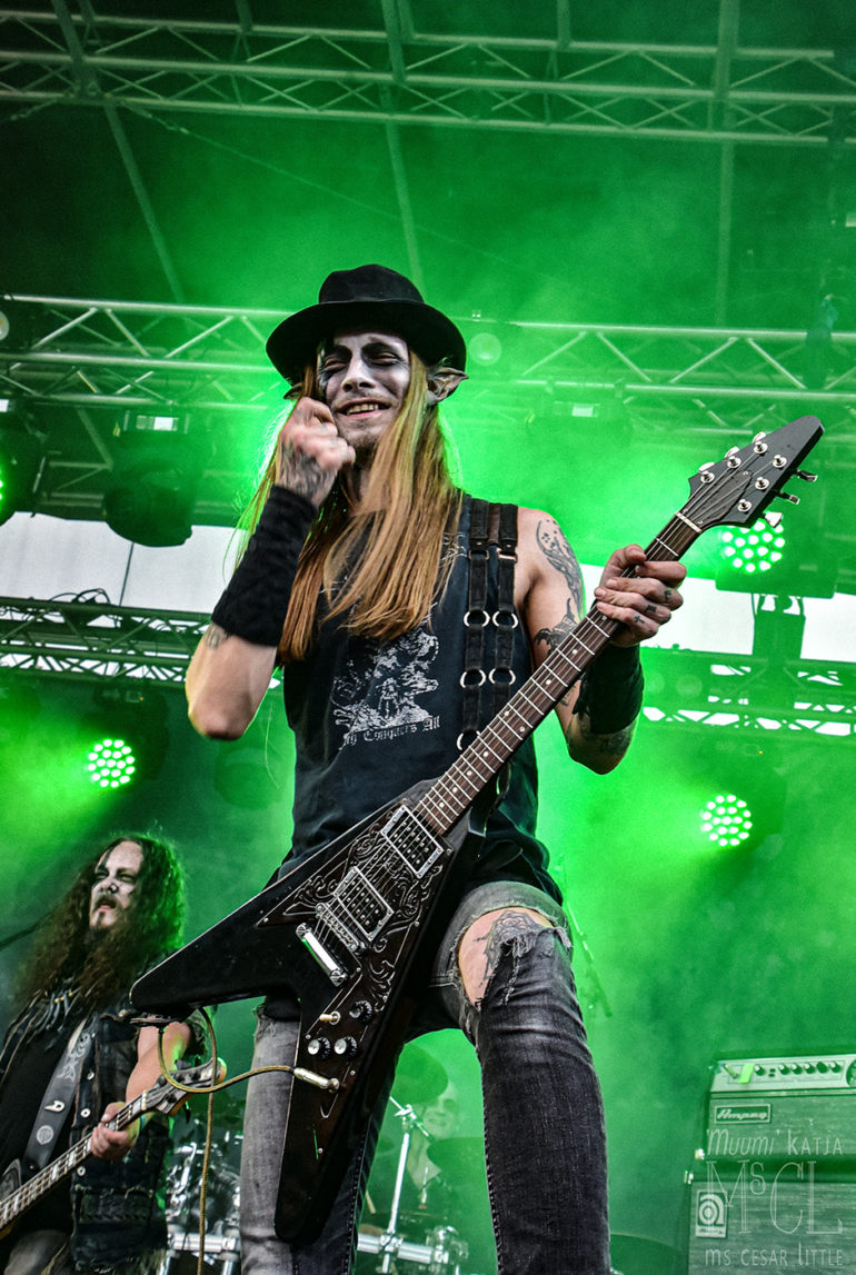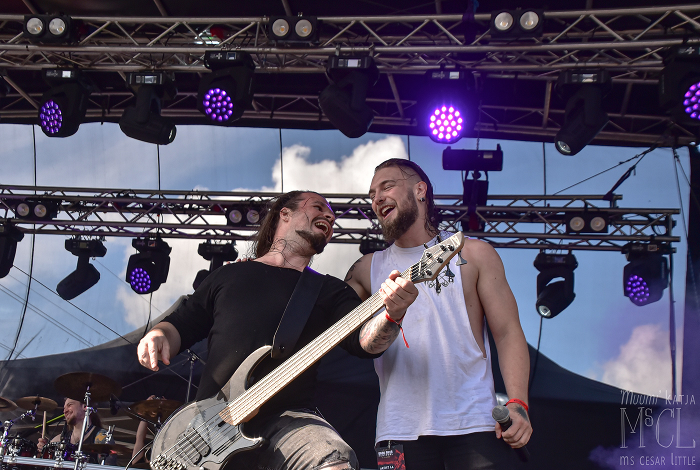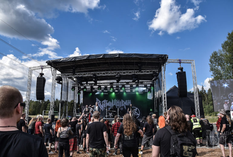 Saturday noon, the forecast promised rain. Quite a lot actually, but it fails us. What a heavy burden to us, the musicians, the crew, and the crowd to celebrate another festival day in fair weather?! Horizont Ignited from Kotka kick off at the second stage, finding a remarkable crowd before them. The diverse vocal range of their frontman, Okko Solanterä, is a more than pleasant surprise not only to me but to those who were not familiar with it. Arion open the main stage, delivering an energetic show, succeeded by Atlas Northcore. The guys from Tampere are setting a more progressive and somewhat theatrical highlight with their sort of burial garment and distorted soundscapes. When Mors Subita from Oulu rock the main stage, the crowd can’t be tamed any longer: the show and the music demand a pit. There is no way around! The band feasts on the crowd’s enthusiasm. For once, the air is burning.