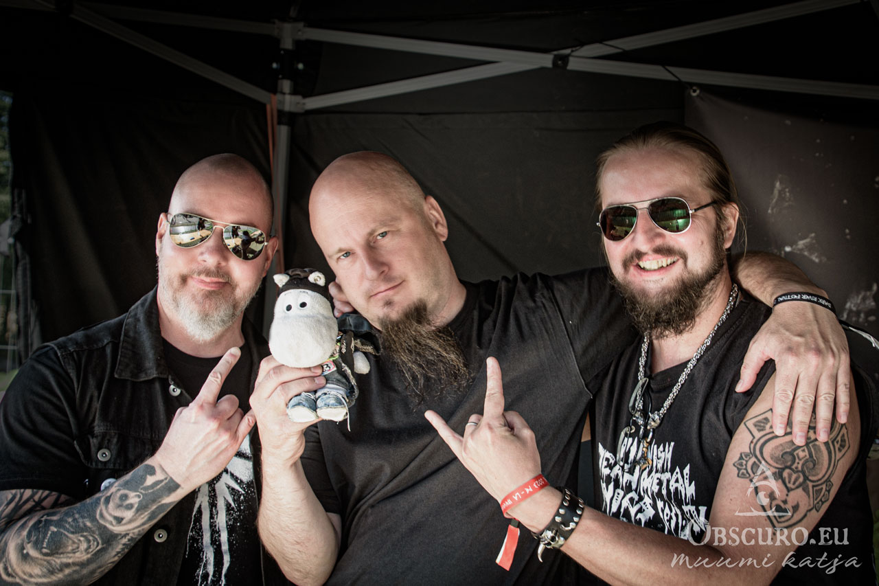I met Niko, Mikko, and Jyrki in the noisy guts of the Dark River Festival in summer 2023. They attend the festival as visitors. We sit in an open tent in between the merch area as soundchecks and gigs proceed. They are a thrilled, but the setting of our meeting – their favourite festival – easily breaks the ice. However, we need to shout to each other and still find it hard to understand each other. Due to the noise and to get Tommy and Kimmo in, we discussed some questions texting later.