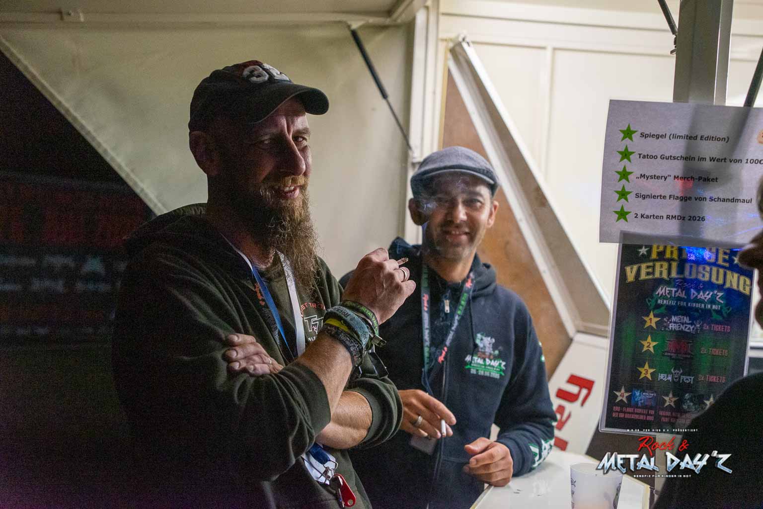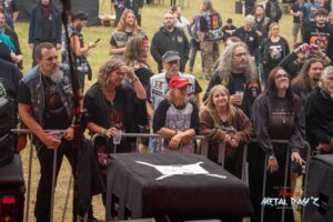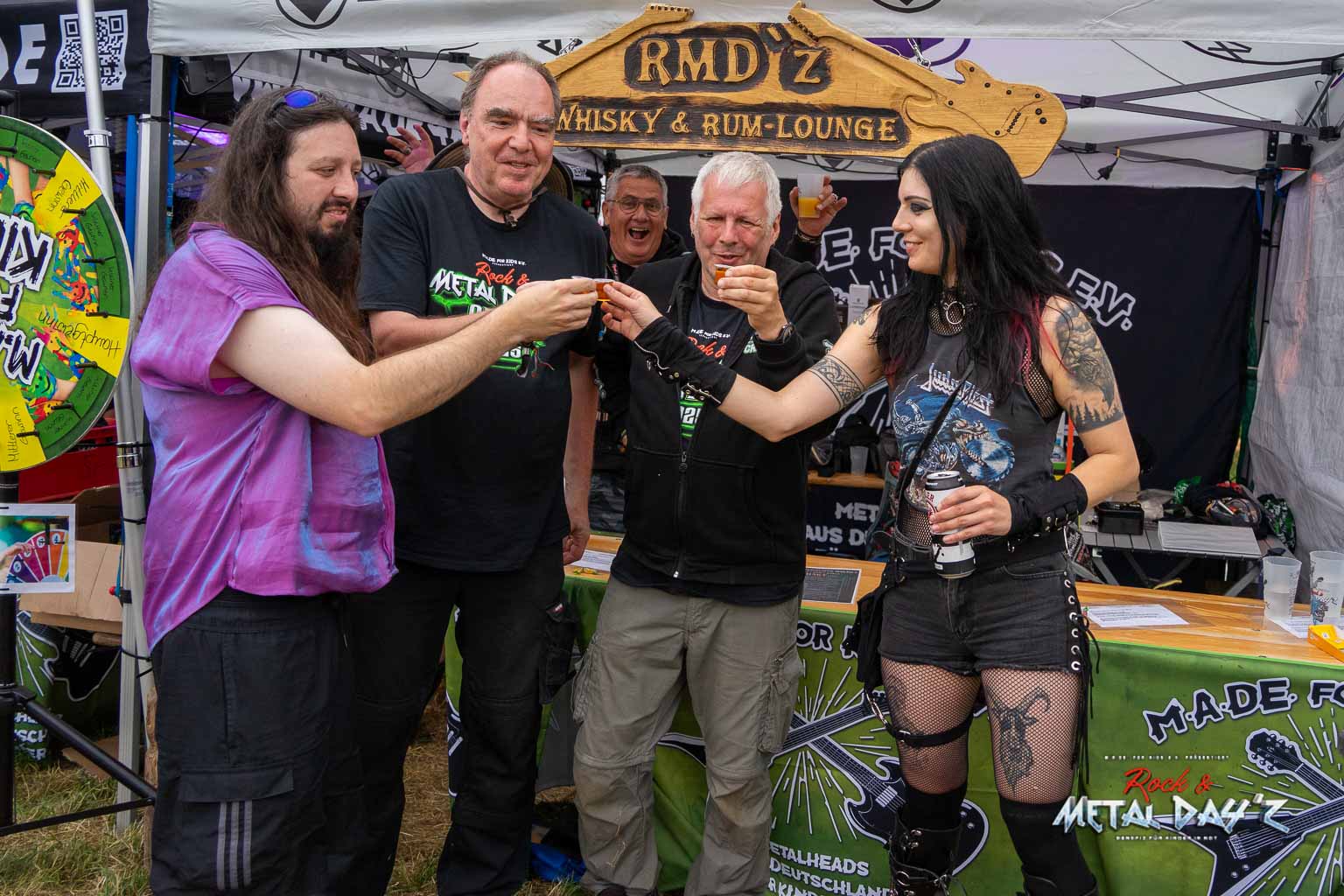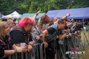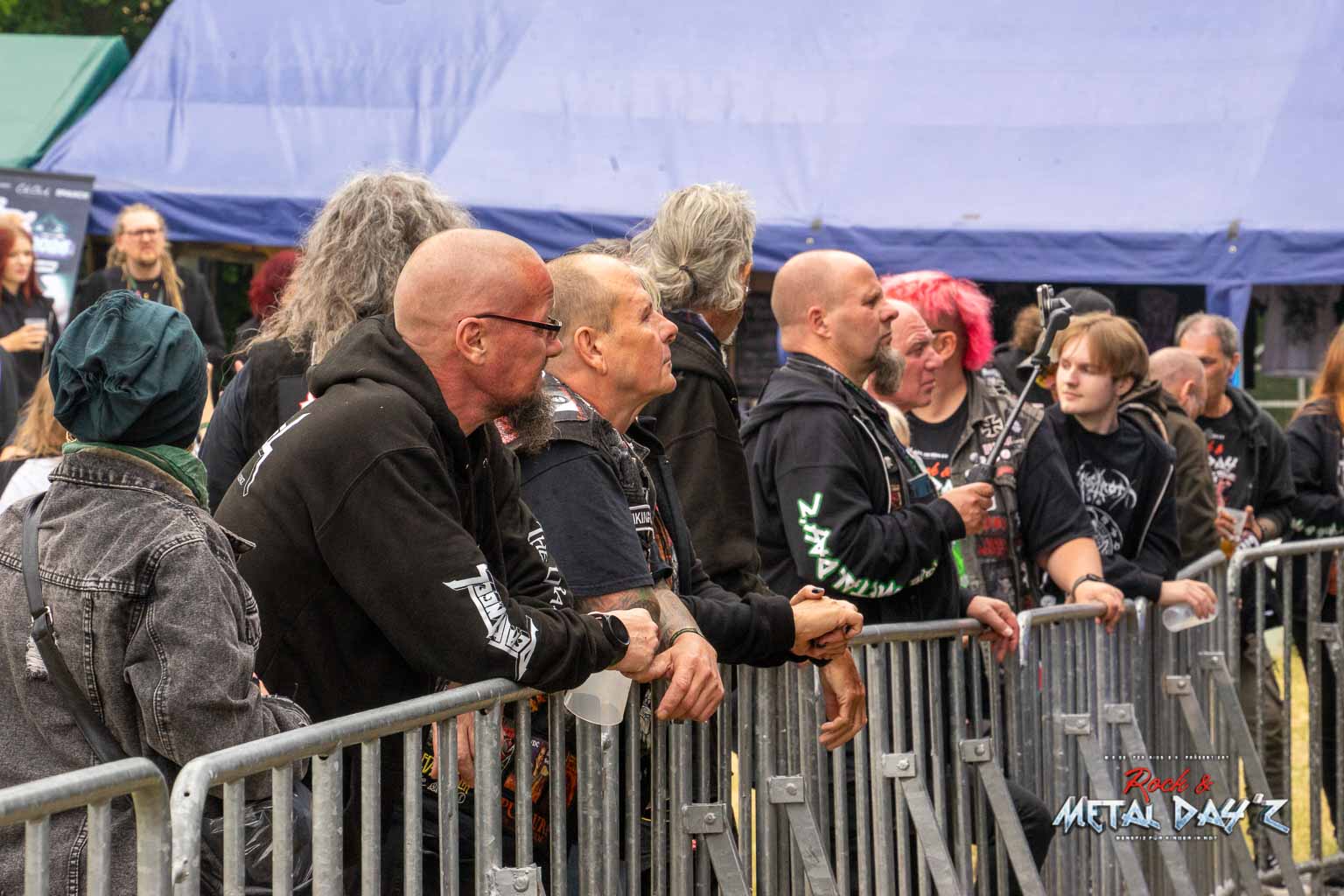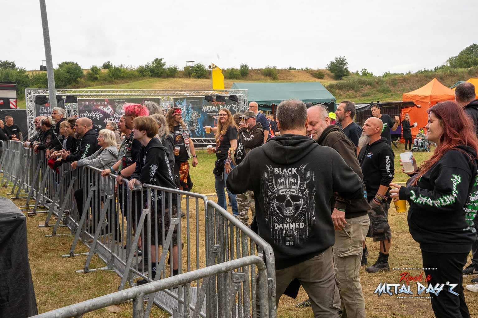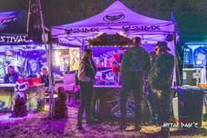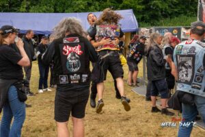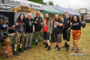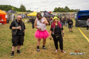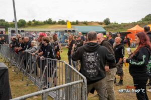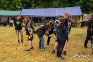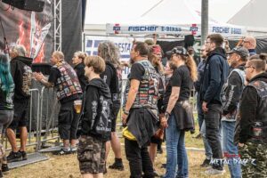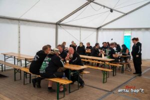 Bevor das Infield offiziell öffnet besteht ab 9:00 die Möglichkeit, dort ein warmes oder kaltes Frühstück einzunehmen, was durchaus auch genutzt wird, die Preise sind ja zivil genug, sodass sich für viele das Selbstzubereiten gar nicht rentiert. Bis die erste Band spielt, ist genügend Zeit, sich das neue, kuschelige Gelände genauer anzuschauen, einen Blick auf die Merchstände zu werfen, Tombollalose zu kaufen, am Glücksrad zu drehen oder die Getränkestände zu besuchen, wenn man sich nicht auf den Camp Ground zurückziehen möchte. Wenn man Glück hat, erheischt man auch einen Blick auf die eintreffenden Bands, die von ihren persönlichen Betreuern über das Gelände geführt werden und durchaus entwickelt sich daraus dann ein kleines Gespräch. Das ist der Vorteil der kleineren Festivals, als Gast ist man viel näher an den Bands dran und natürlich auch umgekehrt, nur wer es unbedingt will, schirmt sich ab und bleibt im Backstagebereich unter sich, aber das sind die wenigsten.