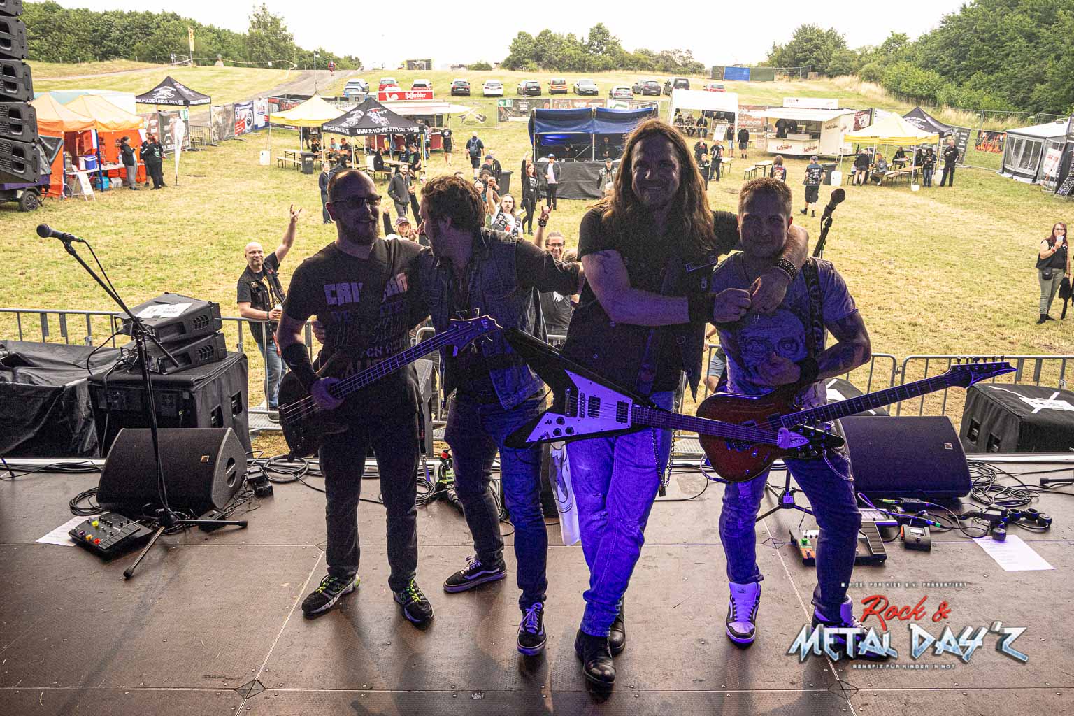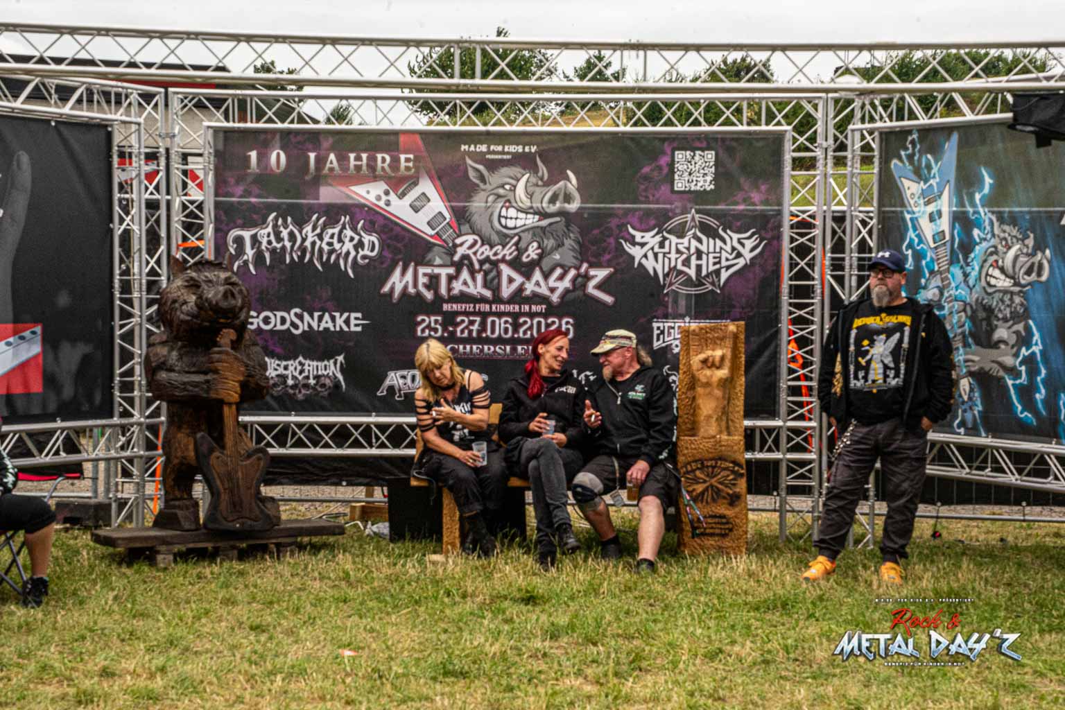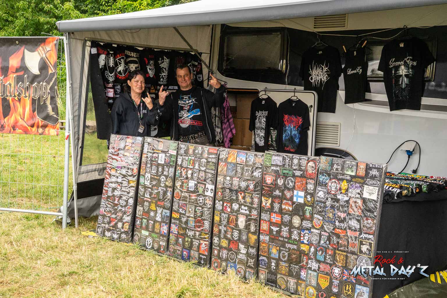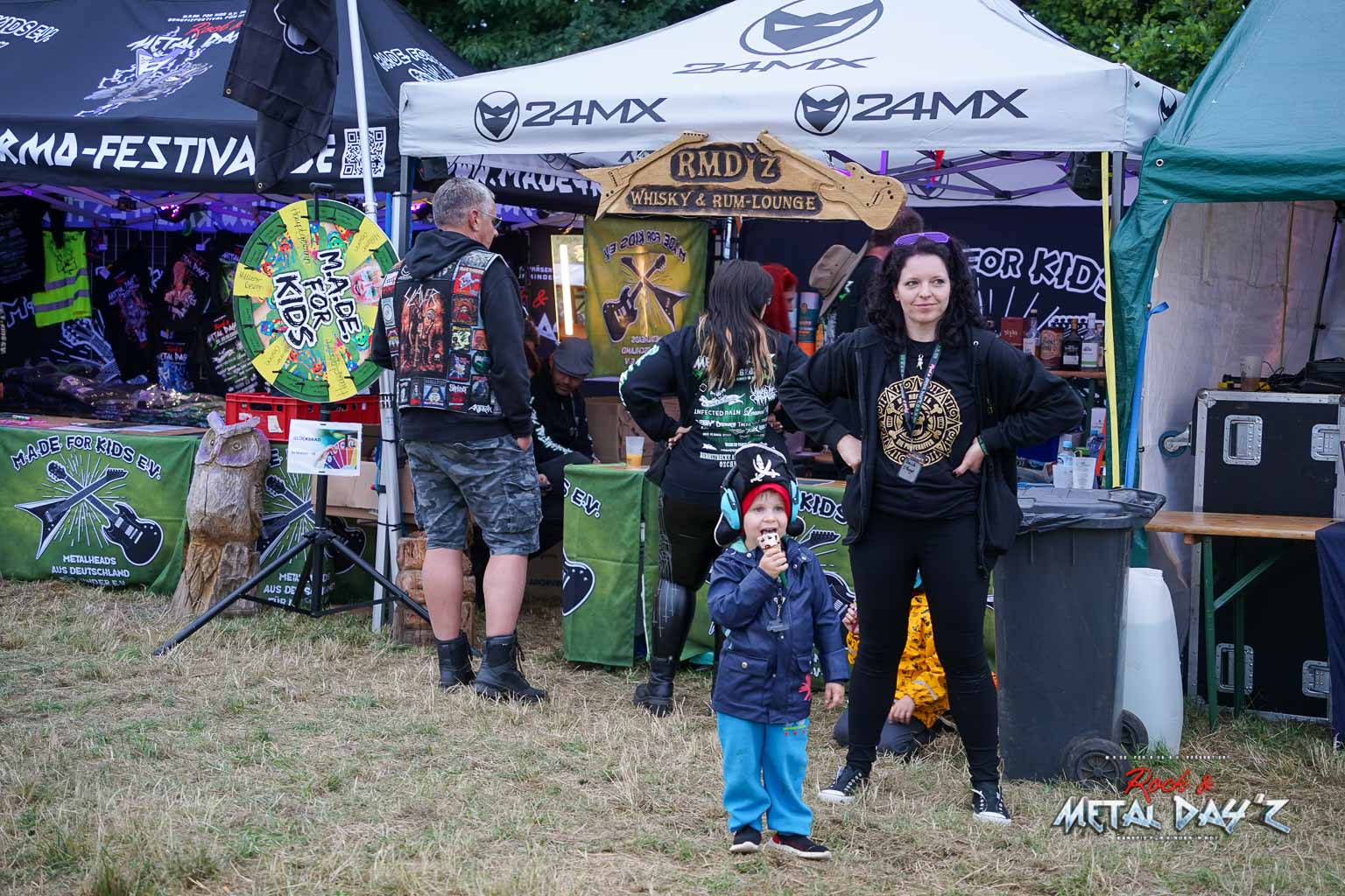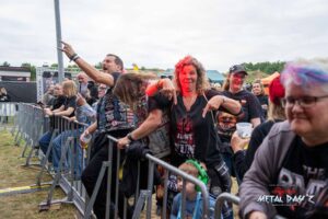 Bevor das Infield offiziell öffnet besteht ab 9:00 die Möglichkeit, dort ein warmes oder kaltes Frühstück einzunehmen, was durchaus auch genutzt wird, die Preise sind ja zivil genug, sodass sich für viele das Selbstzubereiten gar nicht rentiert. Bis die erste Band spielt, ist genügend Zeit, sich das neue, kuschelige Gelände genauer anzuschauen, einen Blick auf die Merchstände zu werfen, Tombollalose zu kaufen, am Glücksrad zu drehen oder die Getränkestände zu besuchen, wenn man sich nicht auf den Camp Ground zurückziehen möchte. Wenn man Glück hat, erheischt man auch einen Blick auf die eintreffenden Bands, die von ihren persönlichen Betreuern über das Gelände geführt werden und durchaus entwickelt sich daraus dann ein kleines Gespräch. Das ist der Vorteil der kleineren Festivals, als Gast ist man viel näher an den Bands dran und natürlich auch umgekehrt, nur wer es unbedingt will, schirmt sich ab und bleibt im Backstagebereich unter sich, aber das sind die wenigsten.