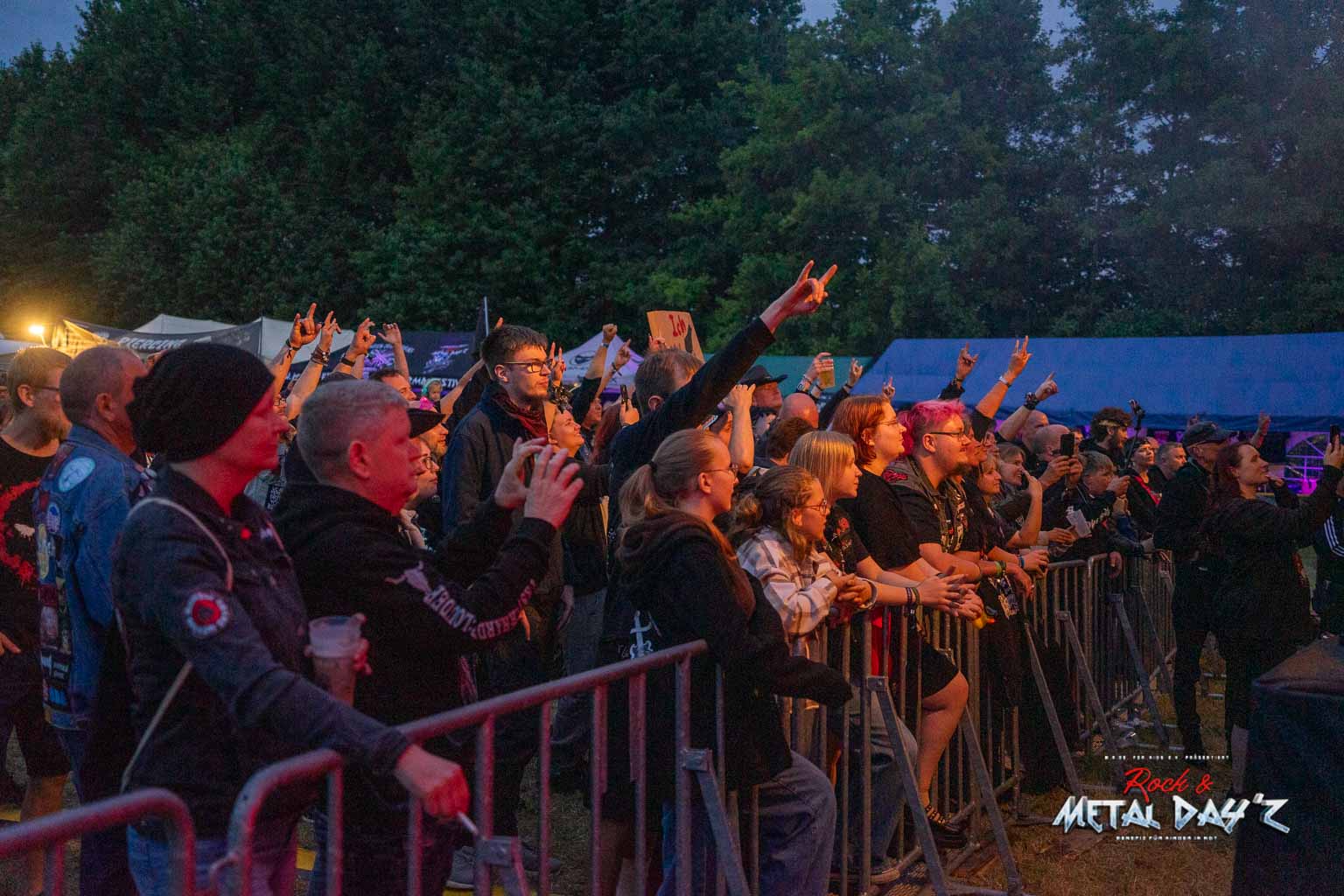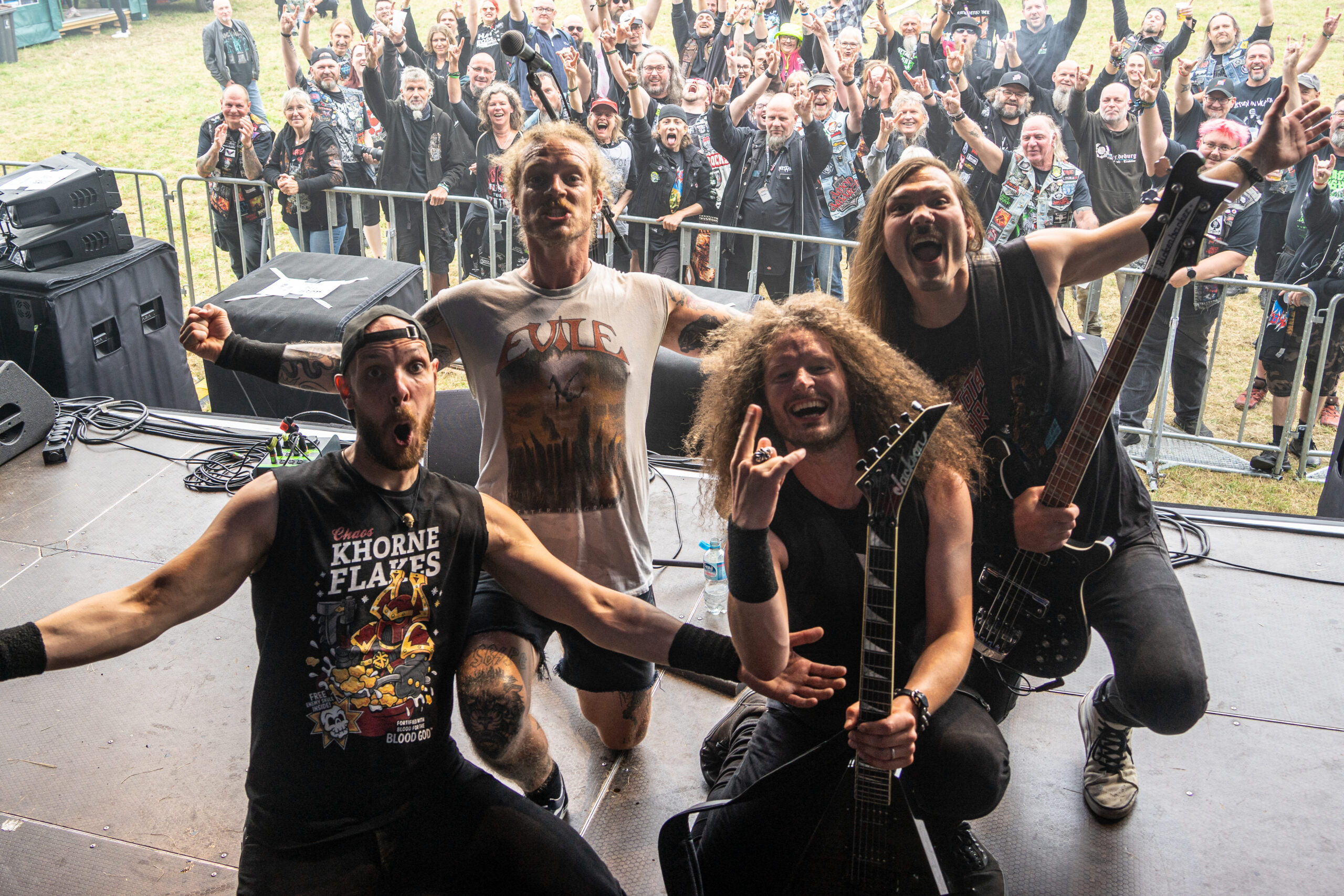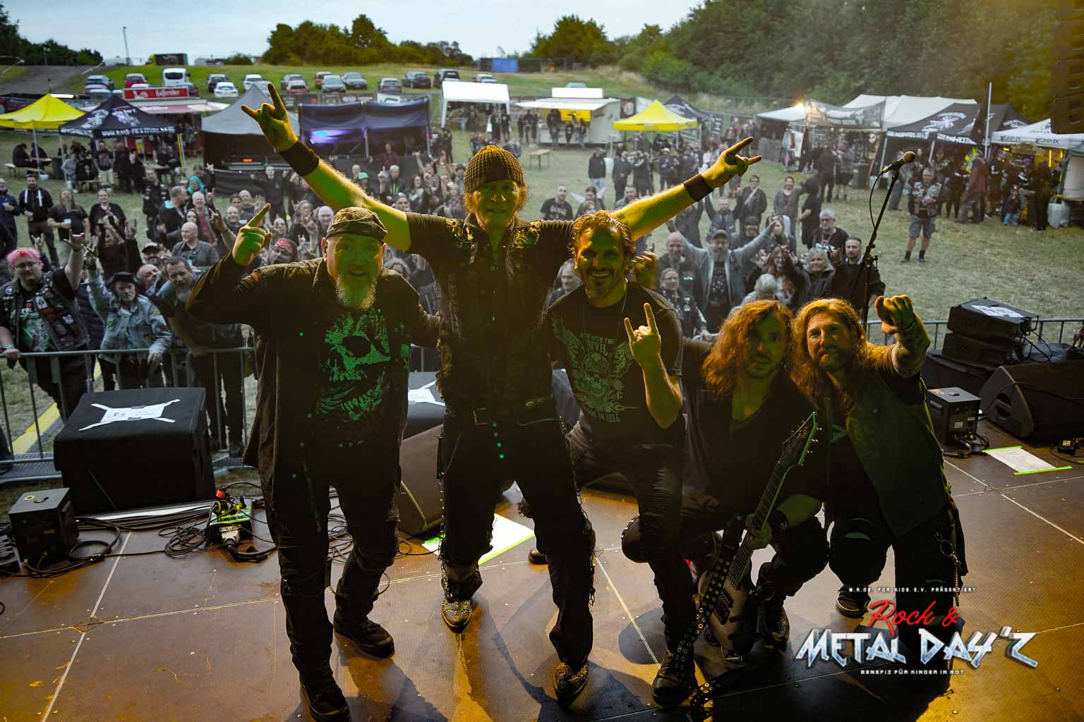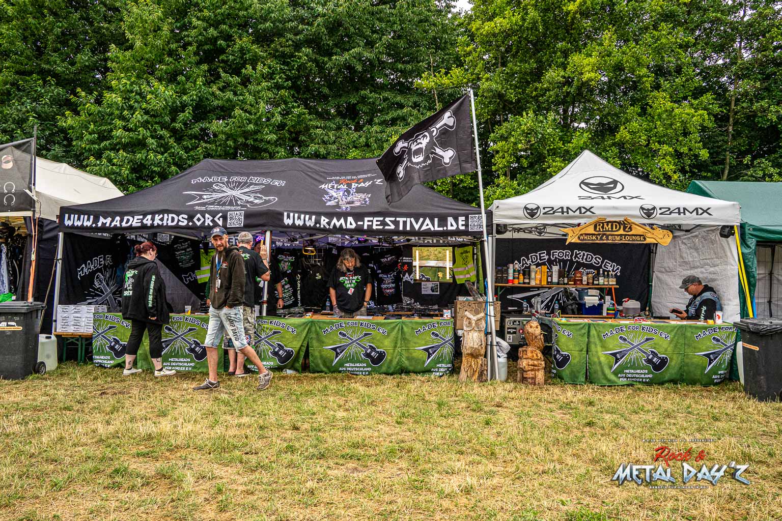 Bevor das Infield offiziell öffnet besteht ab 9:00 die Möglichkeit, dort ein warmes oder kaltes Frühstück einzunehmen, was durchaus auch genutzt wird, die Preise sind ja zivil genug, sodass sich für viele das Selbstzubereiten gar nicht rentiert. Bis die erste Band spielt, ist genügend Zeit, sich das neue, kuschelige Gelände genauer anzuschauen, einen Blick auf die Merchstände zu werfen, Tombollalose zu kaufen, am Glücksrad zu drehen oder die Getränkestände zu besuchen, wenn man sich nicht auf den Camp Ground zurückziehen möchte. Wenn man Glück hat, erheischt man auch einen Blick auf die eintreffenden Bands, die von ihren persönlichen Betreuern über das Gelände geführt werden und durchaus entwickelt sich daraus dann ein kleines Gespräch. Das ist der Vorteil der kleineren Festivals, als Gast ist man viel näher an den Bands dran und natürlich auch umgekehrt, nur wer es unbedingt will, schirmt sich ab und bleibt im Backstagebereich unter sich, aber das sind die wenigsten.