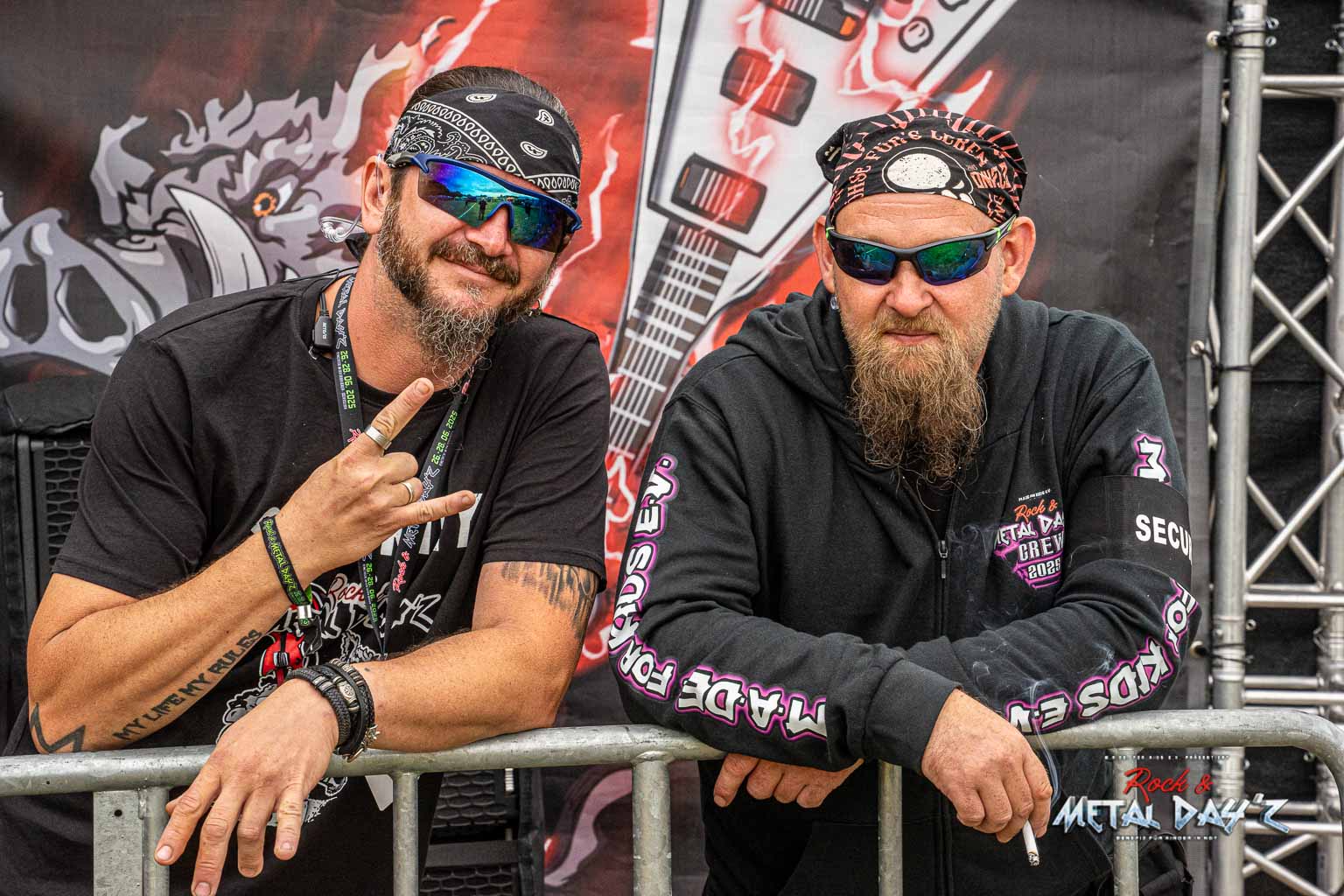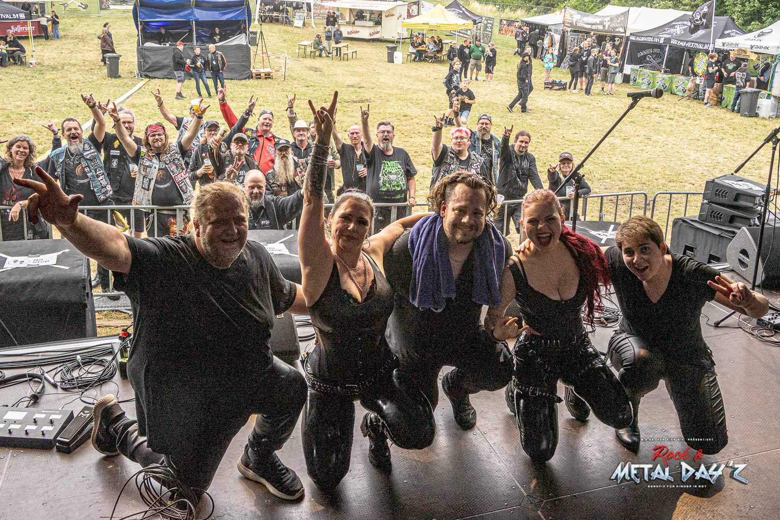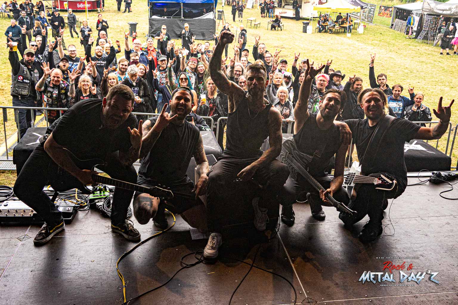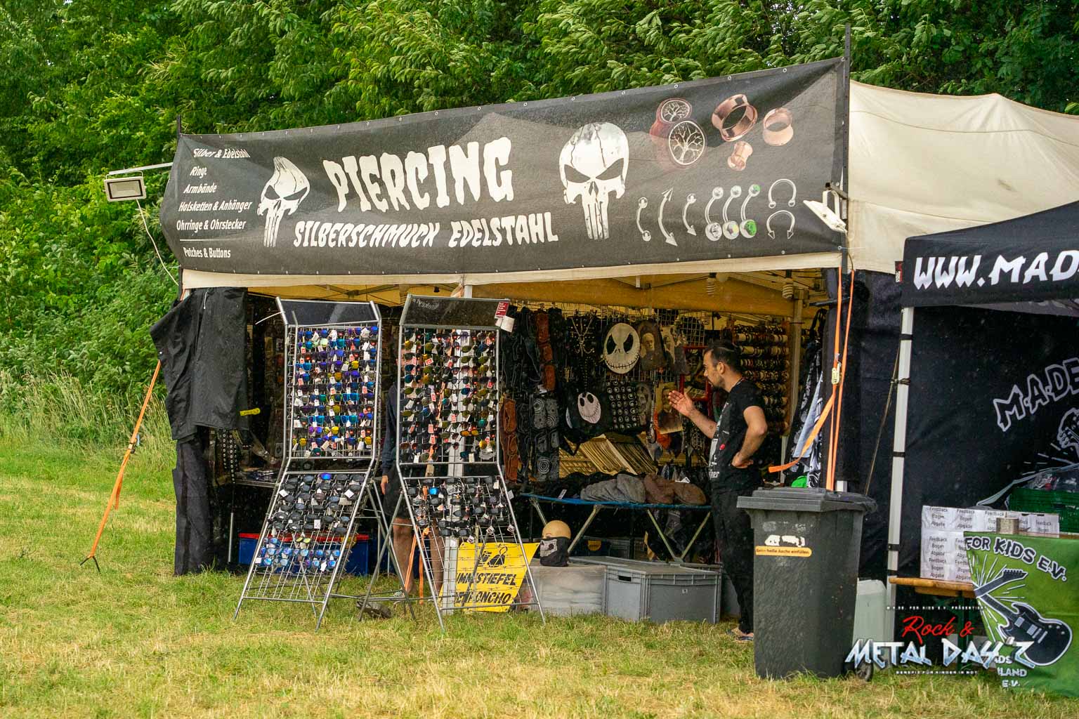 Bevor das Infield offiziell öffnet besteht ab 9:00 die Möglichkeit, dort ein warmes oder kaltes Frühstück einzunehmen, was durchaus auch genutzt wird, die Preise sind ja zivil genug, sodass sich für viele das Selbstzubereiten gar nicht rentiert. Bis die erste Band spielt, ist genügend Zeit, sich das neue, kuschelige Gelände genauer anzuschauen, einen Blick auf die Merchstände zu werfen, Tombollalose zu kaufen, am Glücksrad zu drehen oder die Getränkestände zu besuchen, wenn man sich nicht auf den Camp Ground zurückziehen möchte. Wenn man Glück hat, erheischt man auch einen Blick auf die eintreffenden Bands, die von ihren persönlichen Betreuern über das Gelände geführt werden und durchaus entwickelt sich daraus dann ein kleines Gespräch. Das ist der Vorteil der kleineren Festivals, als Gast ist man viel näher an den Bands dran und natürlich auch umgekehrt, nur wer es unbedingt will, schirmt sich ab und bleibt im Backstagebereich unter sich, aber das sind die wenigsten.