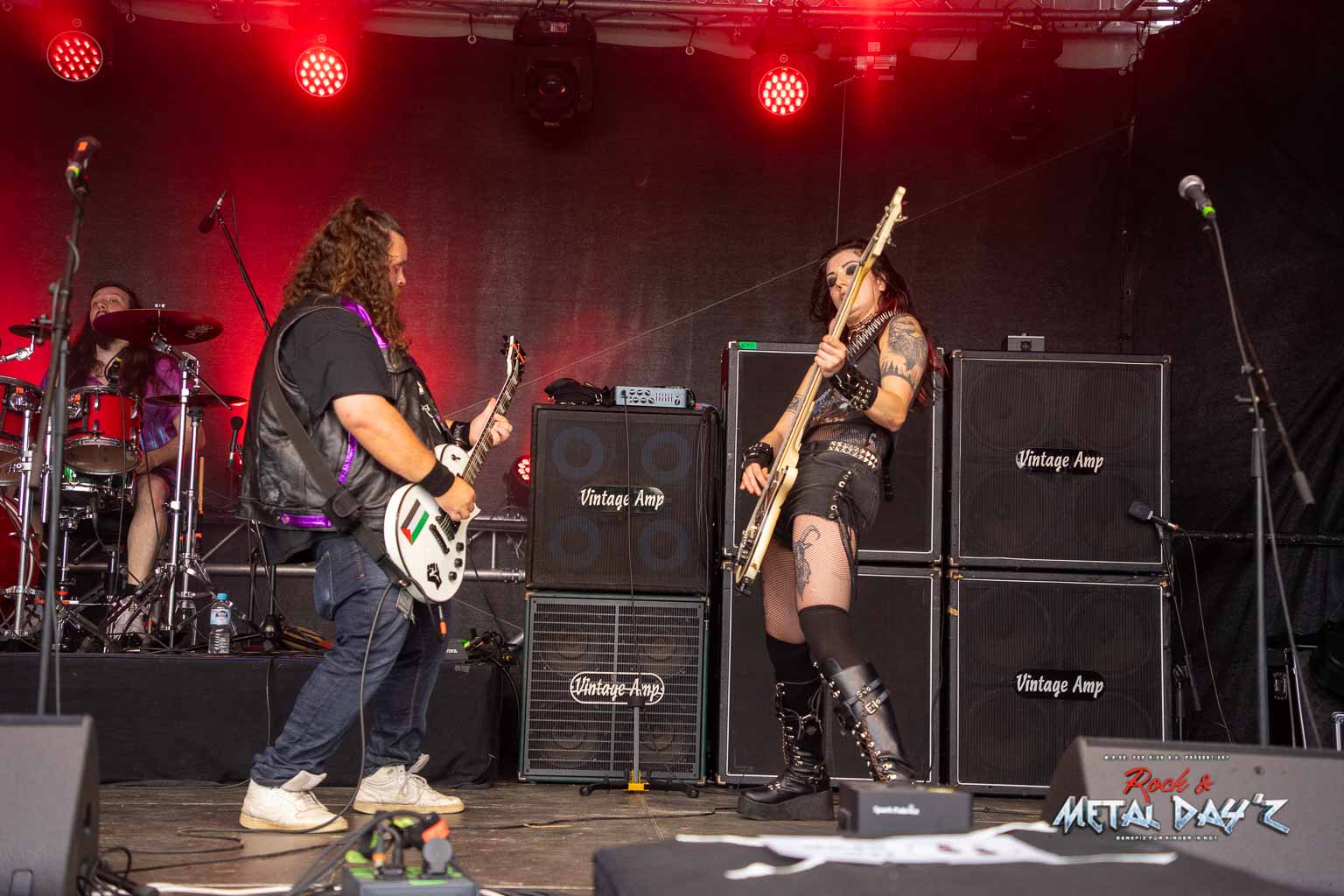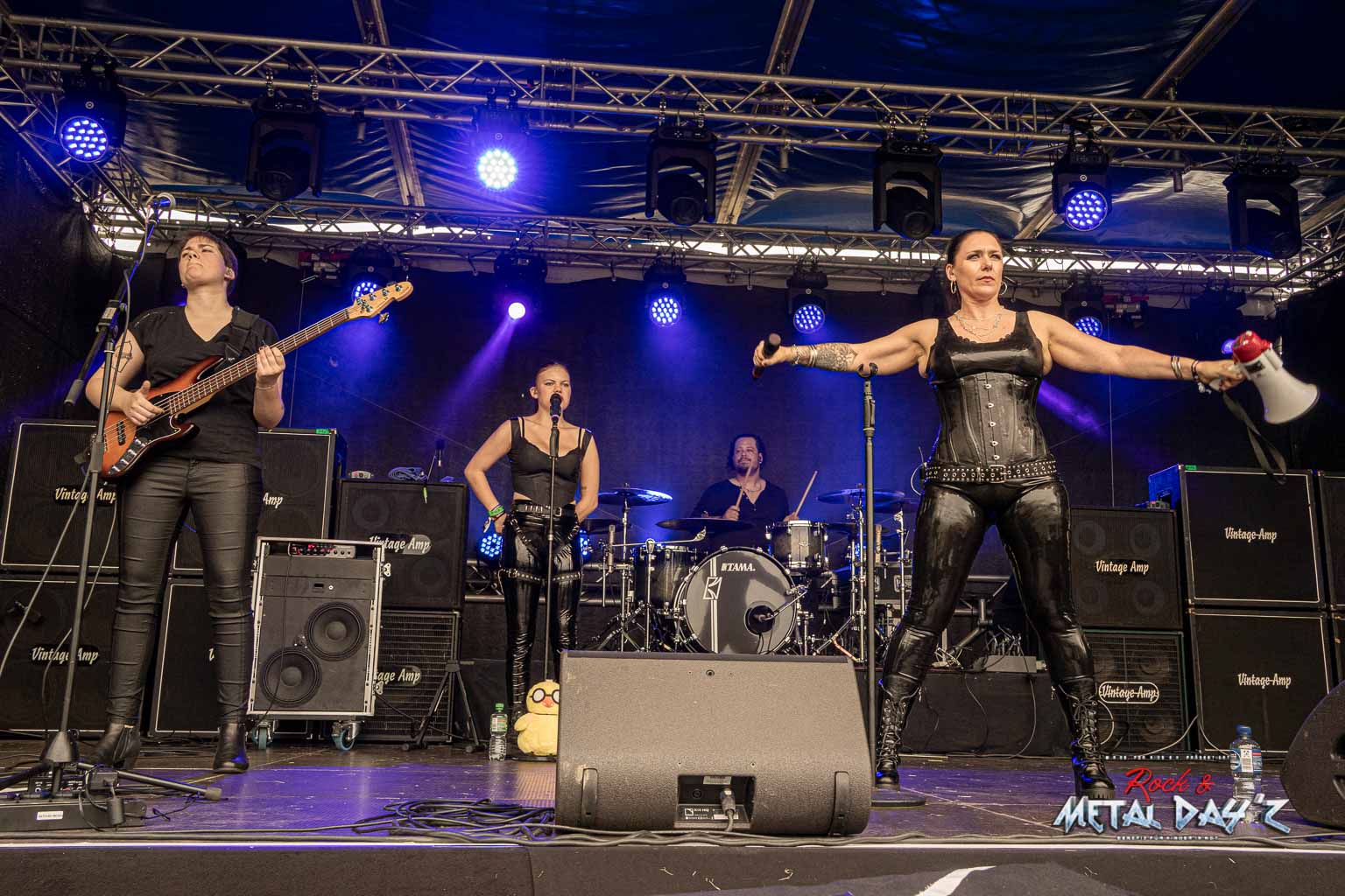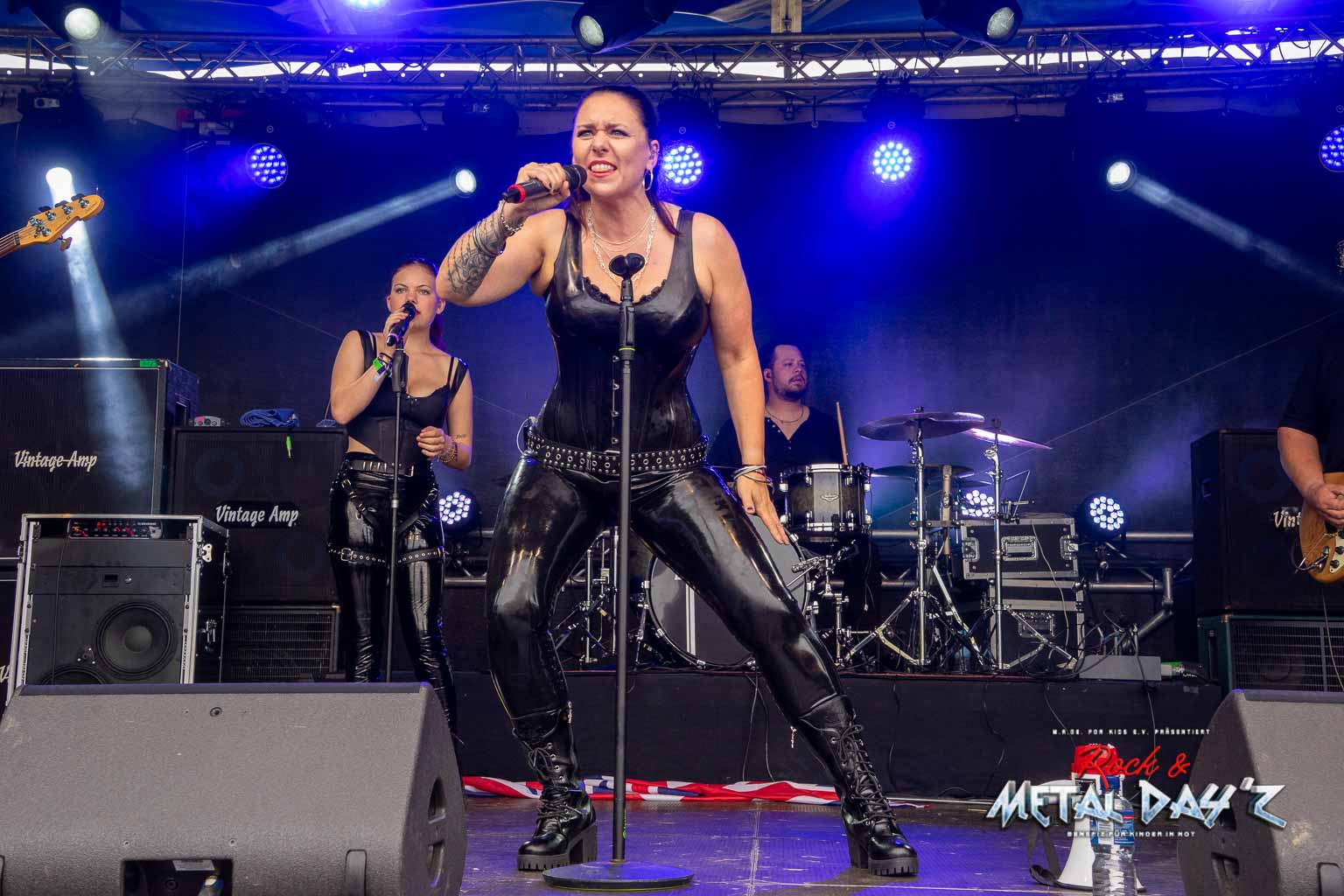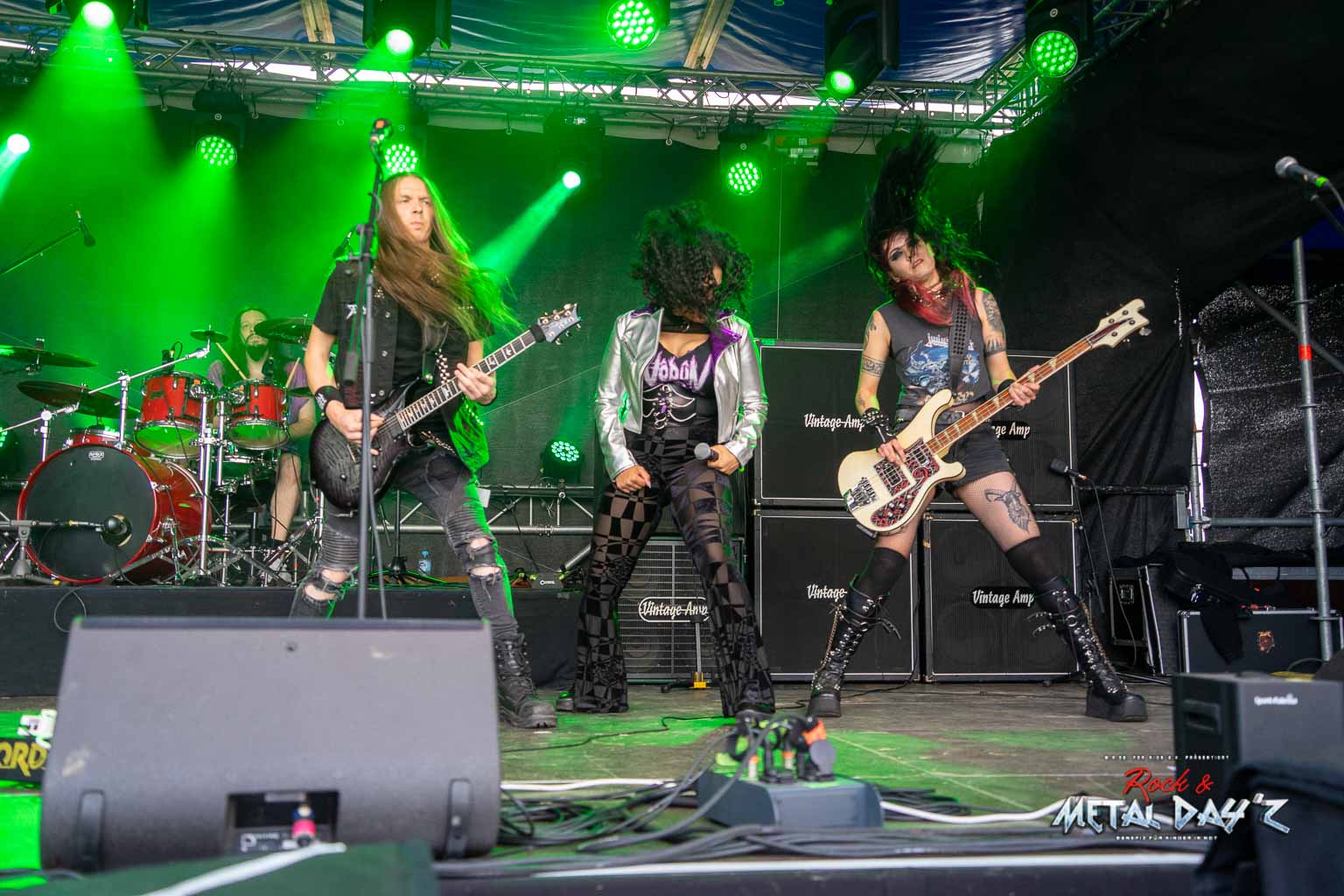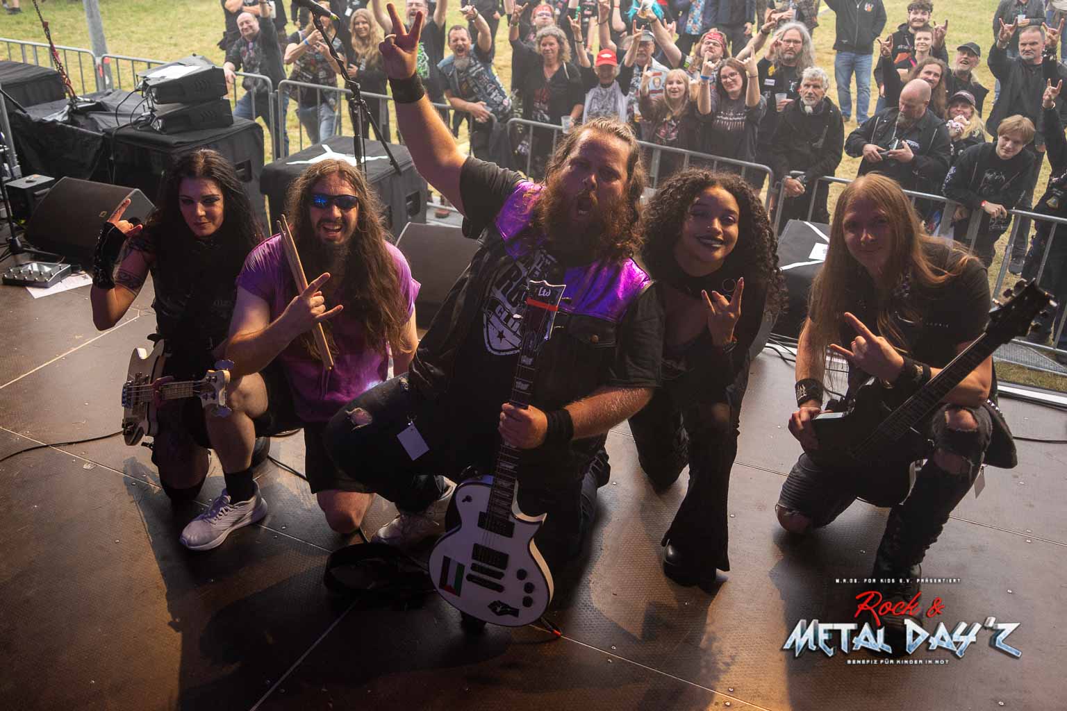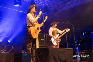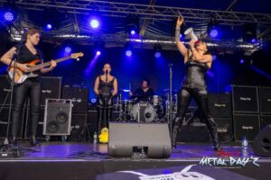 Als nächstes stehen dann Valid Blu mit ihrer charismatischen Sängerin Suzen Berlin an. Die Dame und ihre Band haben es in der Tat in sich, viele kennen sie ja auch vom Metal Frenzy Festival und wissen, welche Showelemente nun auf sie zu kommen. Musikalisch ist die Band ohnehin über jeden Zweifel erhaben, vielschichtig und progressiv, provokativ und am Zeitgeschehen dran wissen die Musiker genau, was sie tun. Suzen bleibt uns als Gast dann noch für das restliche Festival erhalten und das war schön so.