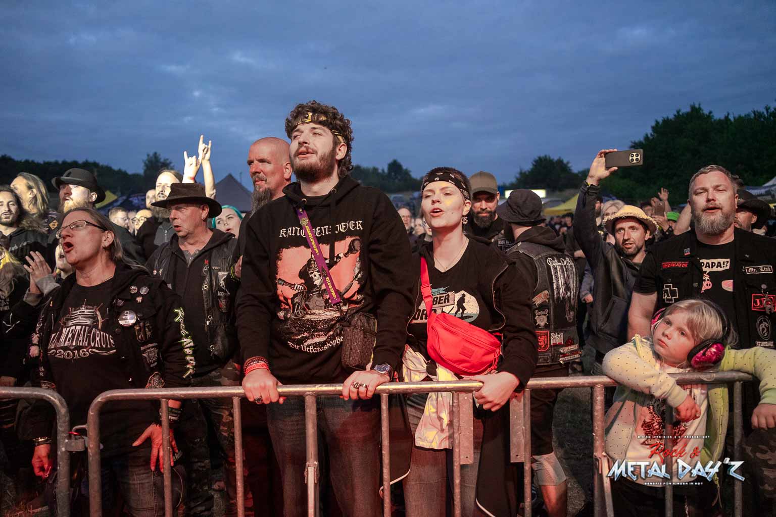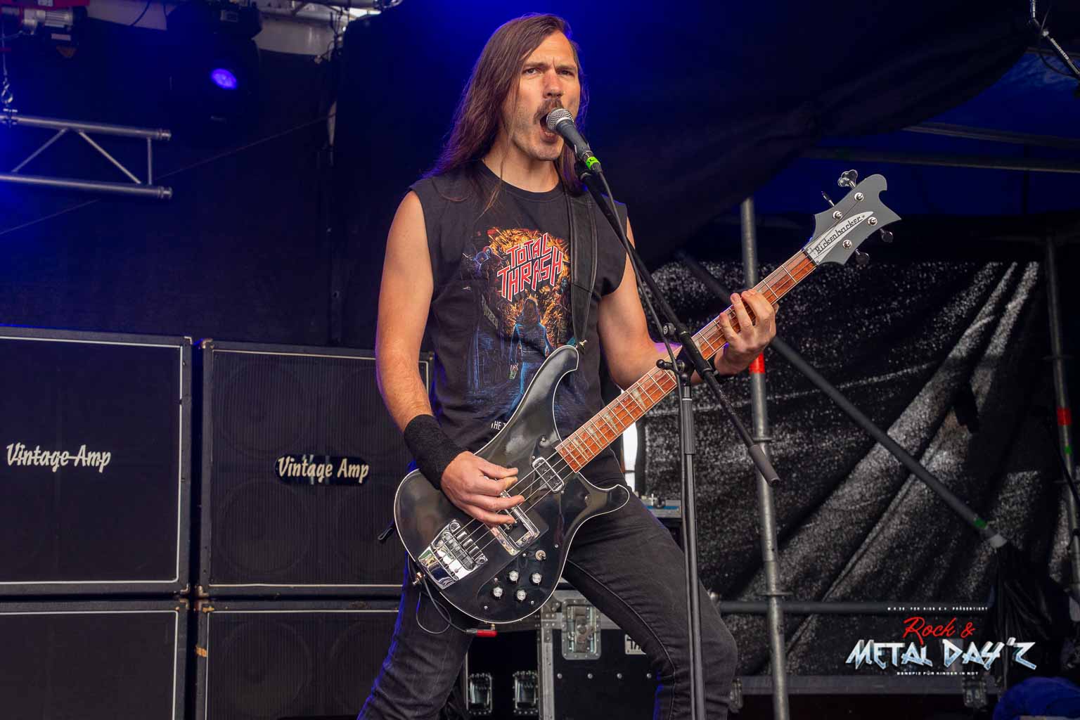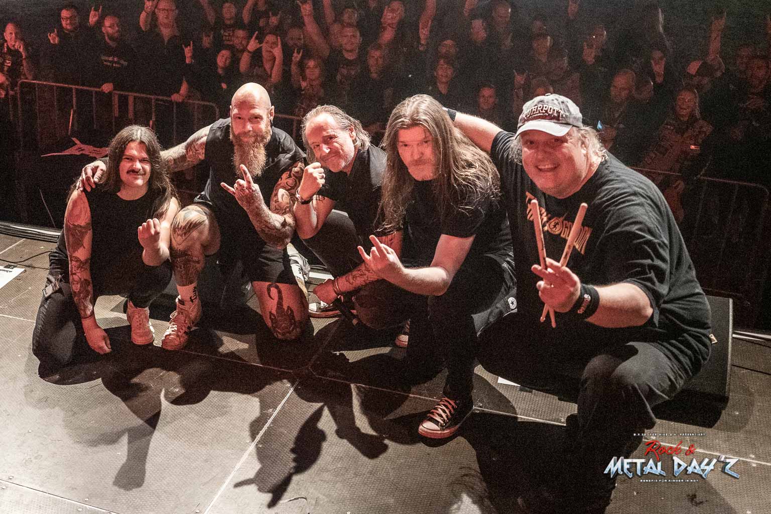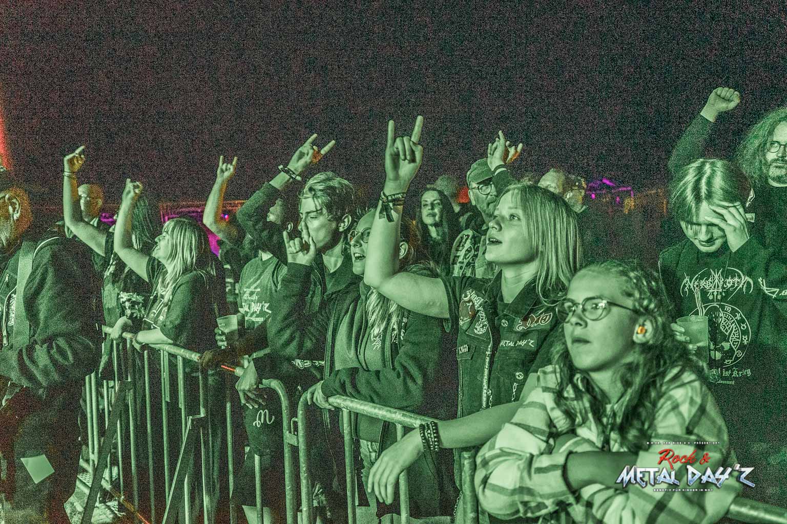 Etwas „ruhiger“ und weniger hektisch wird es danach mit Thrash-Legende Eradicator. Optisch besonders auffällig ist natürlich die Haarpracht von Sänger und Gitarrist Sebastian Stöber. In 21 Jahren Bandgeschichte haben die vier Thrasher nichts verlernt und geben Vollgas von der ersten bis zur letzten Minute. Darüber hinaus zeigen die Jungs, eigentlich ja trotz des noch jungen Alters schon Veteranen, sich später als sehr publikumsnah und mischen sich einfach unter das Publikum. So ist das halt, wenn man seine Band im Alter von um die 15 Jahre gründet…