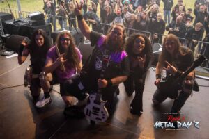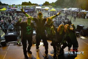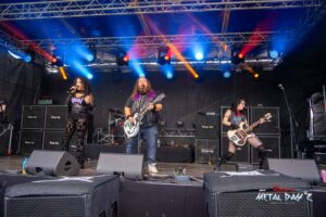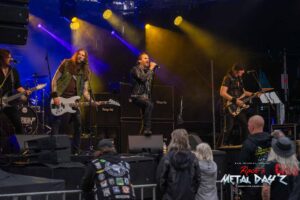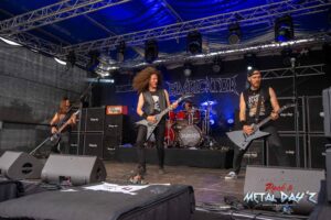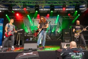 Traditioneller und vor allem erstmals Britisch auf unserem Festival wird es mit Fury aus Birmingham. Die Band um Sänger und Gitarrist Julian Jenkins und Bassistin Becky Baldwin, auch bekannt als Bassistin von Mercyful Fate oder durch ihre früheren Bands wie Dorja, Triaxis und Hands Off Gretel spielt astreinen Old School Heavy Metal im besten Stil der frühen Iron Maiden, Judas Priest, Saxon oder auch Def Leppard. Nein, eigentlich nicht, eigentlich haben sich die fünf Musiker darauf basierend sehr stark weiterentwickelt was auch der tollen, bluesigen Stimme von Sängerin Nyah Ifill und den komplizierten Bassläufen Becky’s zu verdanken ist. Nach ihrem einstündigen Auftritt wollen sie eigentlich kurz ins Hotel, Instrumente wegbringen, sich frischmachen und wieder kommen, aber wie es so ist, sie bleiben und bleiben unter dem Publikum sitzend, bis die letzte Band gespielt hat und sie nun wirklich ins Hotel müssen, da es am nächsten Morgen sehr früh nach Breda in den Niederlanden für das letzte Konzert der kleinen Tour geht. Wem sie gefallen haben, Anfang September erscheint das neue Album „Interceptor“.