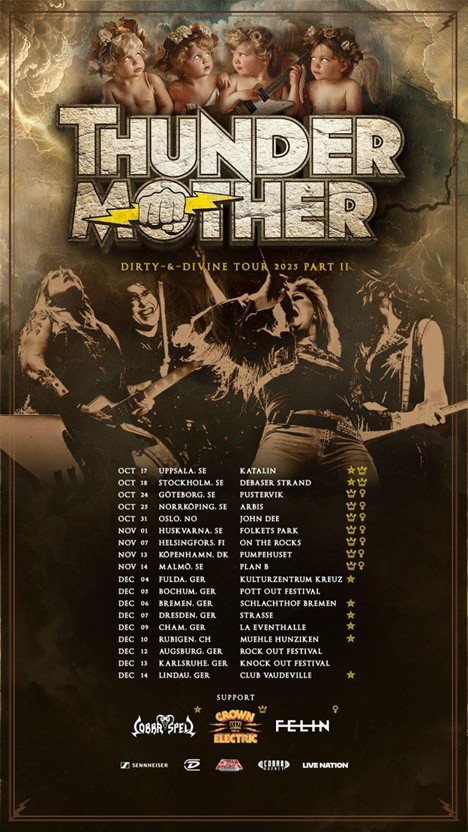 Finally, and we remain Scandinavian, even Swedish, Thundermother, most of the dates supported by Dutsch/Spanish Cobra Spell, remain dirty and devine for a few more dates.