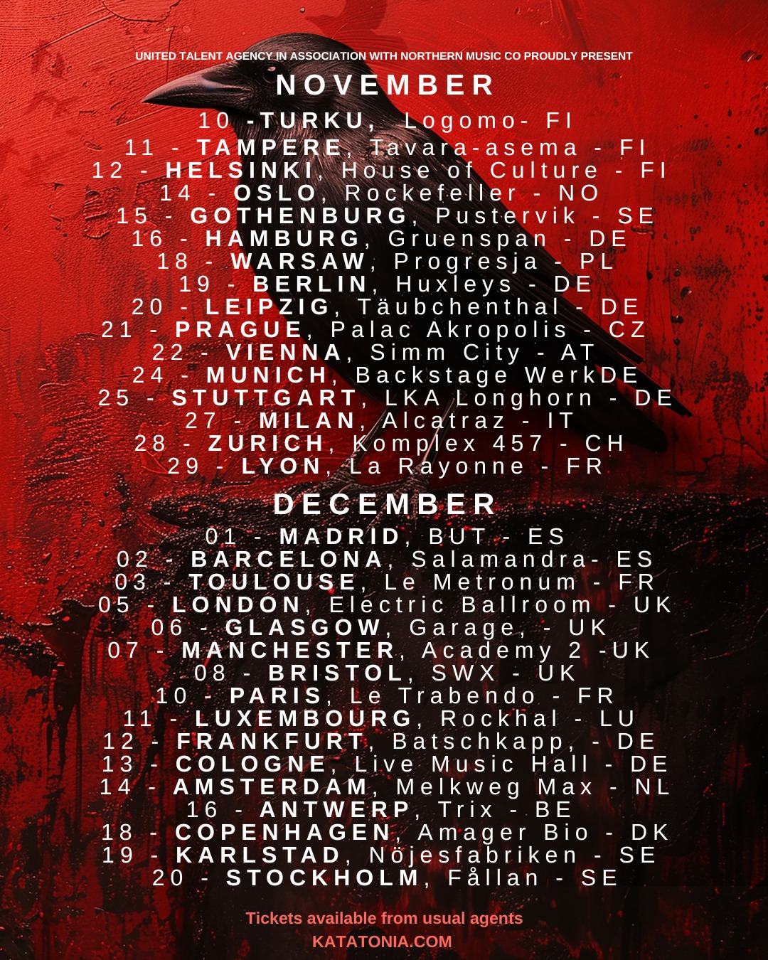 Back to old world, Swedish Katatonia and Evergrey continue their Progressive Metal raid over Europe.