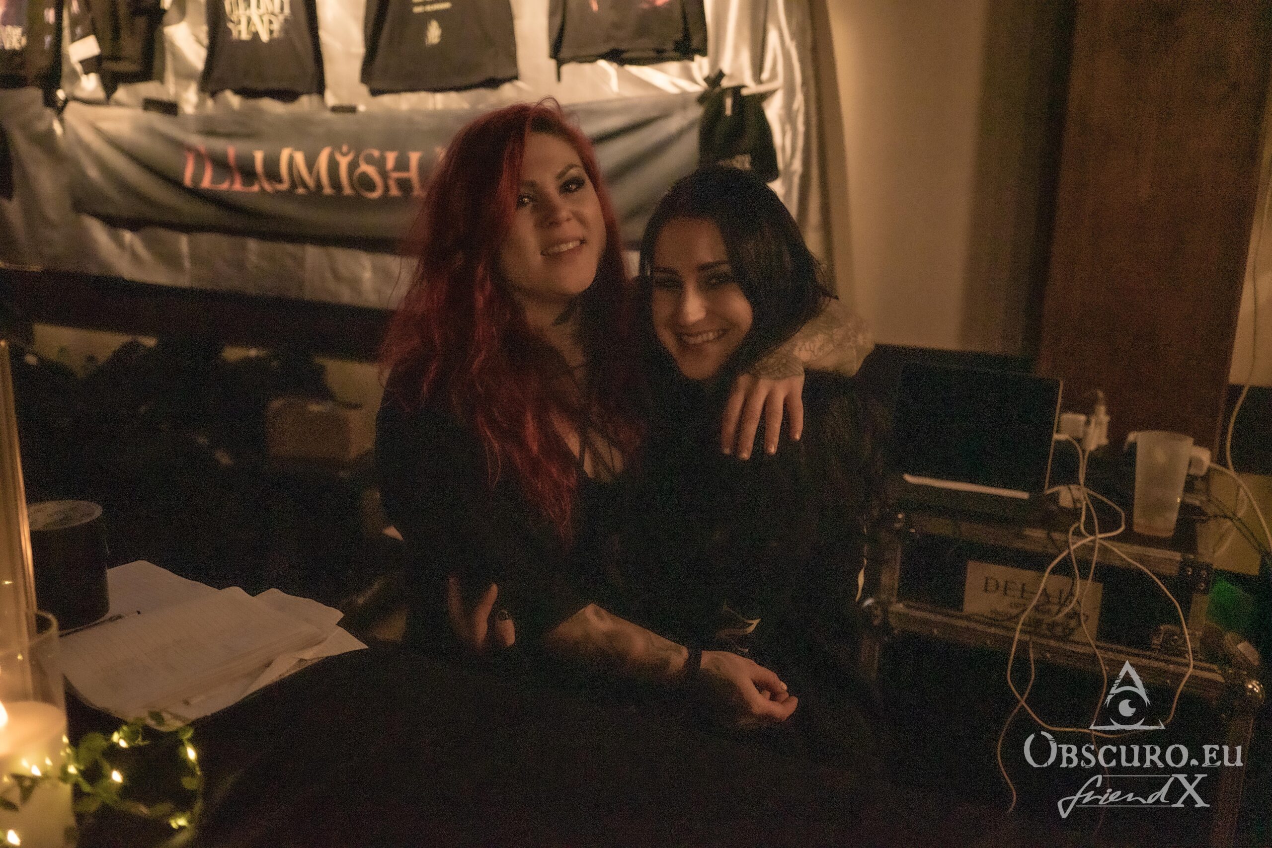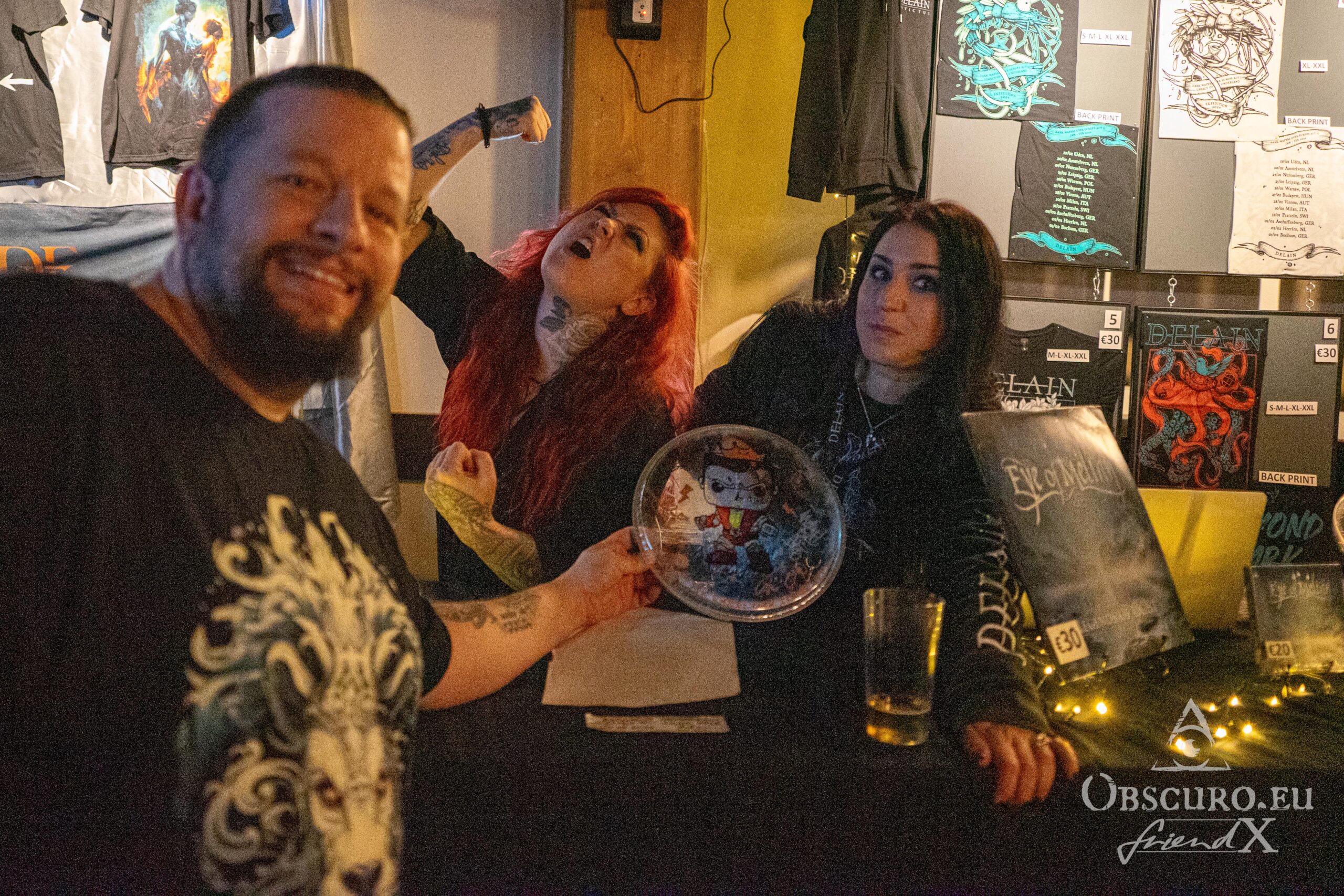 During the break for the change of the stage set-up, Mirjam and Fabienne meet with their fans at the merch in the opposite room. Everybody can have a chat, a pic, autographs or buy some merch, they sign. The merch is in the very kind and lovely hands of Jessika for Illumishade and Robin (not Scherbatsky) for Delain. They have a screen in the room otherwise they would miss the whole show.