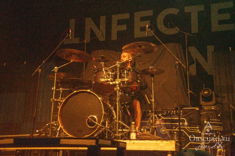 How to spend a Friday night better than going to a concert? Especially when the bands you will see that night are Infected Rain, DragonForce and Amaranthe? Exactly, there is no better way to spend a Friday night. The show is completely sold out, no box office tonight and the people queueing up in front of Schlachthof Wiesbaden are countless. Once inside, I find the merch stalls of all three bands lined up to the left to the entrance as usual. The venue is filling fast, and the audience is very mixed, given that all three band play very different metal genres.
